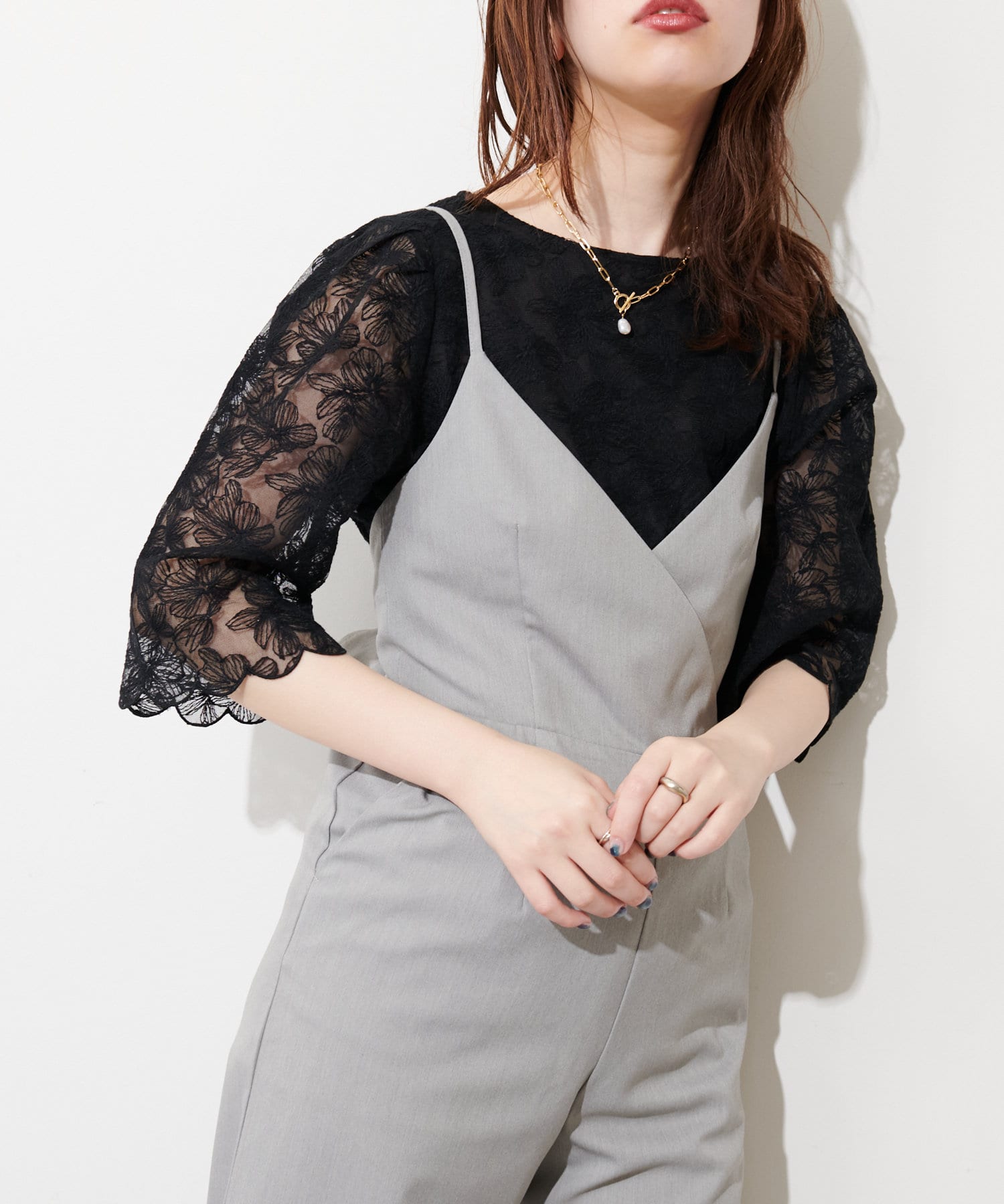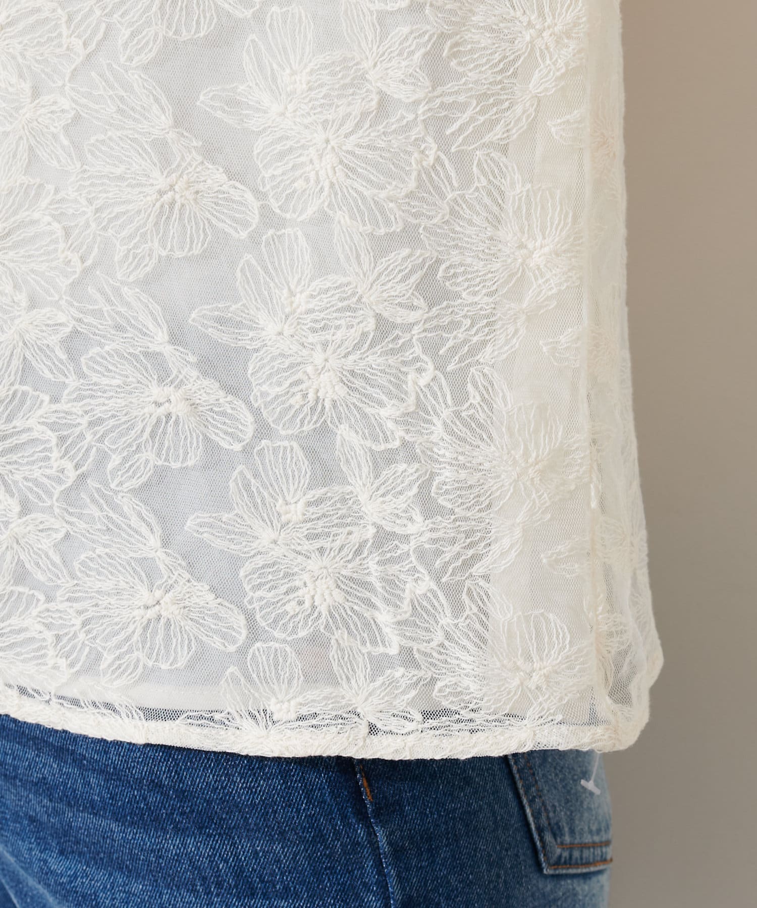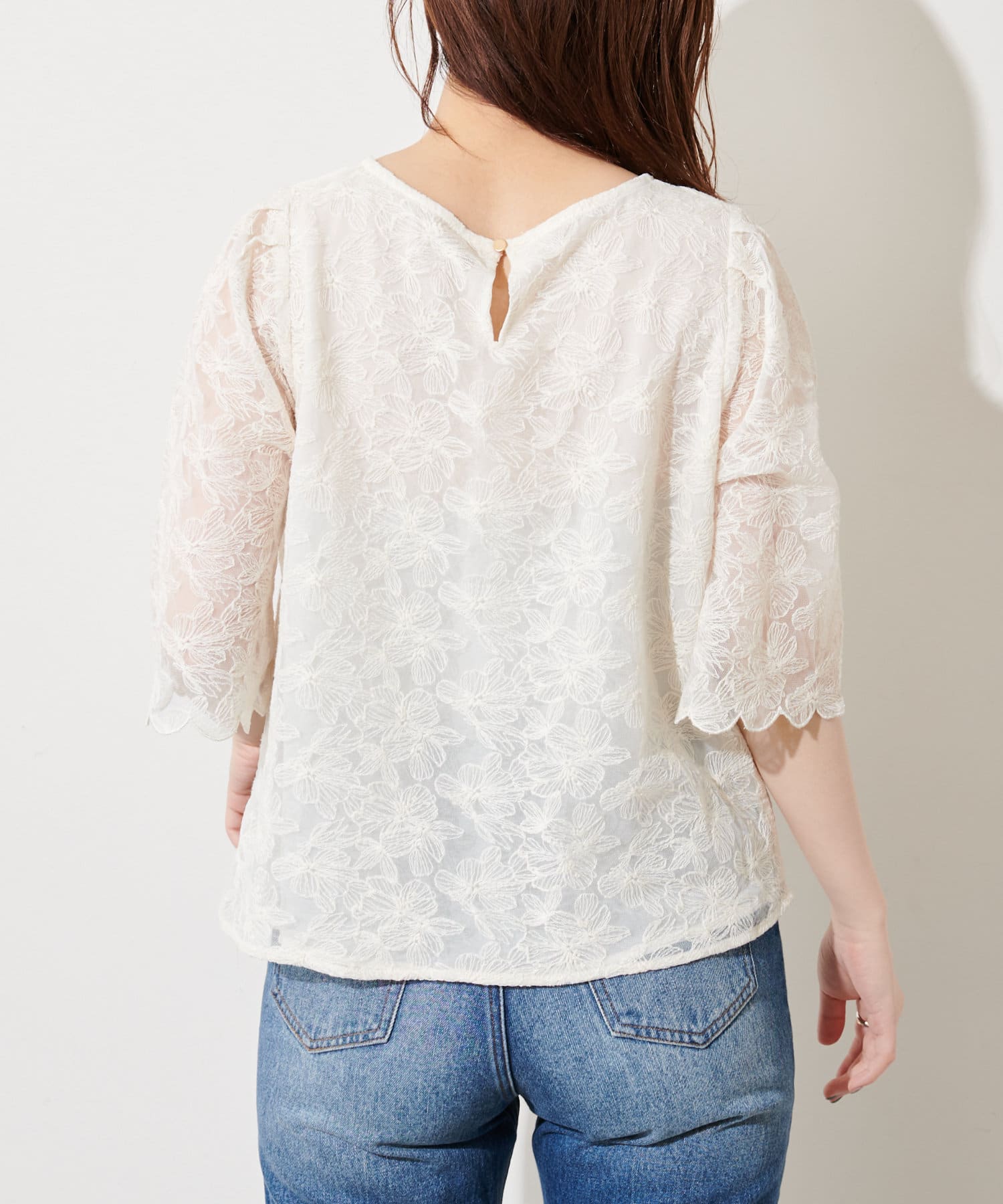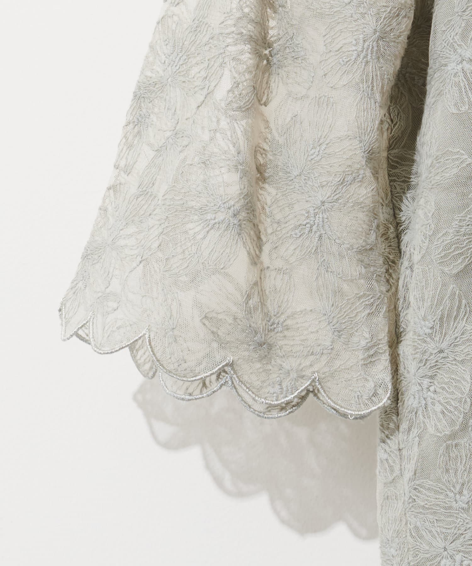 袖口スカラップフラワーレースブラウス
