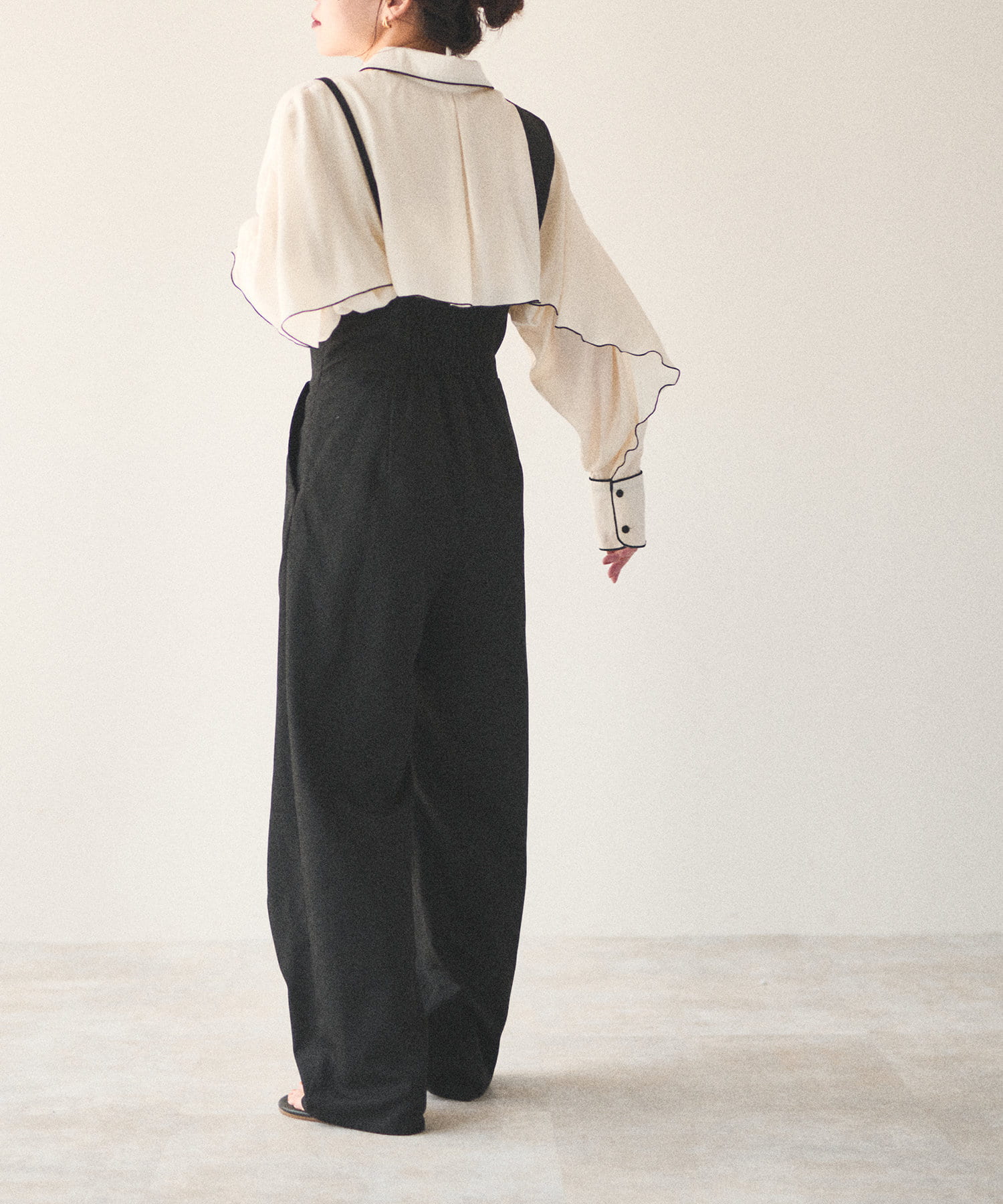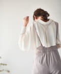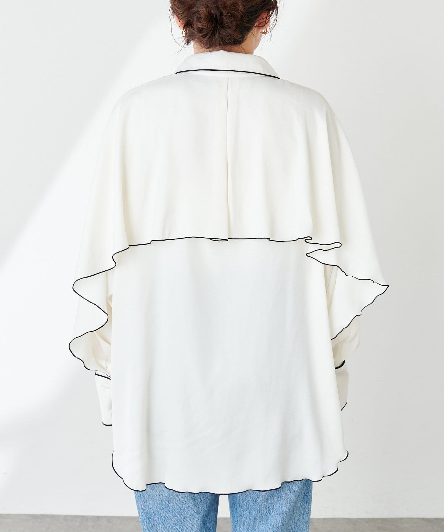 一見シンプルなブラウスも、バックにたっぷりフリルを施すことで