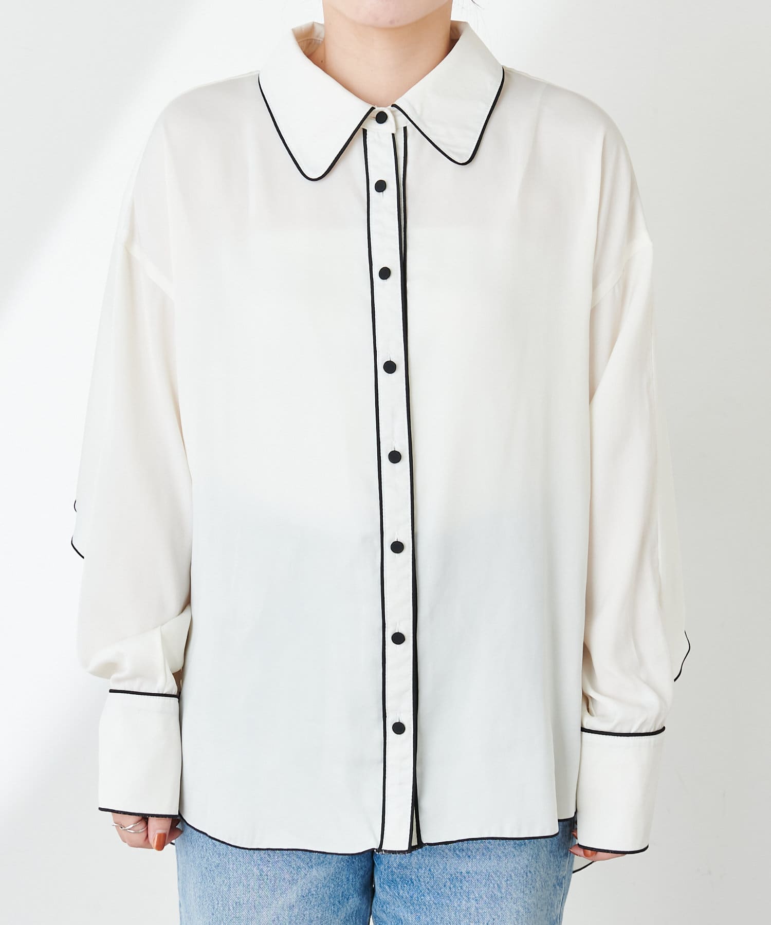 • natural couture(ナチュラルクチュール) 【大人ナチュ】サテンパイピングブラウス
