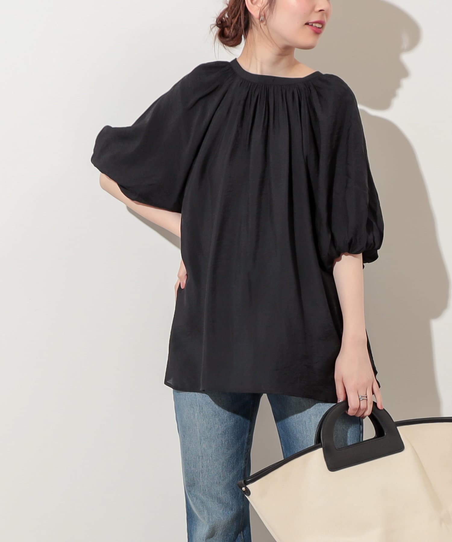 バルーン袖のディテールが大人レディなムードを演出してくれます。
