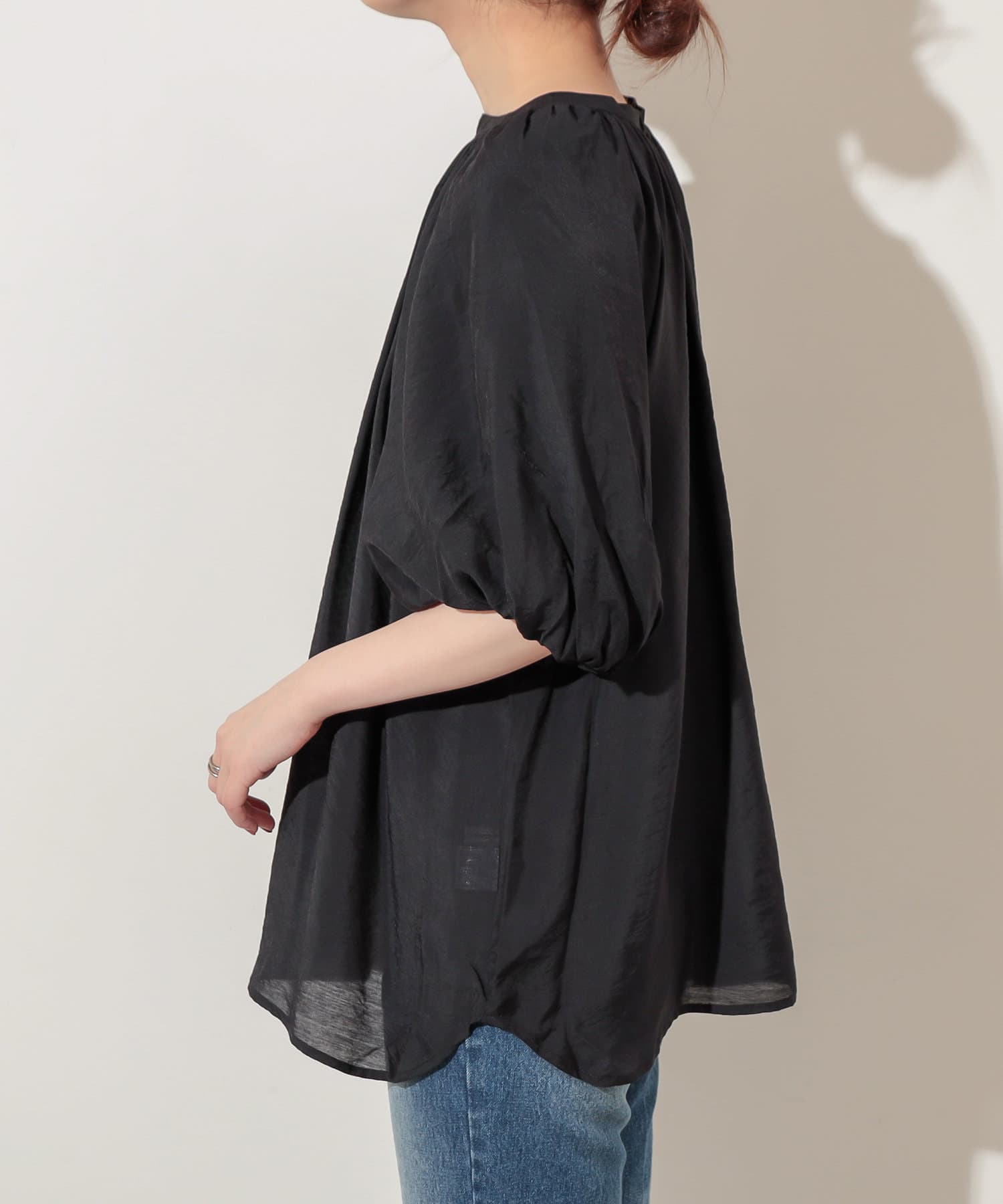 プチプラバンドカラーバルーンブラウス