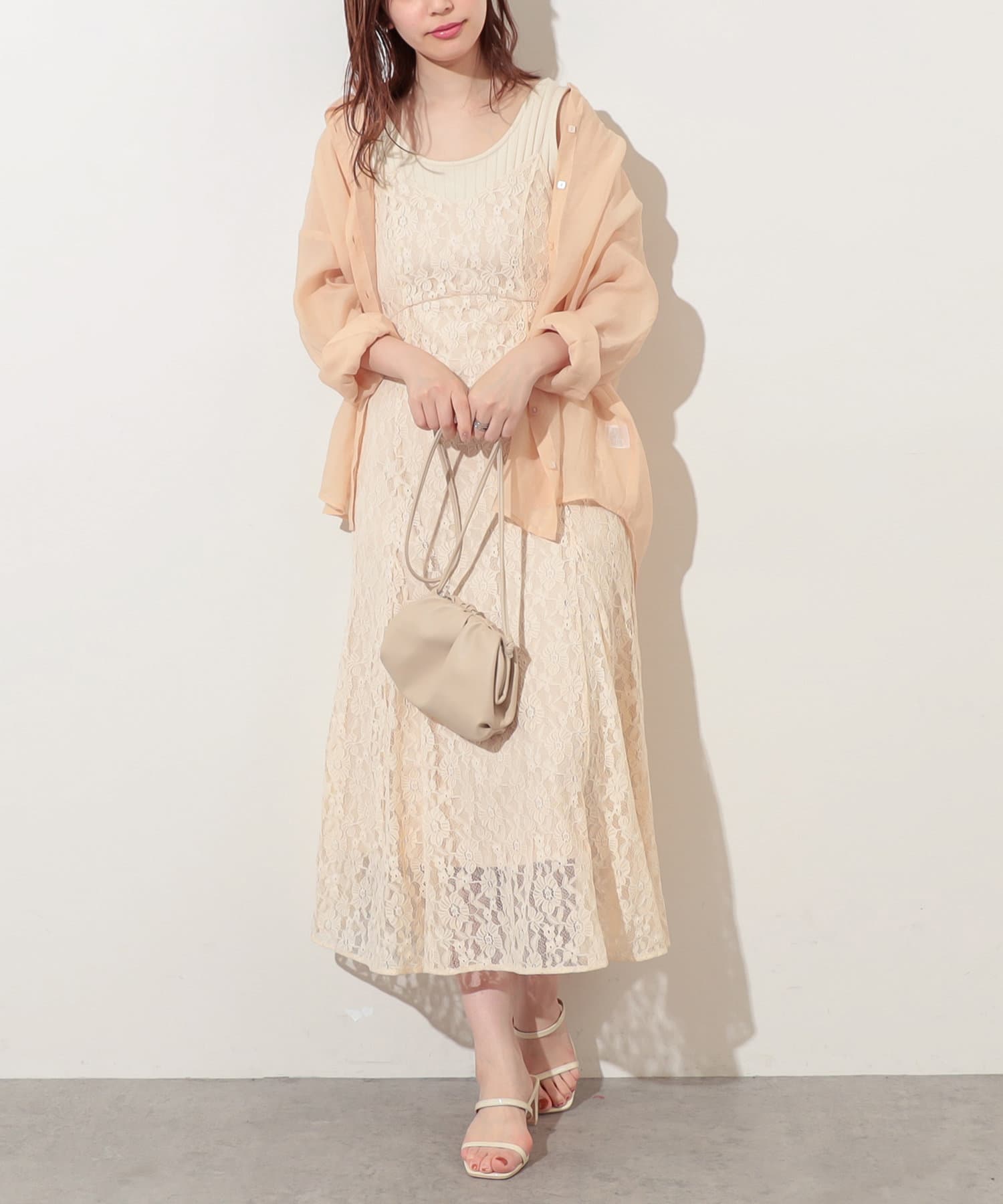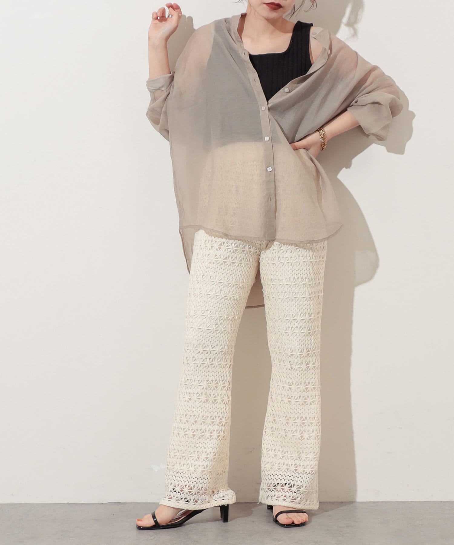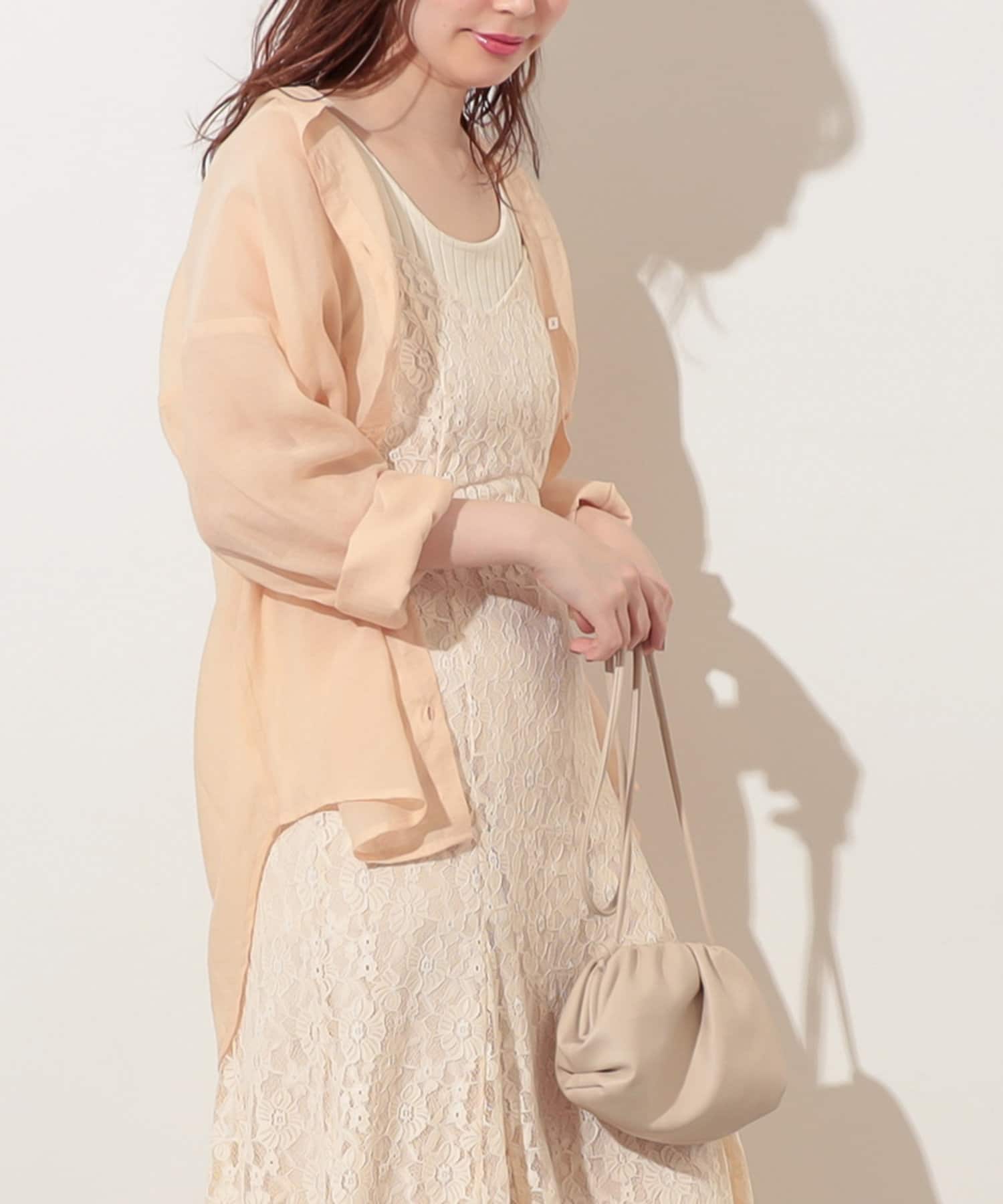透け感のあるアイテムなので、インナーにキャミソールやタンクトップ、Tシャツなど、