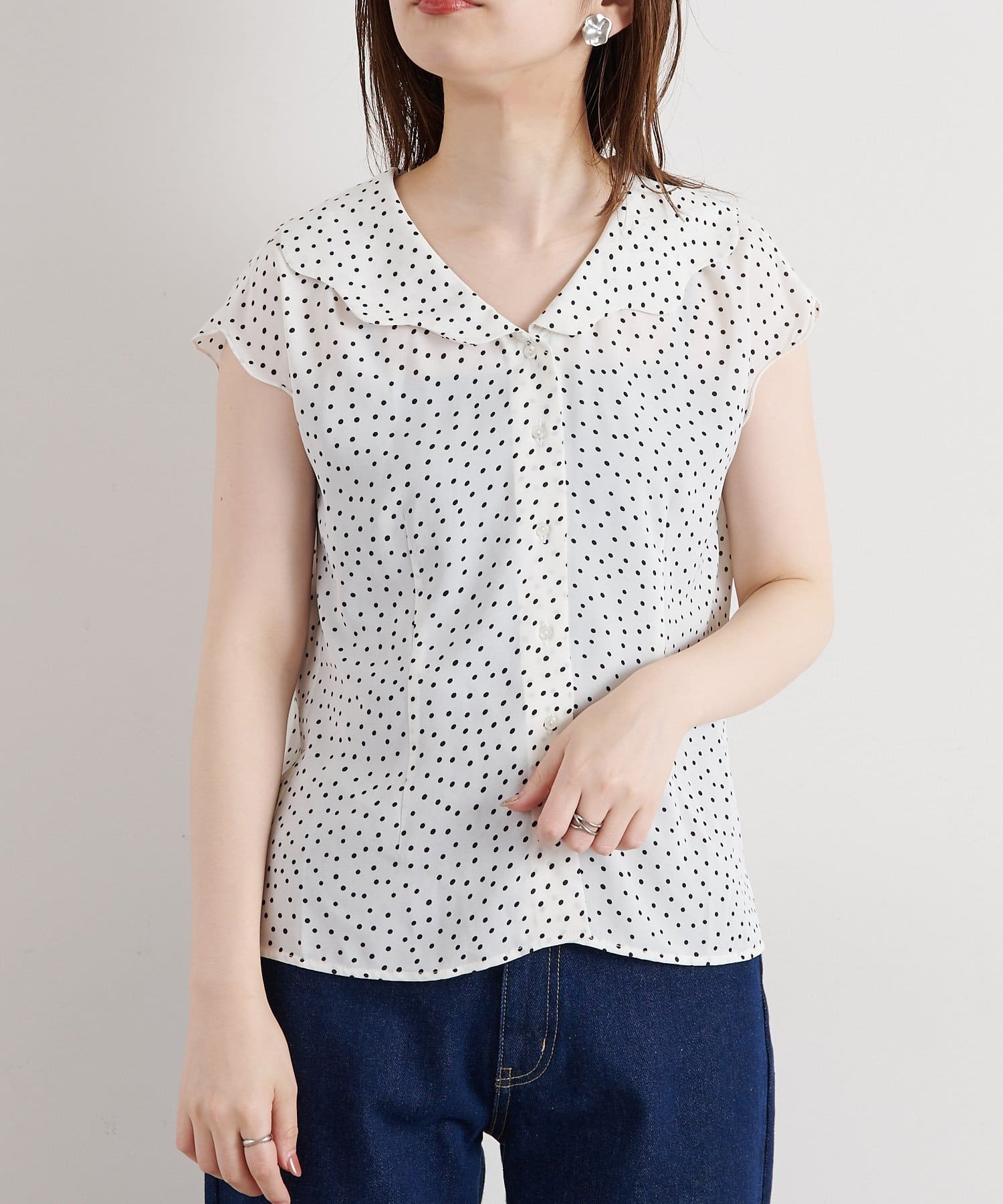 TOP > natural couture > レディース > トップス > シャツ/ブラウス(ボタン) > 【WEB限定】ゆるスカラップレトロブラウス