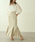 タイトスカートと合わせて甘さをプラスしても。