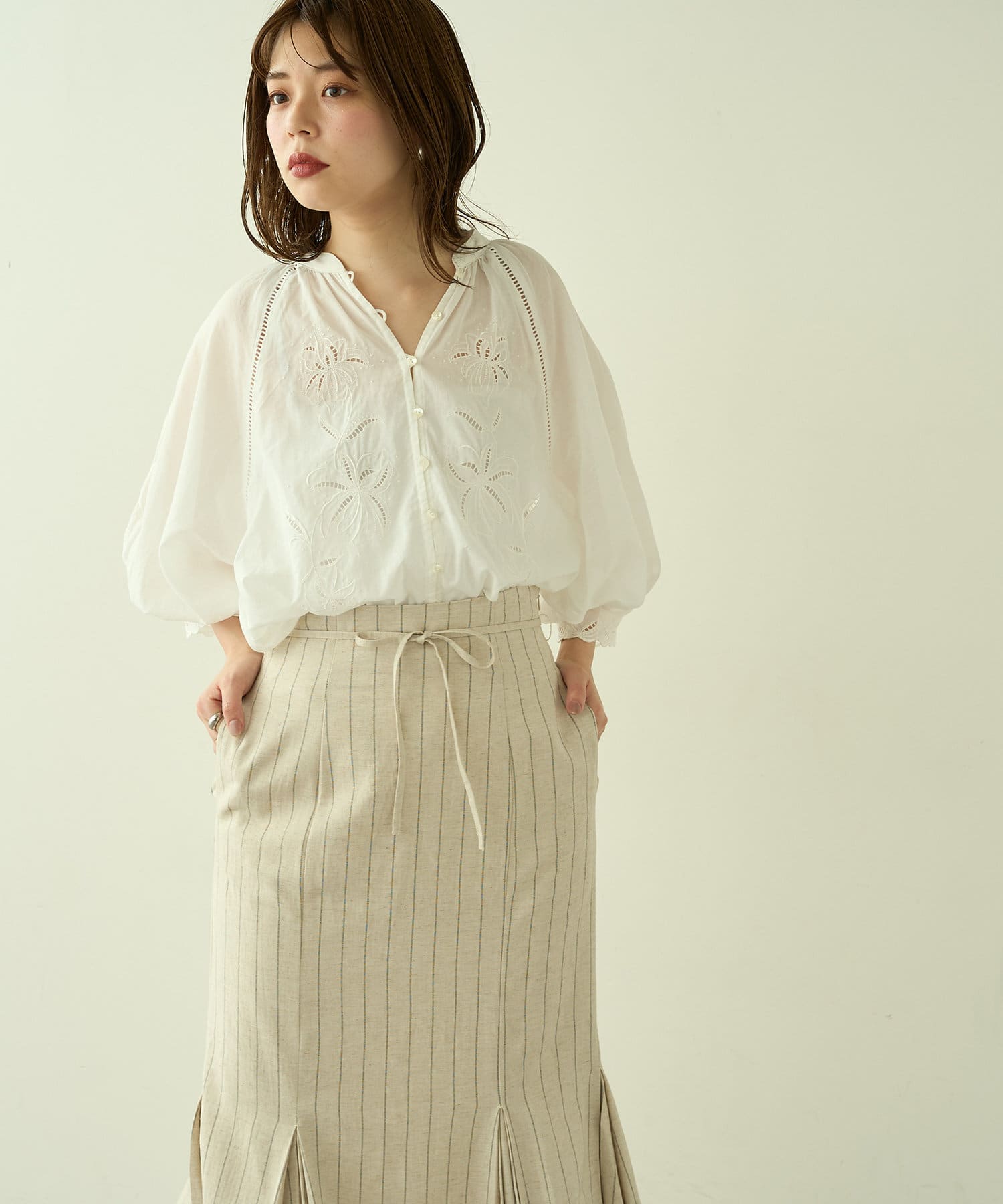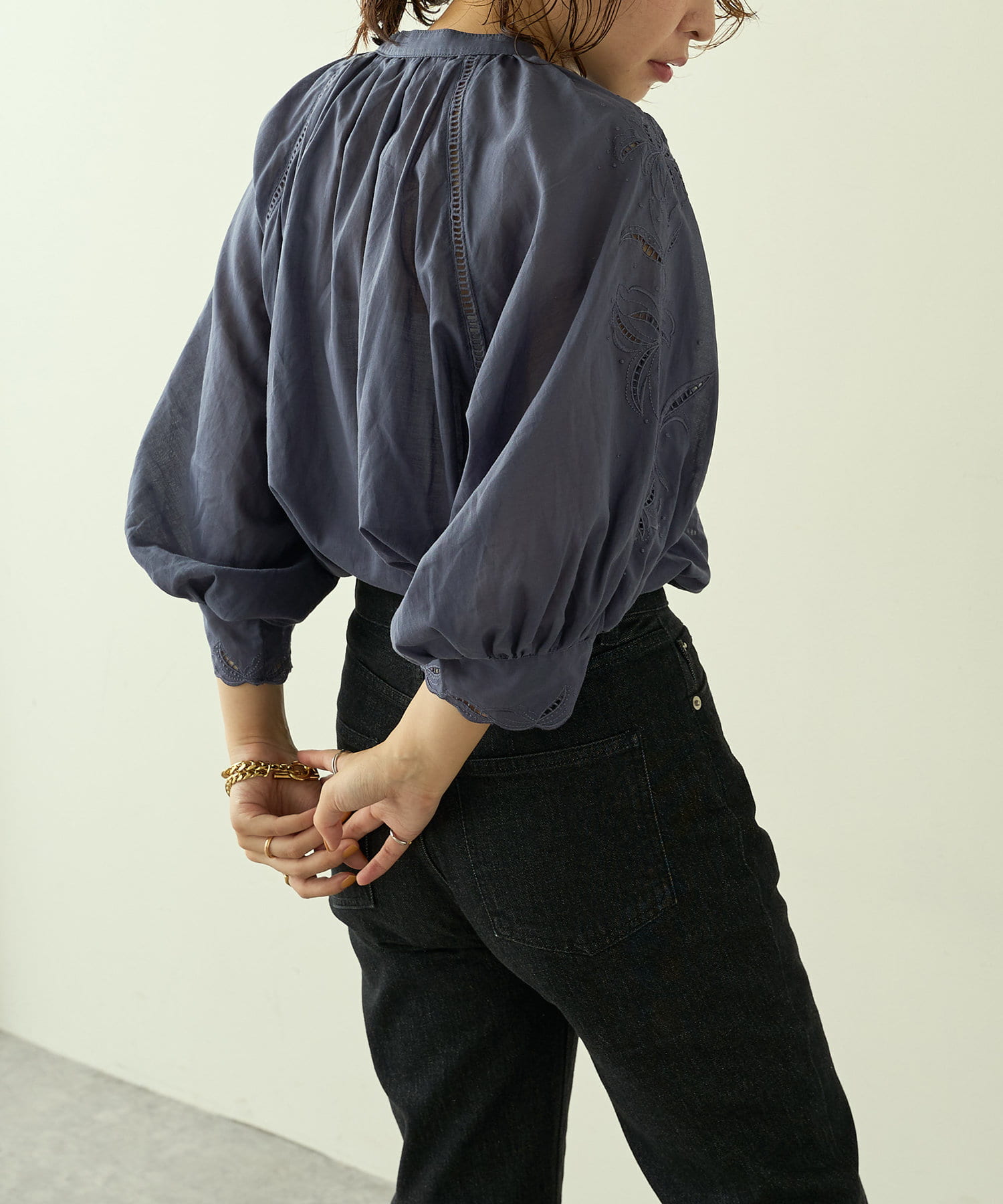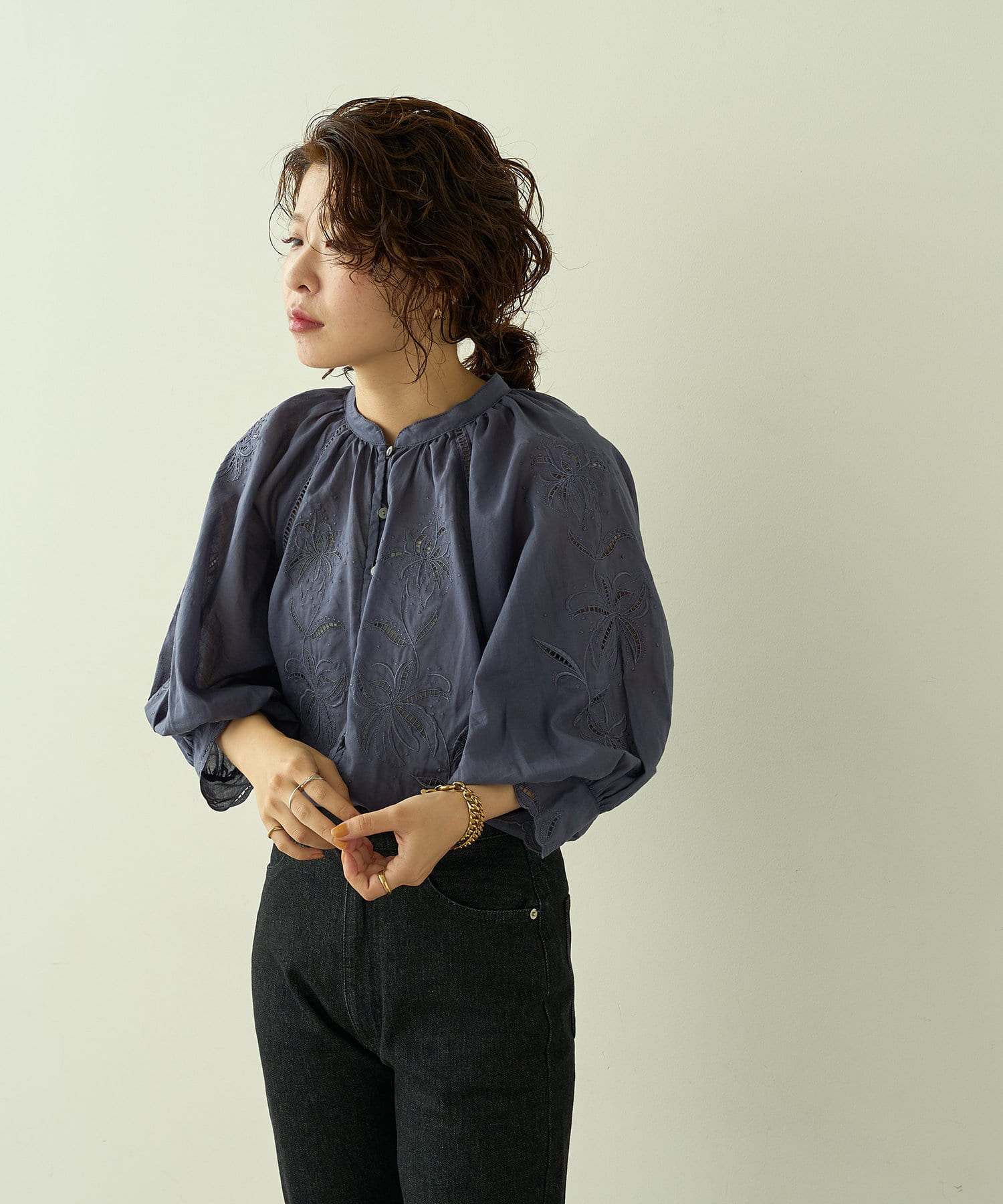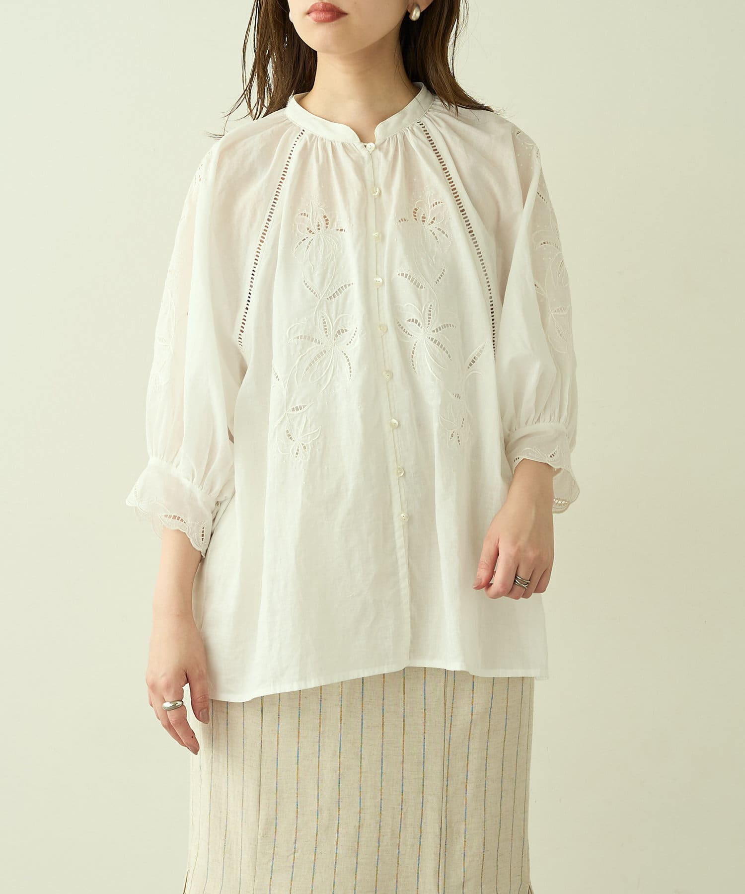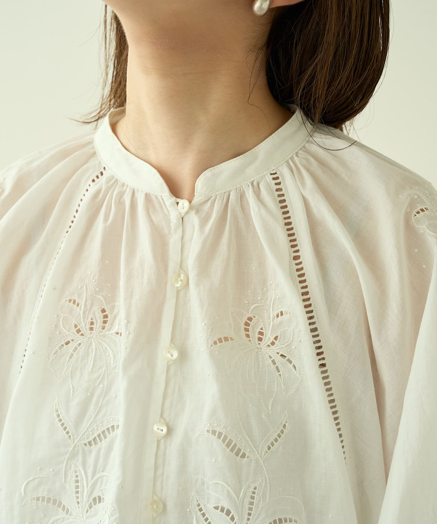 繊細な刺繍を施したブラウス。