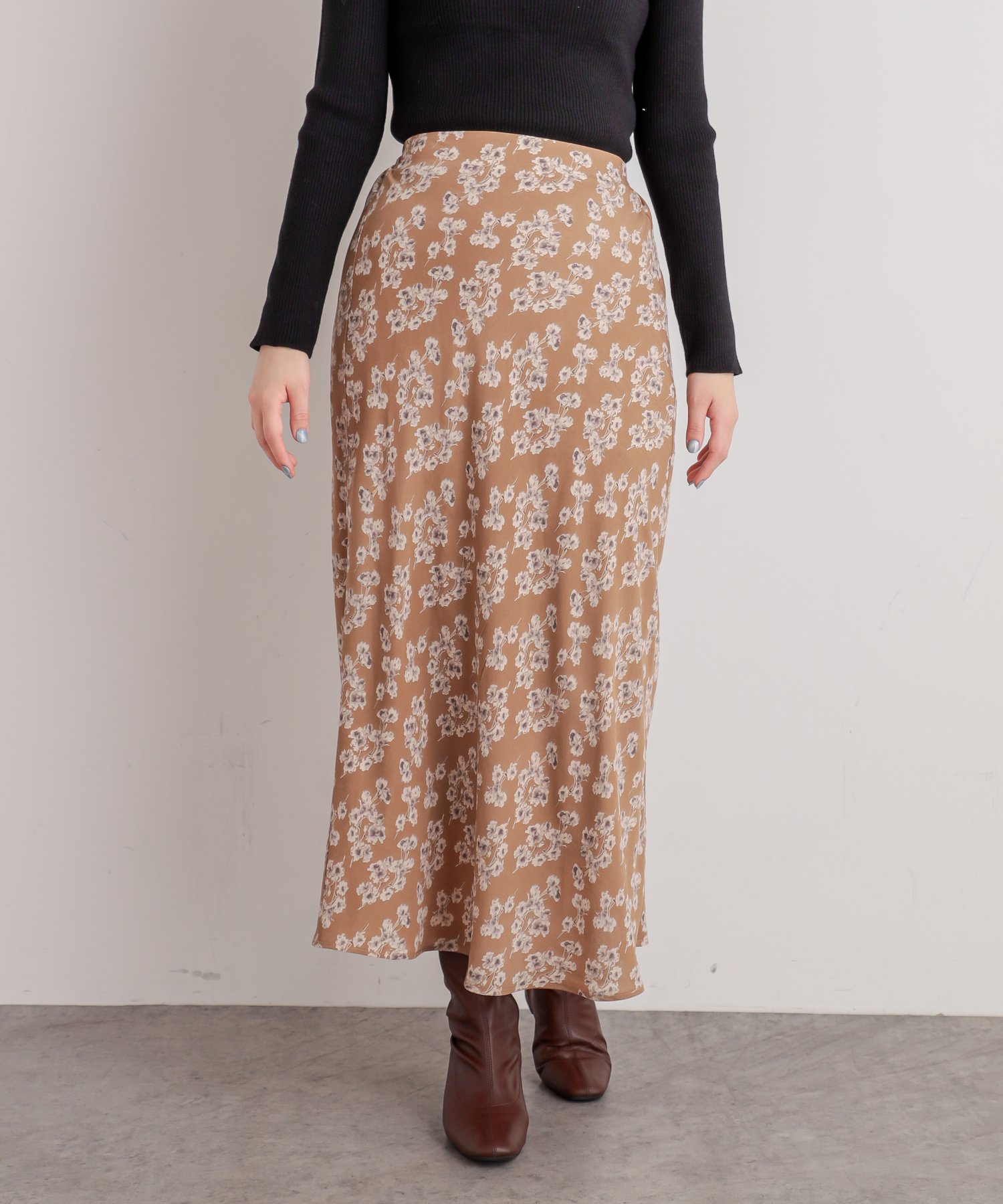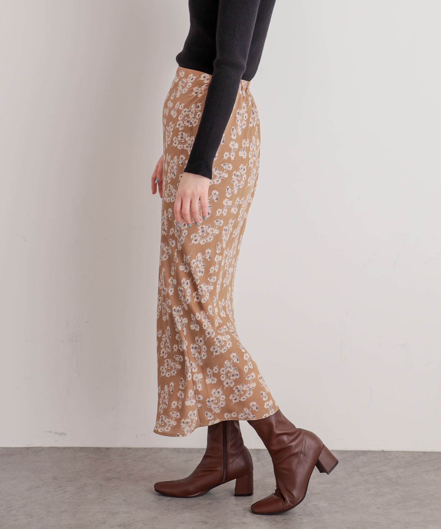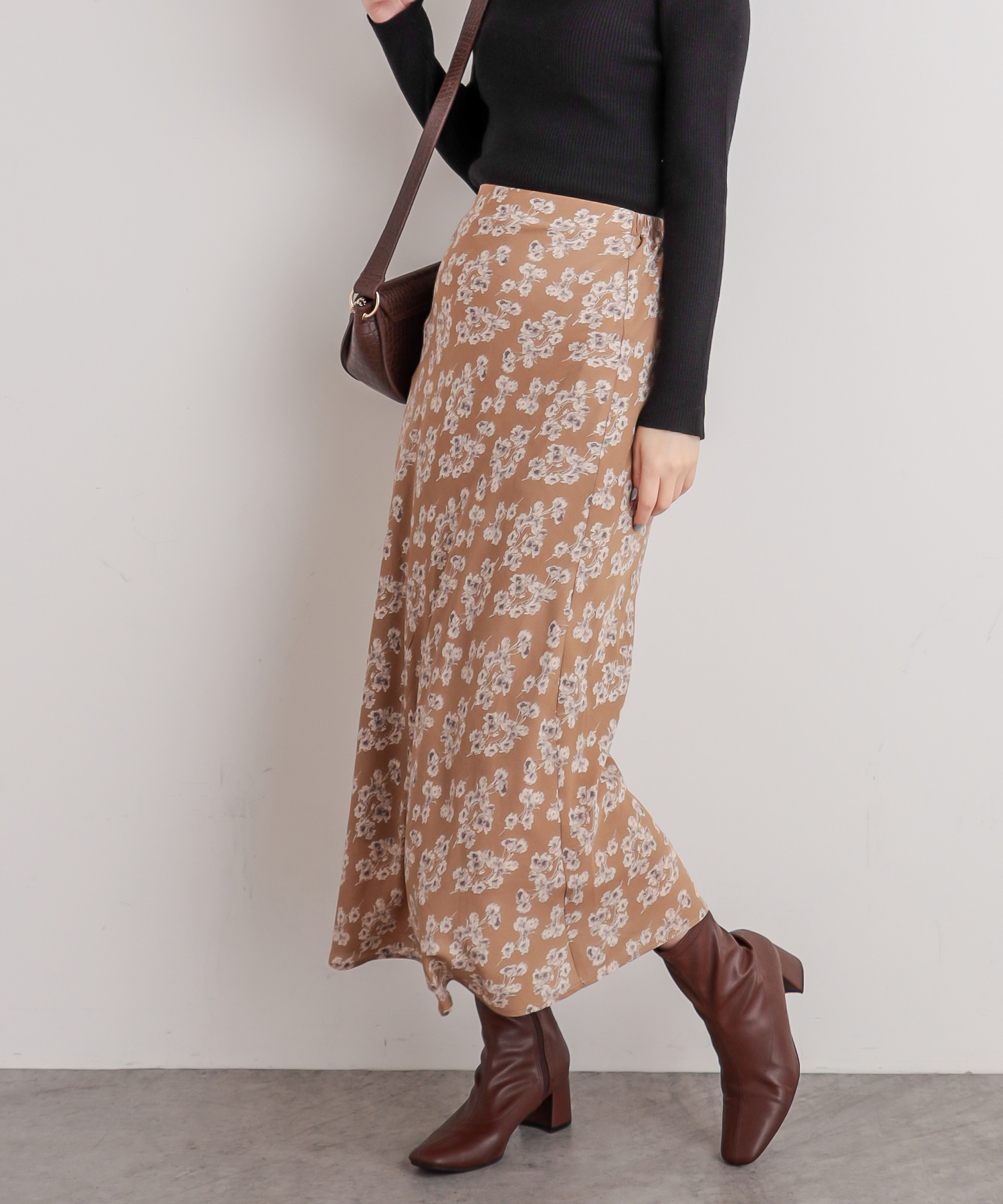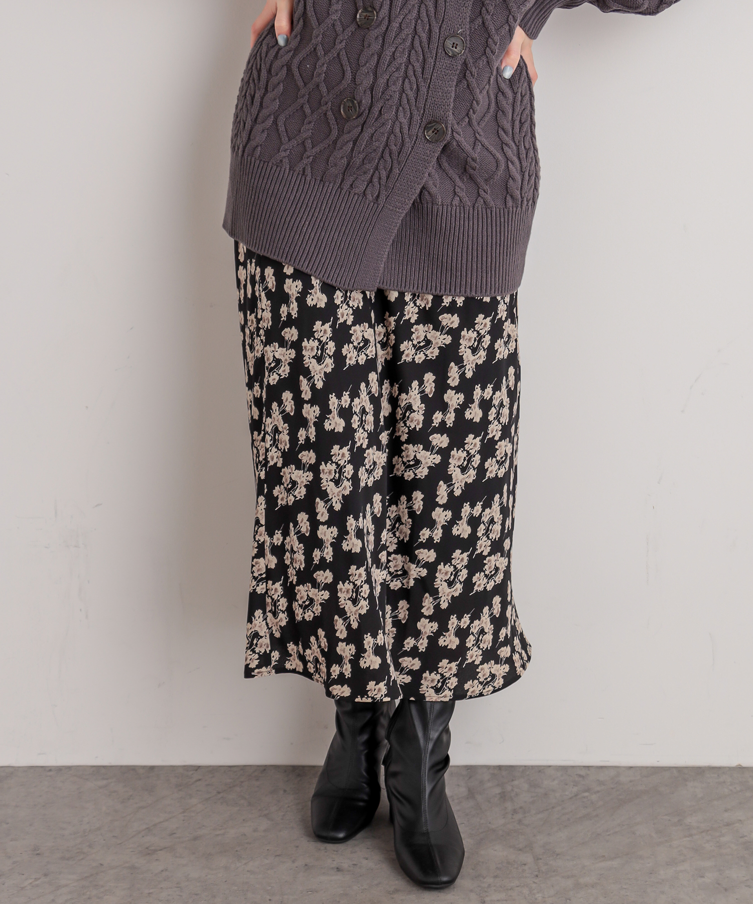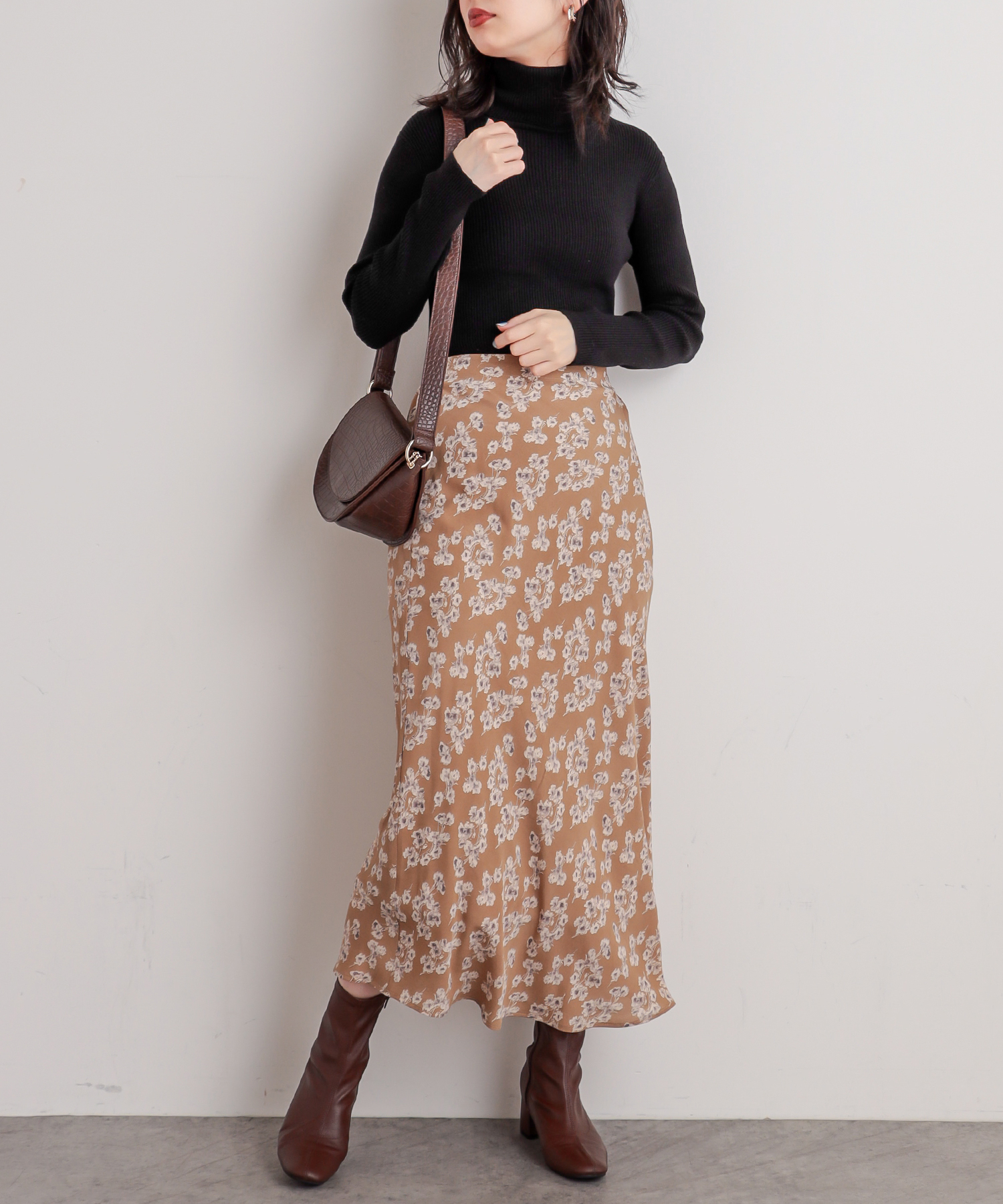 花柄はスタイリングのメインとなる華やかな印象のスカートなので、