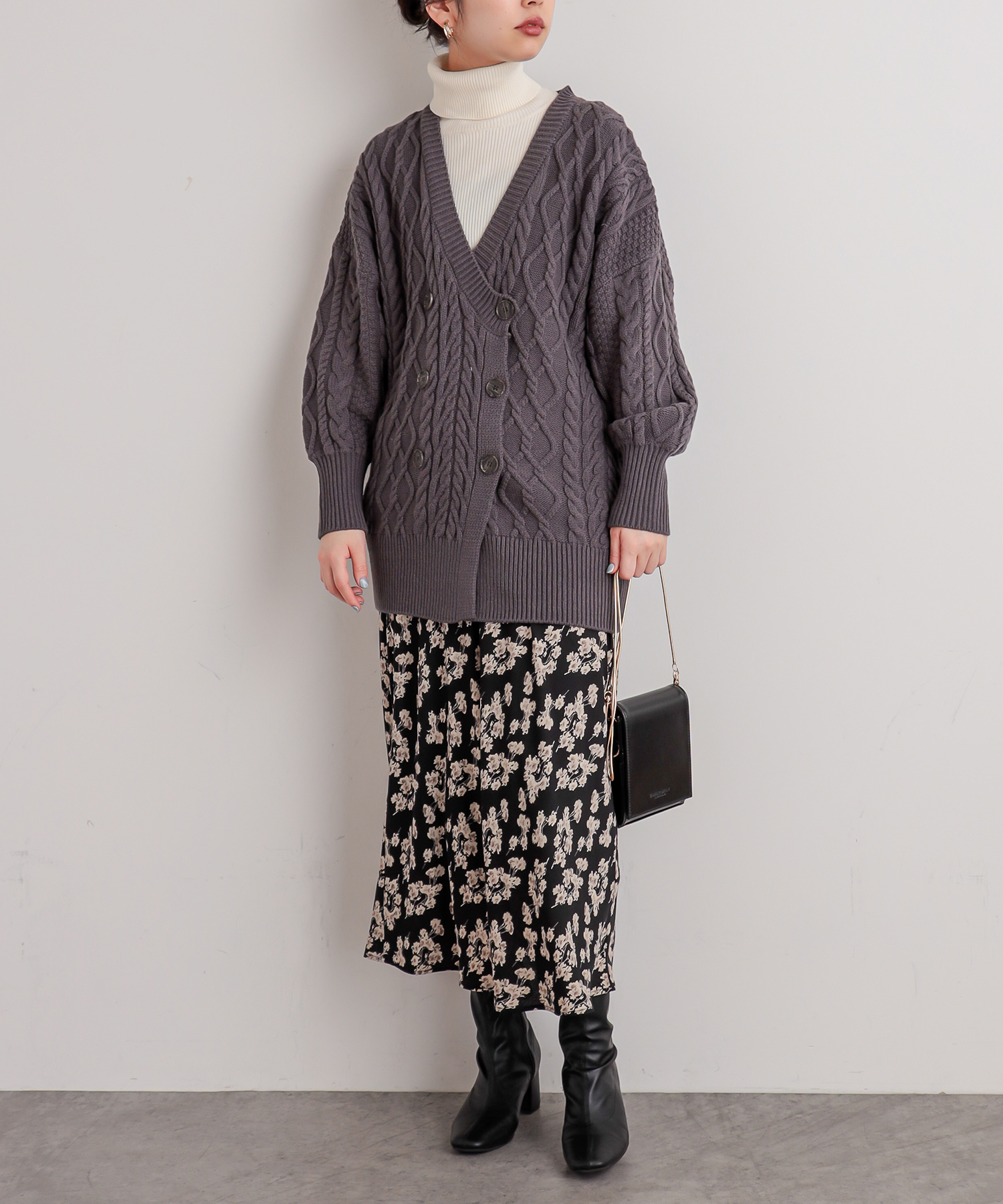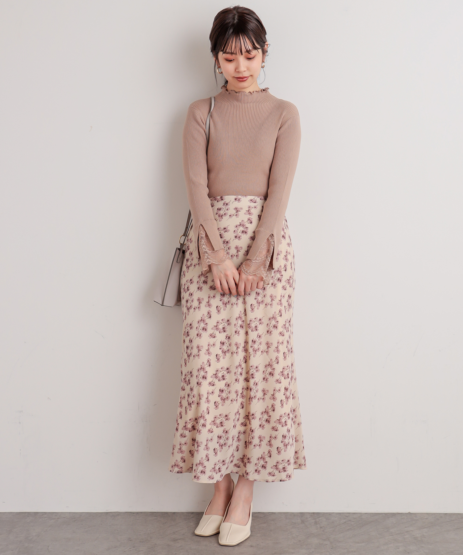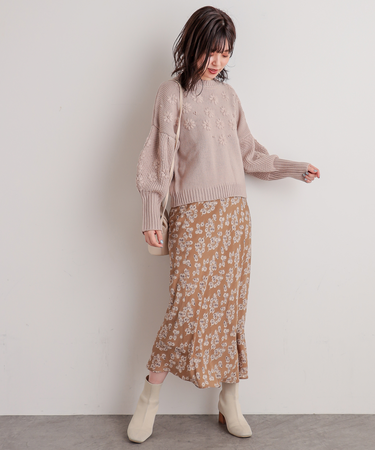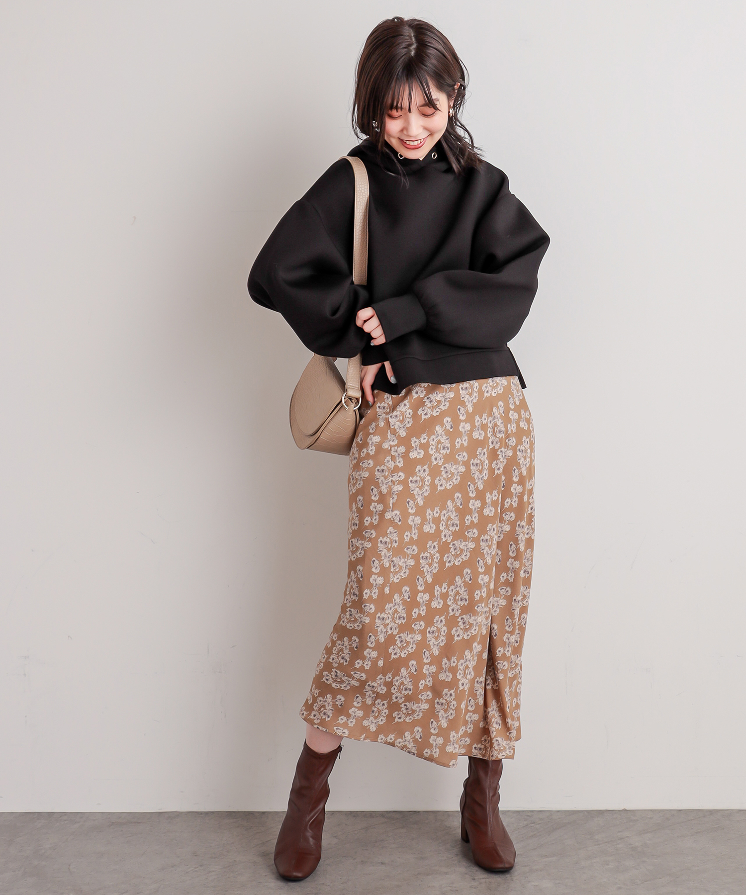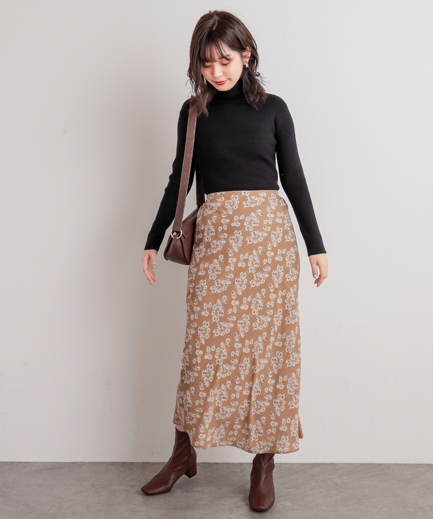 花柄はスタイリングのメインとなる華やかな印象のスカートなので、
