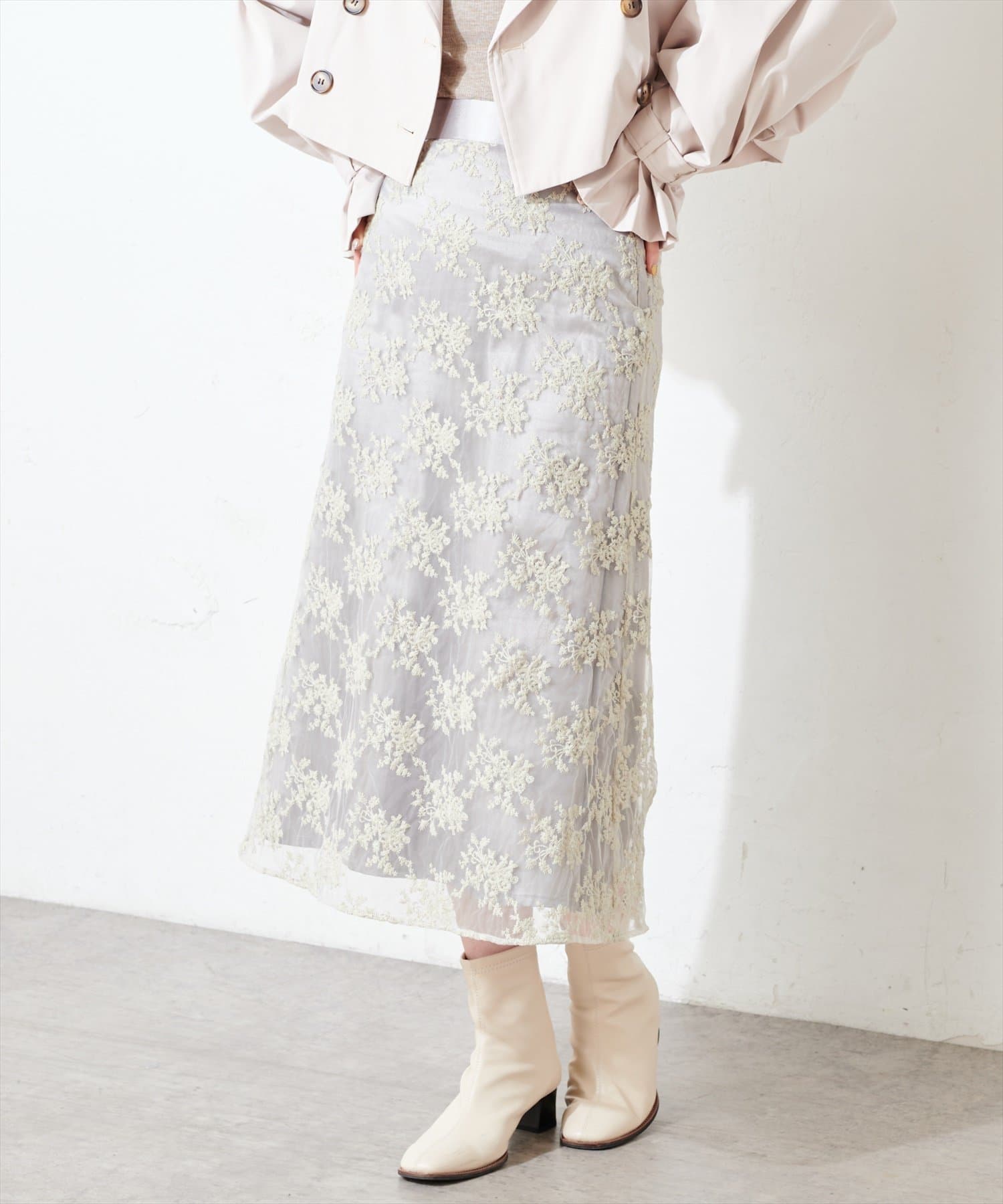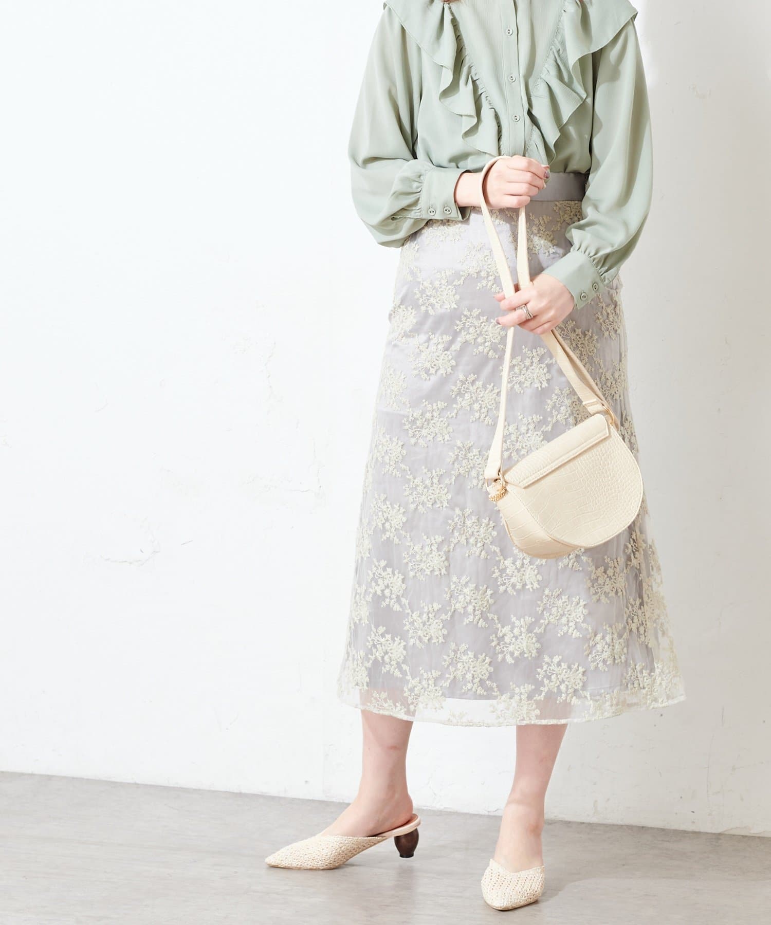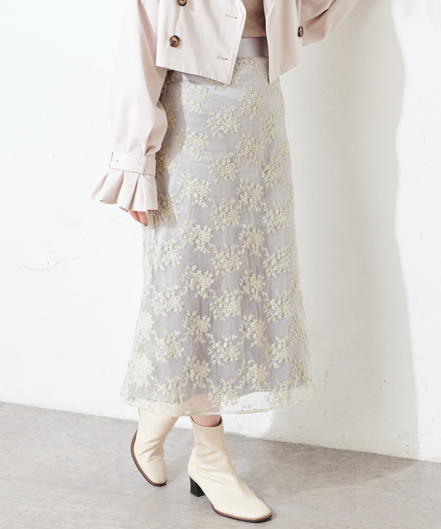 甘すぎない可愛さを詰め込んだ、オーガンジー刺繍スカート