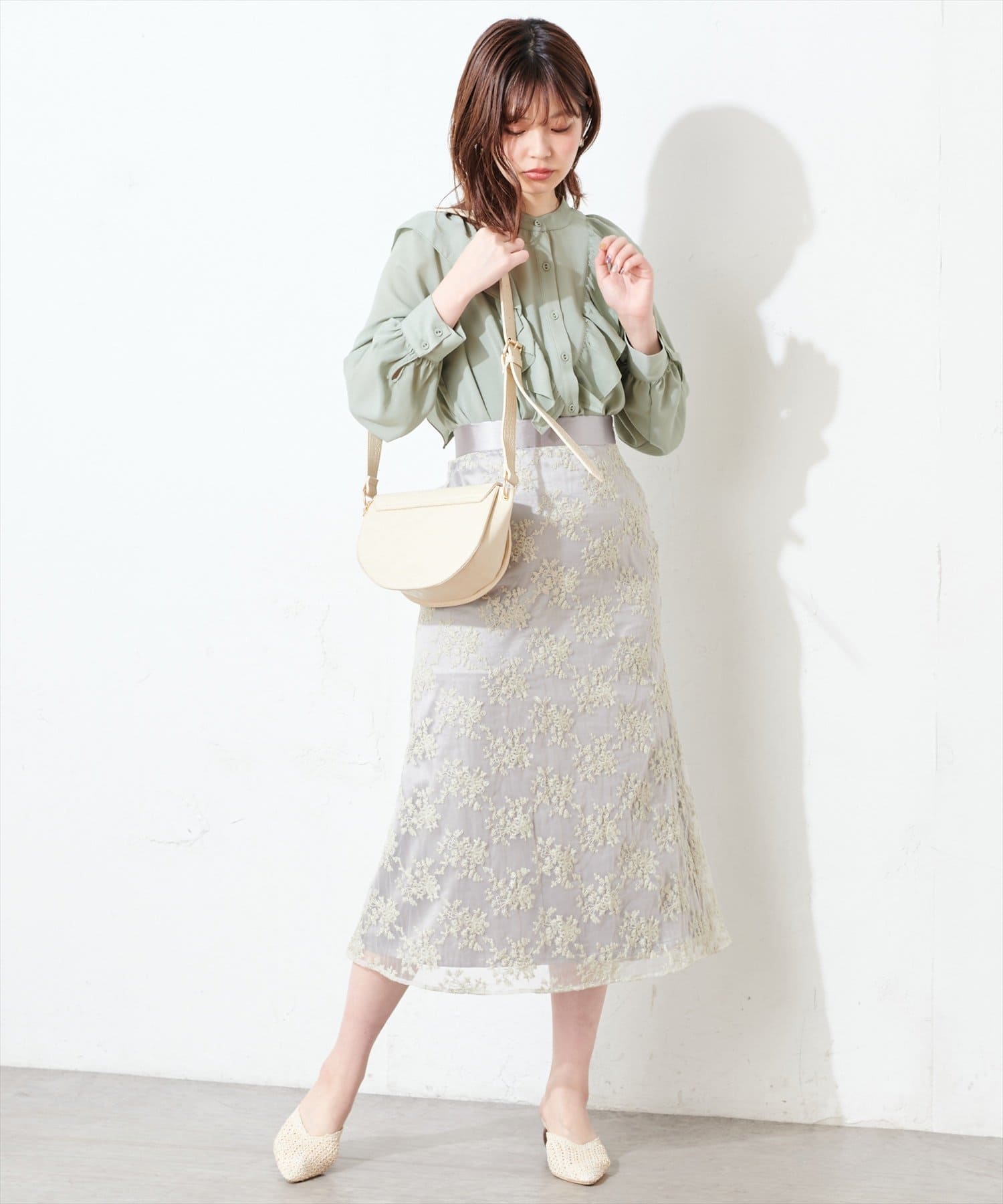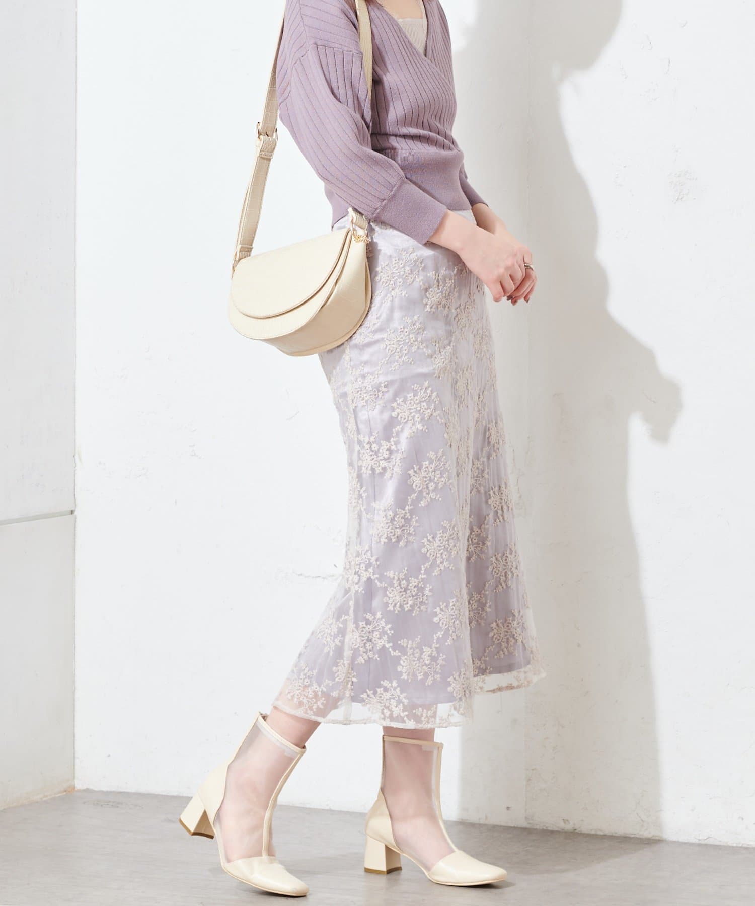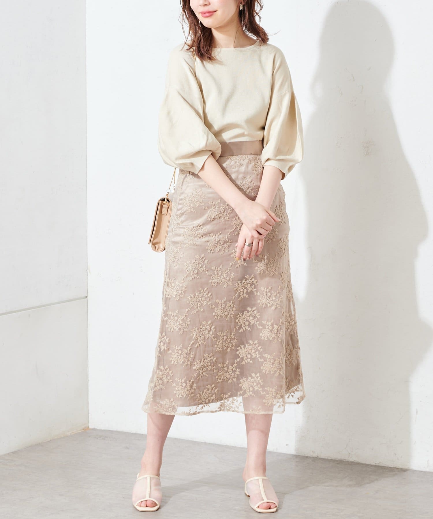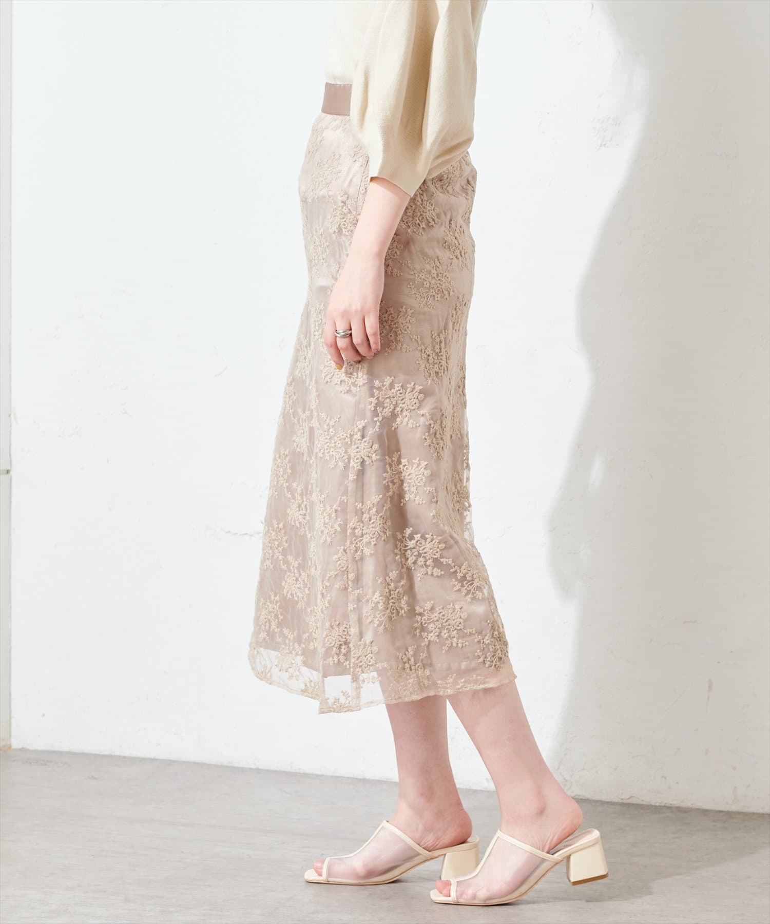 甘すぎない可愛さを詰め込んだ、オーガンジー刺繍スカート