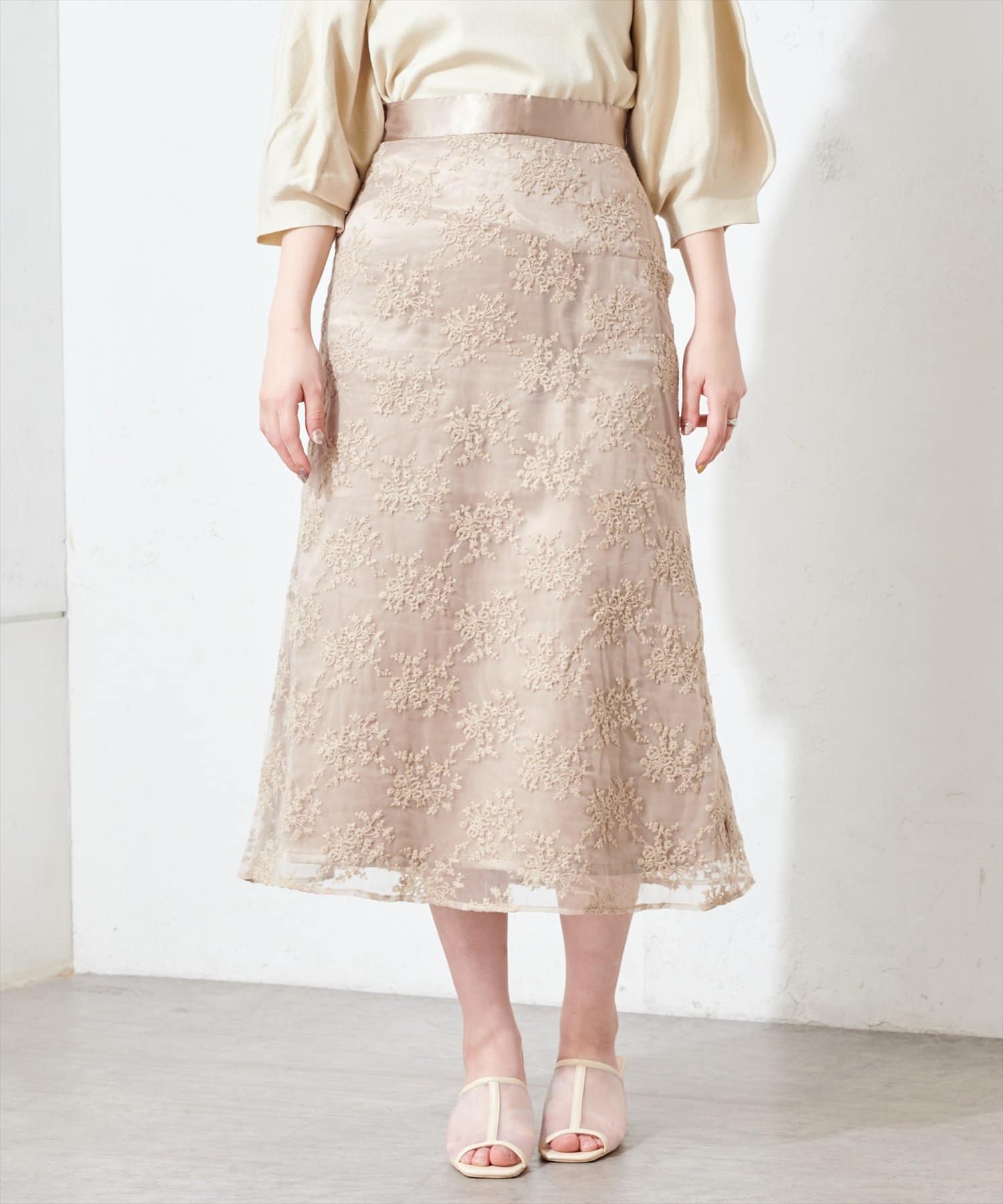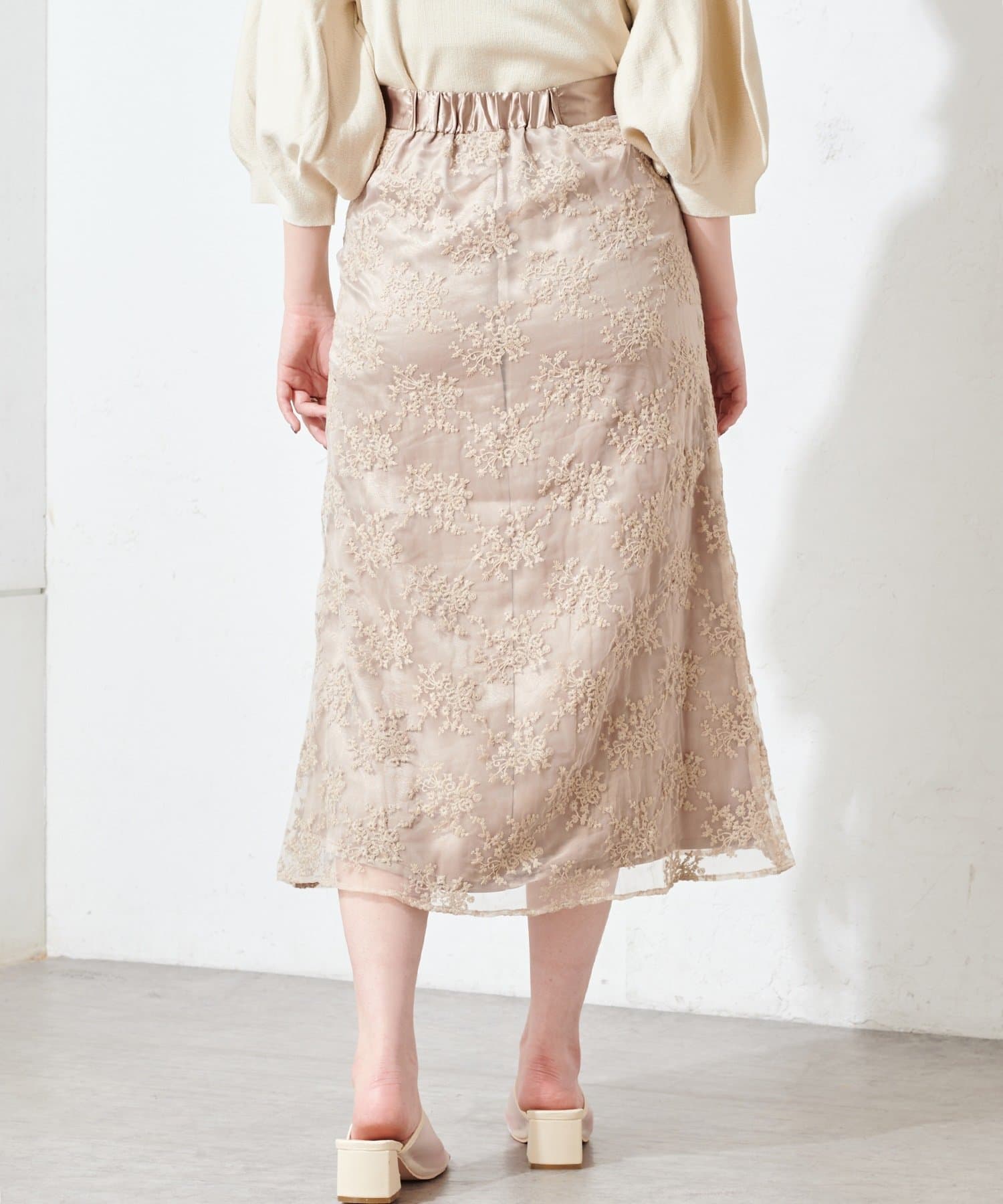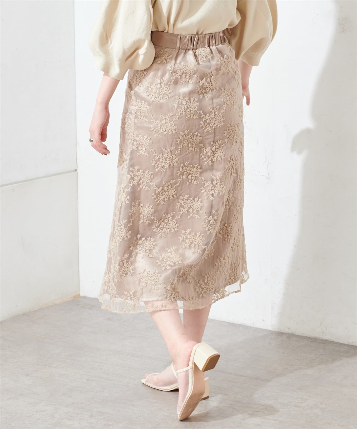 オーガンジー刺繍スカート