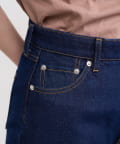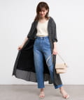 やや深めのウエストラインに仕上げたことにより、トップスをインしたスタイリングは