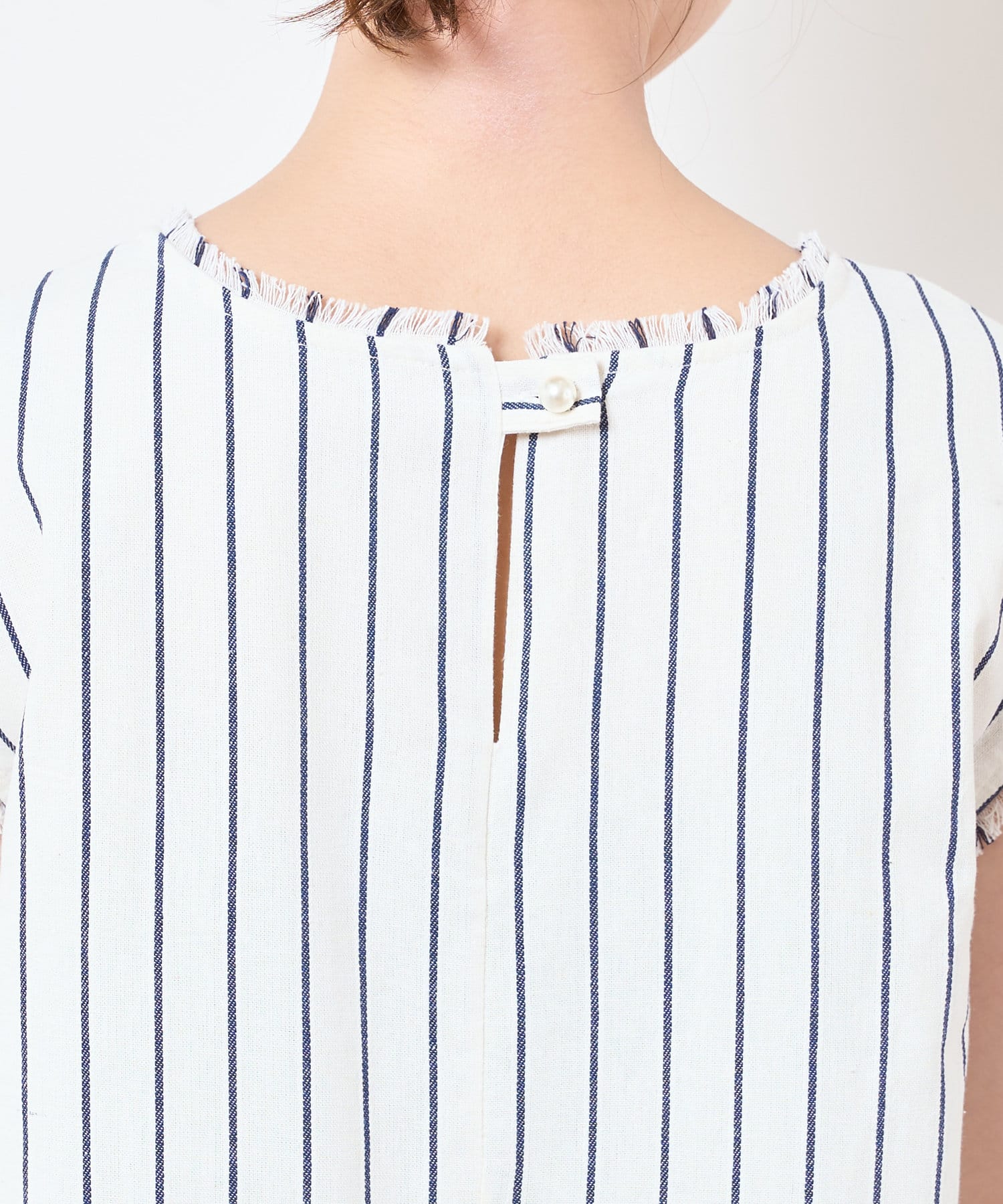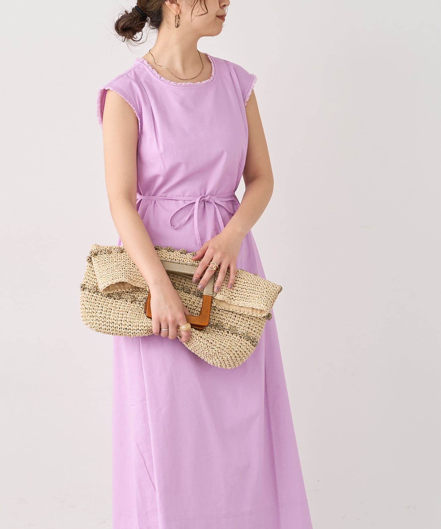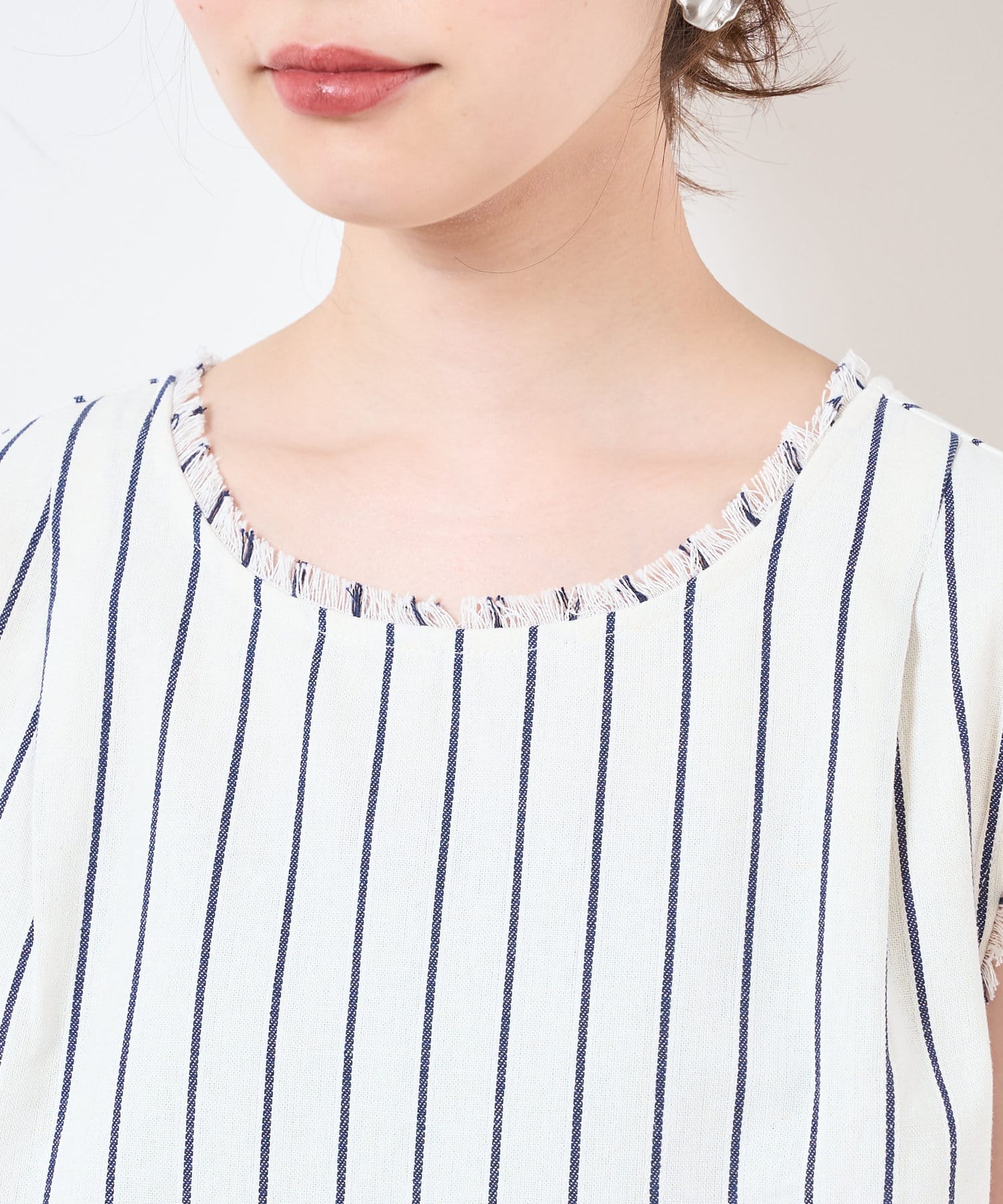 衿ぐりと袖口のフリンジ使いで夏らしいリゾート感をプラスしました。