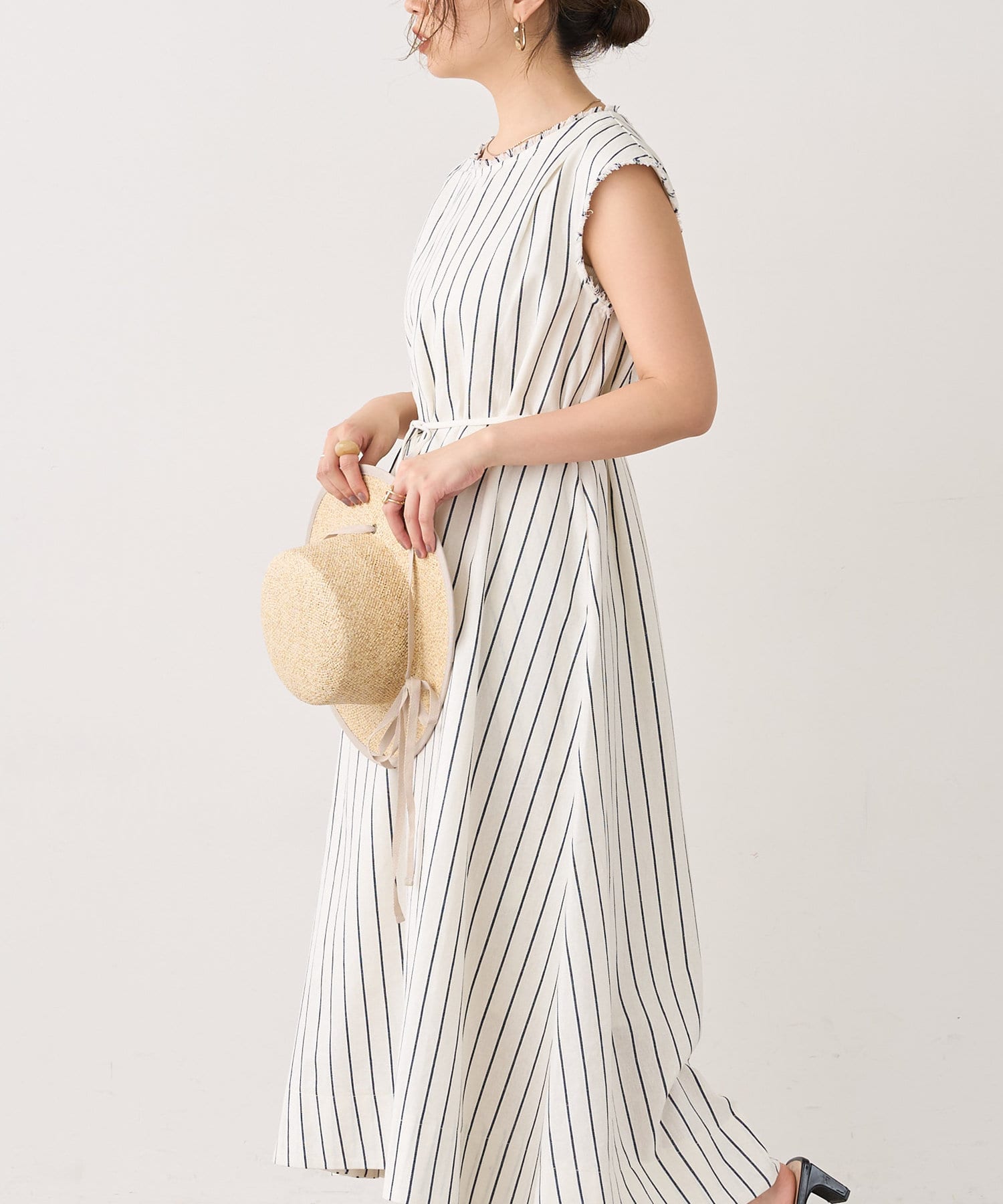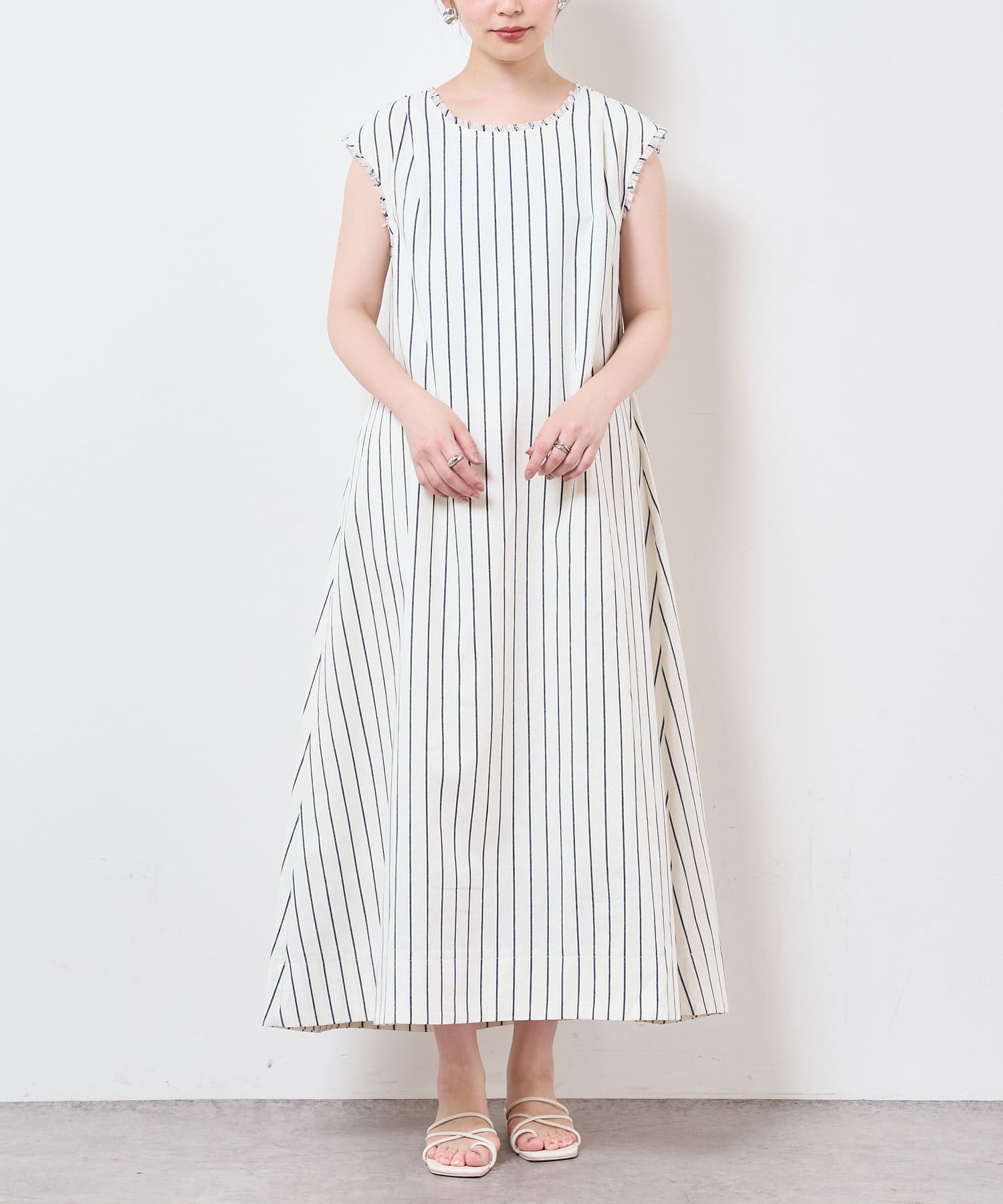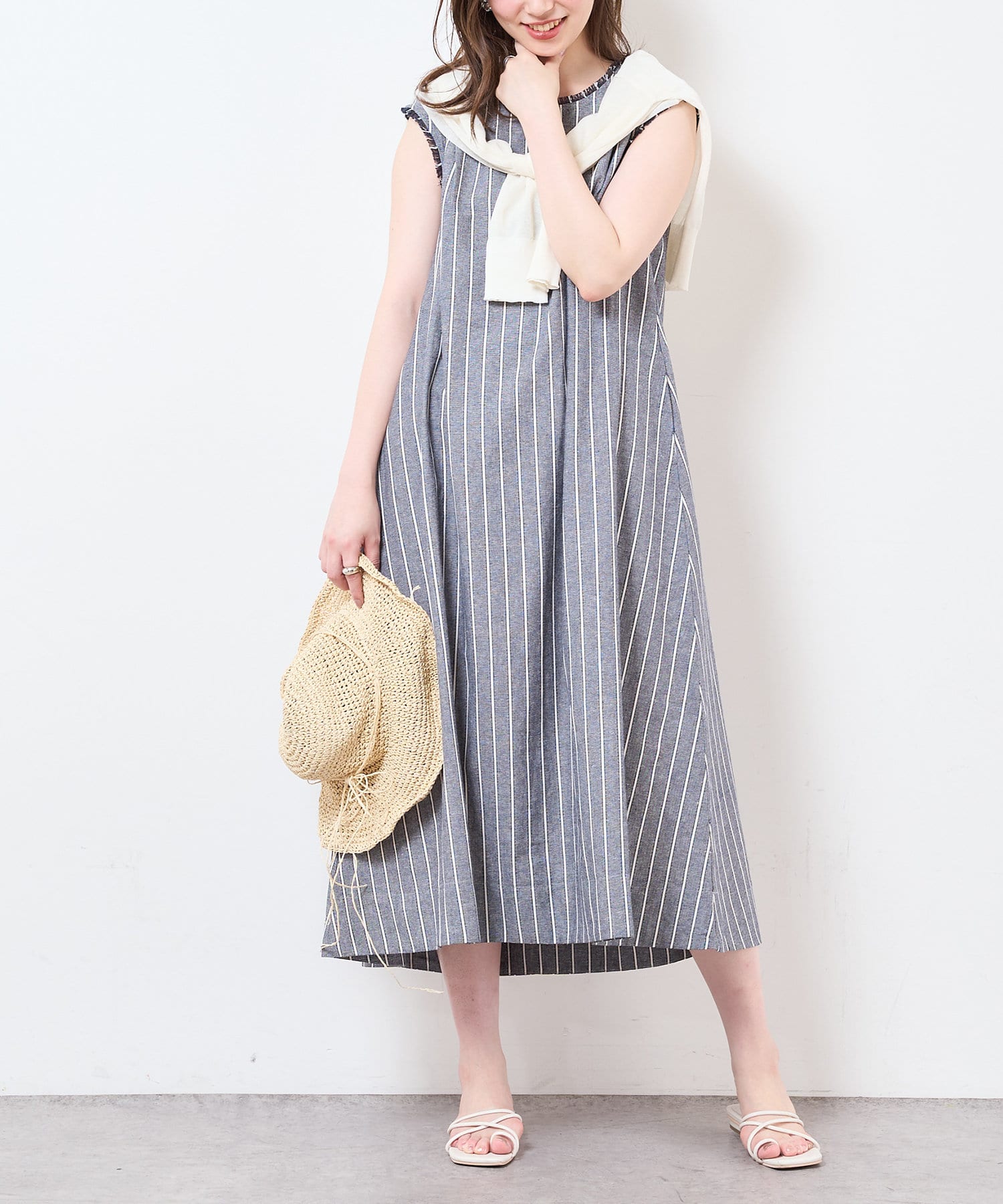 コットン×麻の涼しげな生地がシーズンライクなノースリーブワンピース。