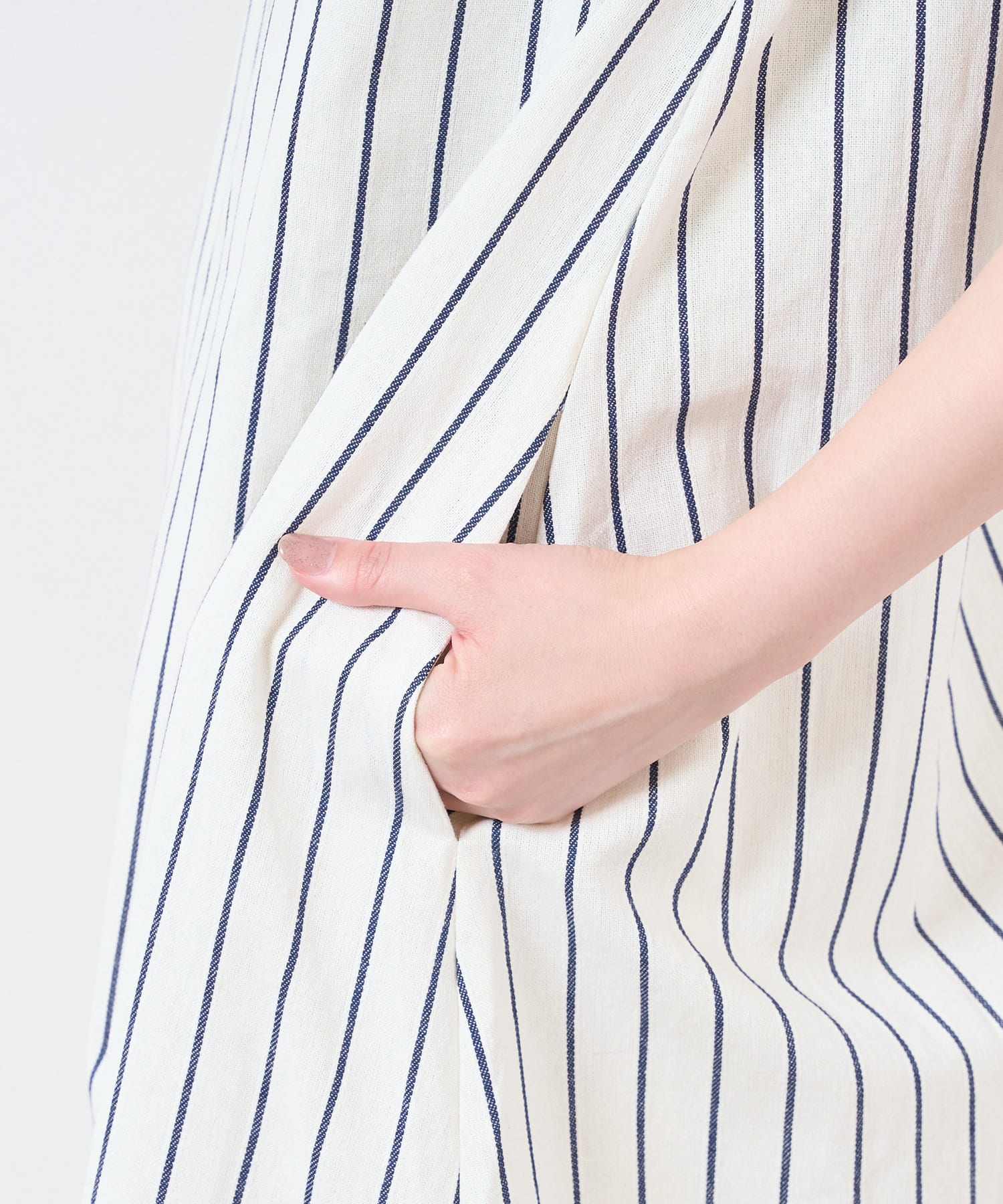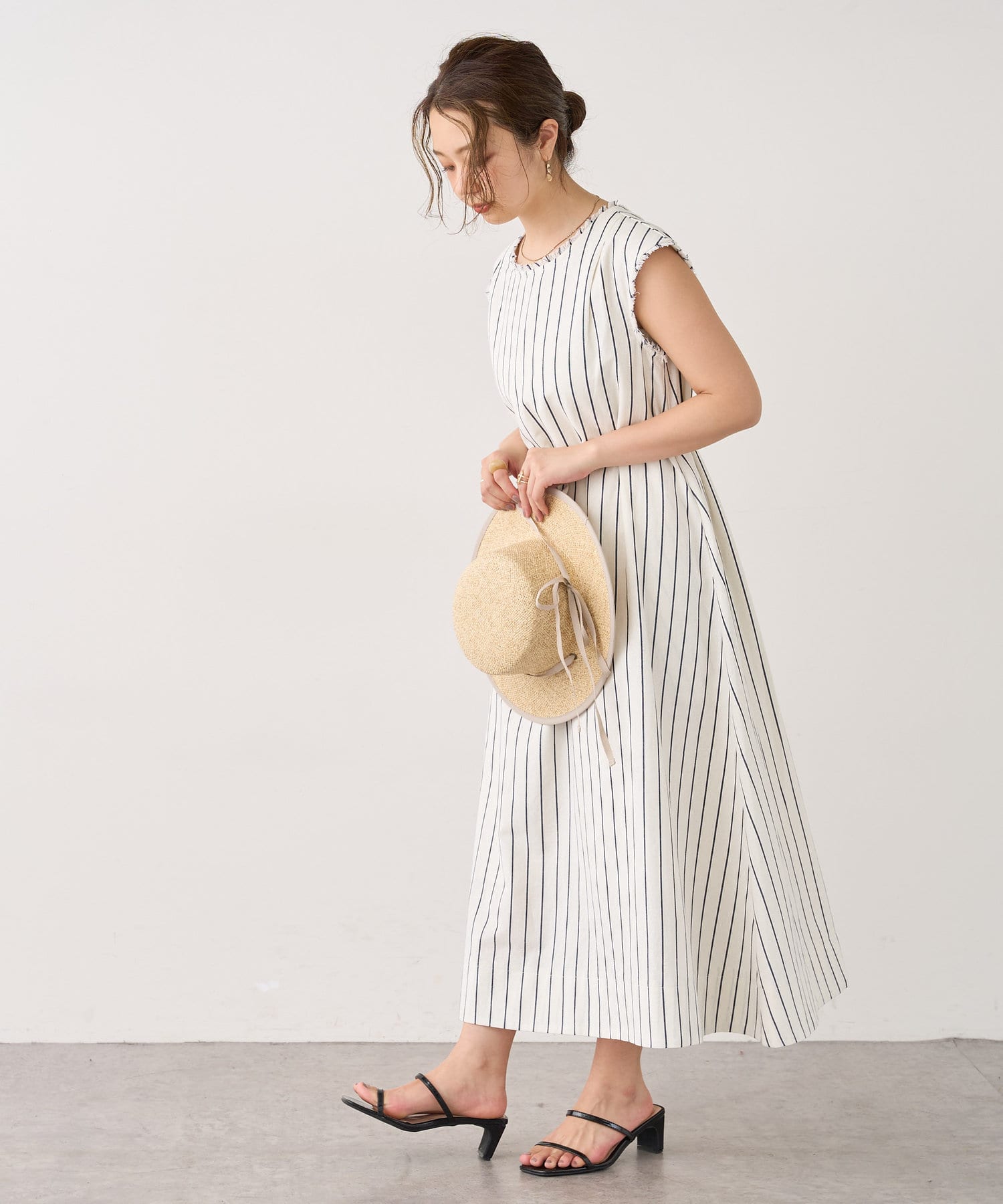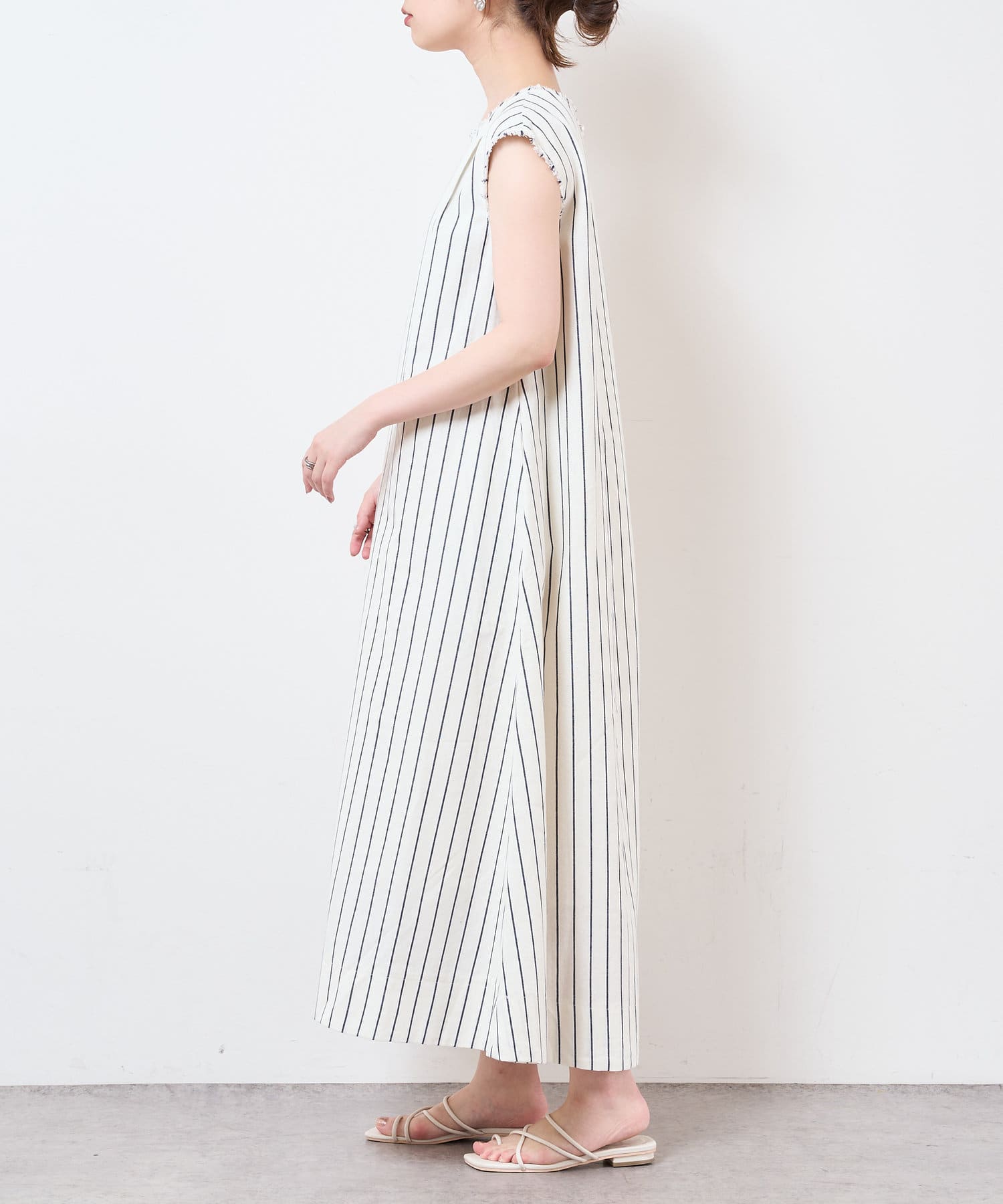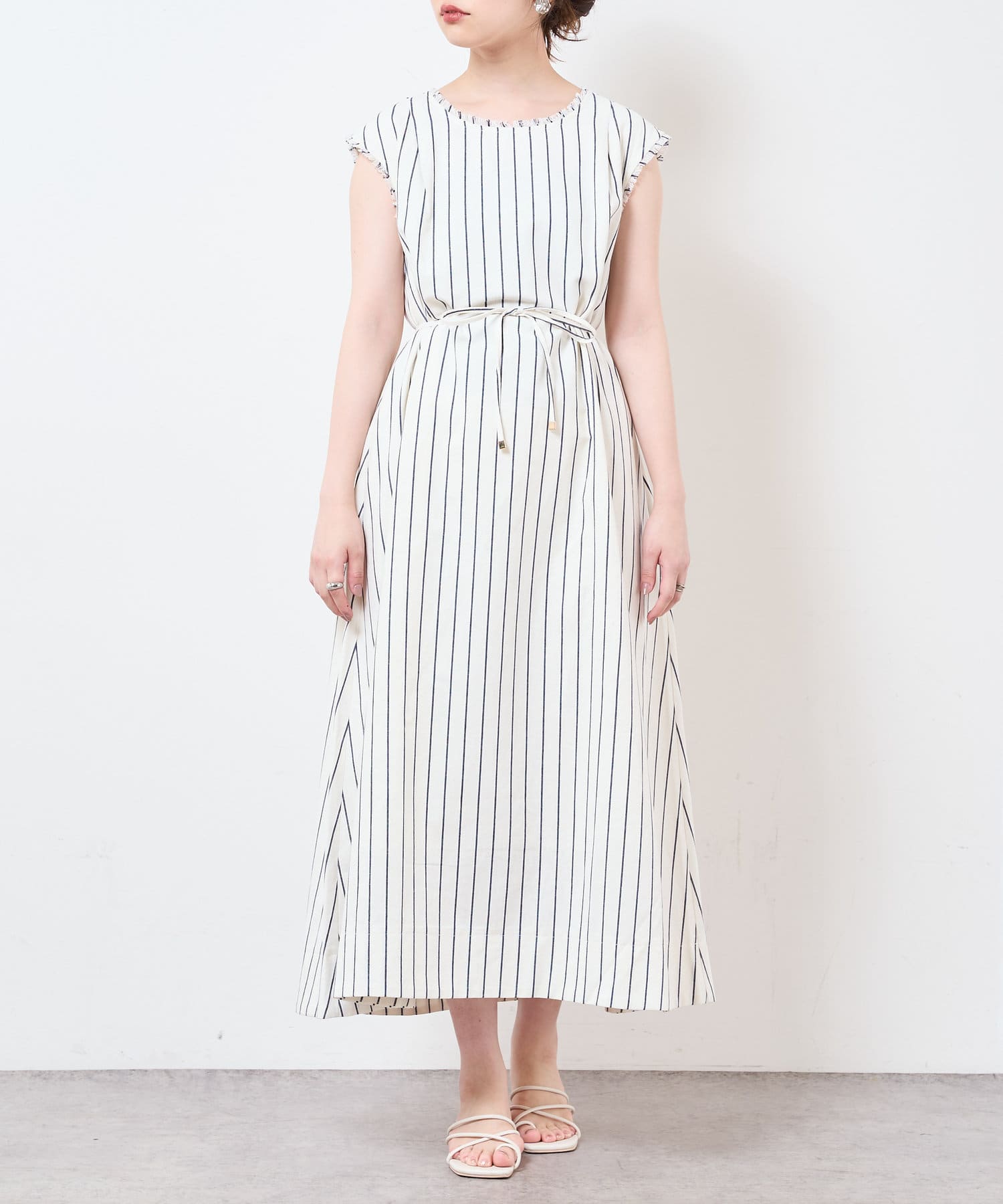 コットン×麻の涼しげな生地がシーズンライクなノースリーブワンピース。
