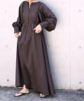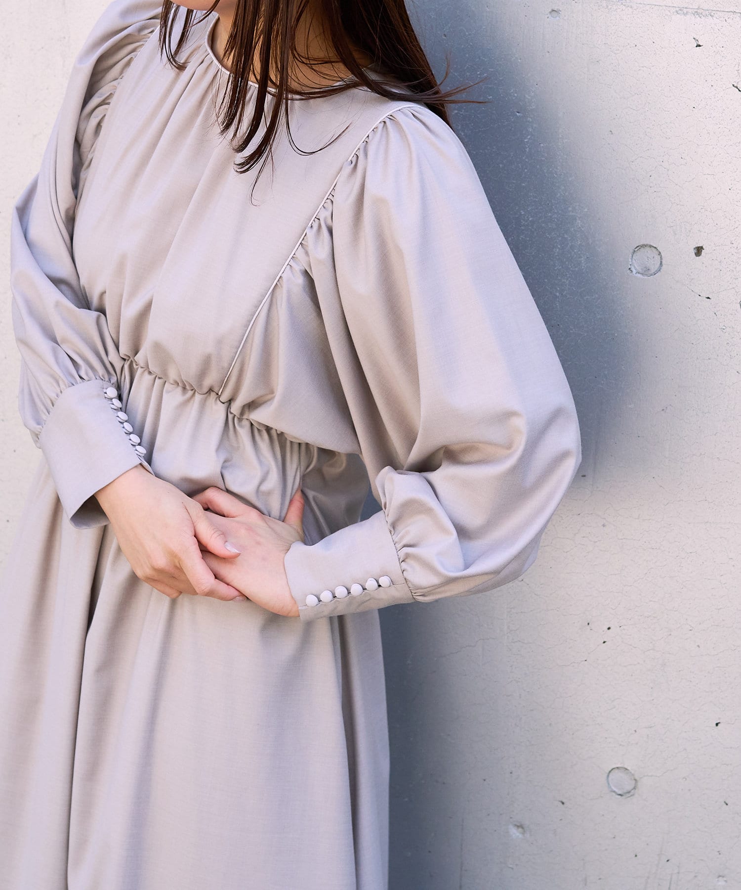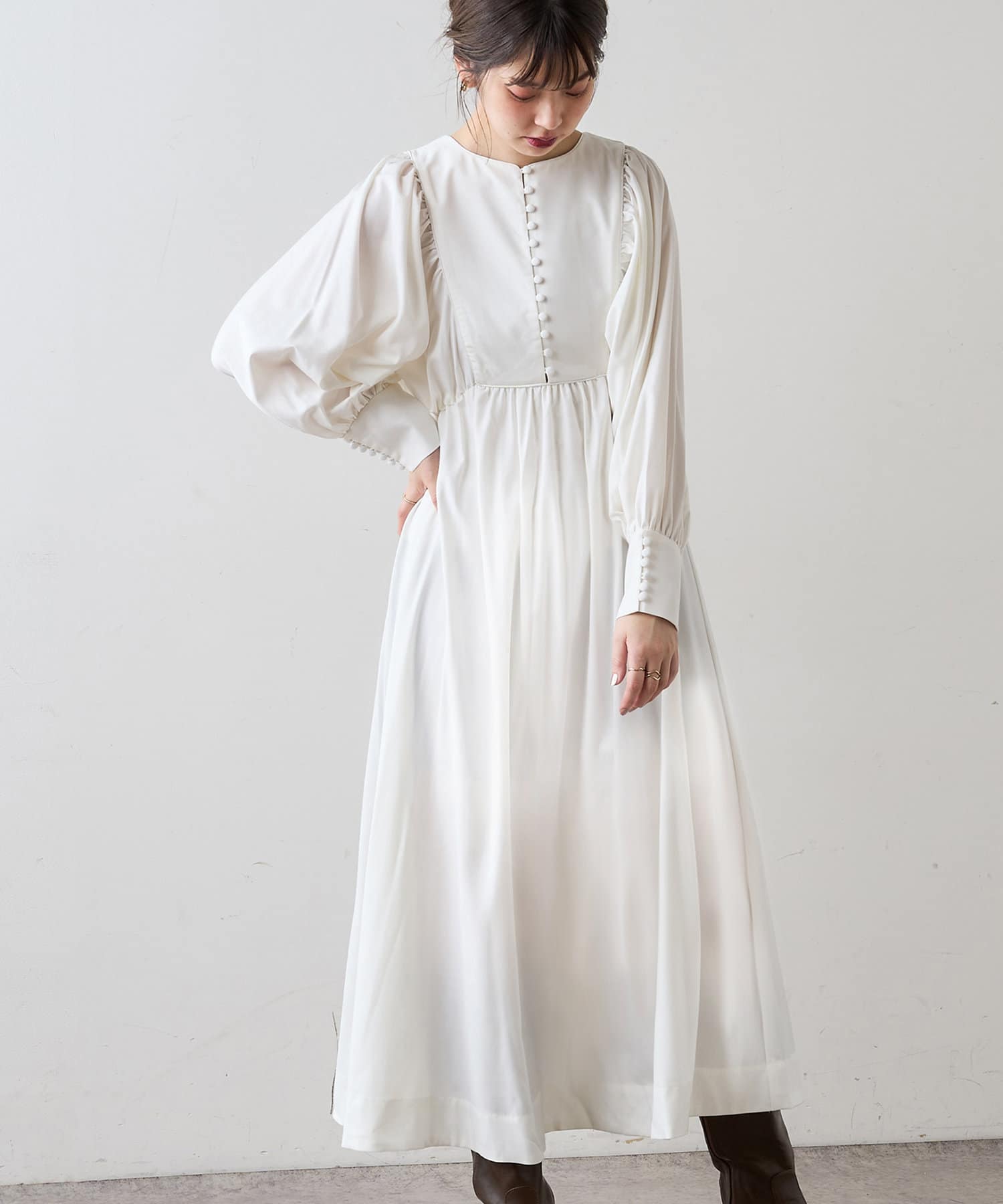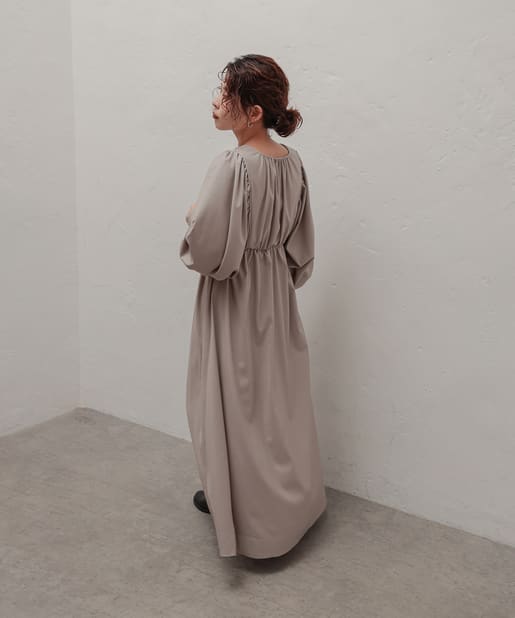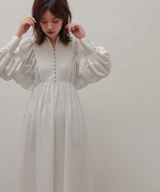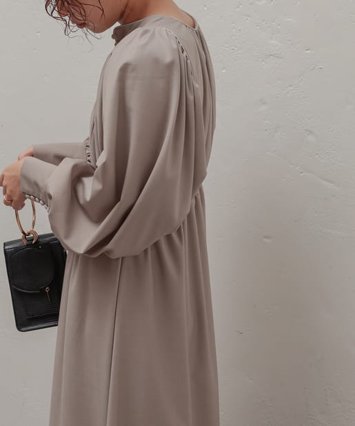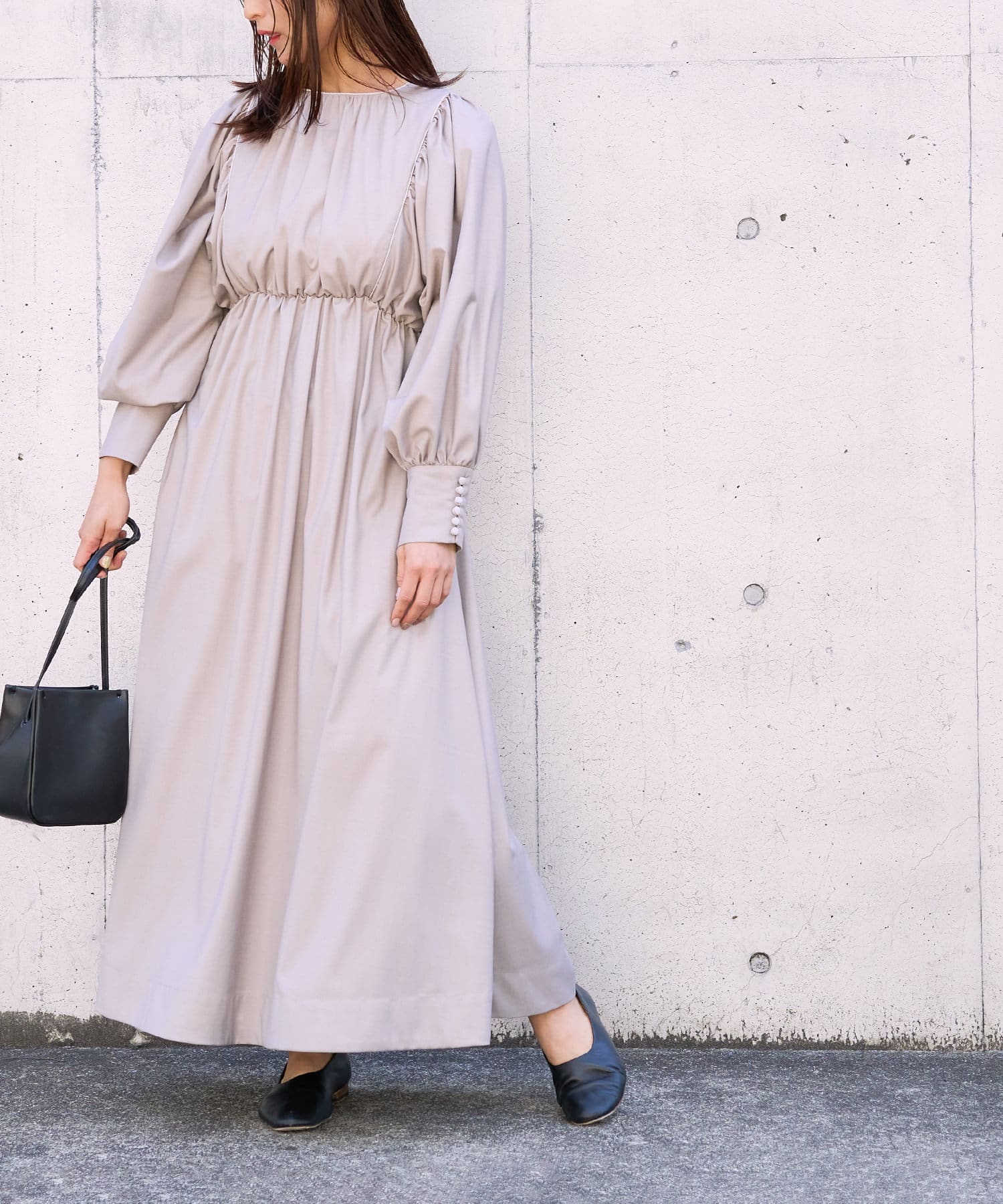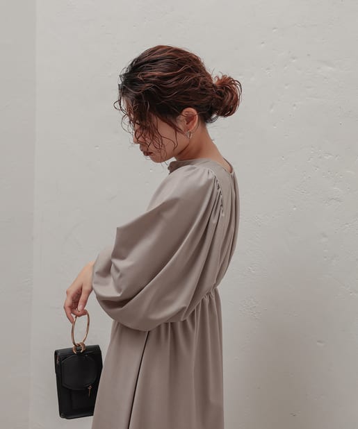 第一弾はシンプルながらも程よくトレンド感を演出してくれるボリュームスリーブワンピース。