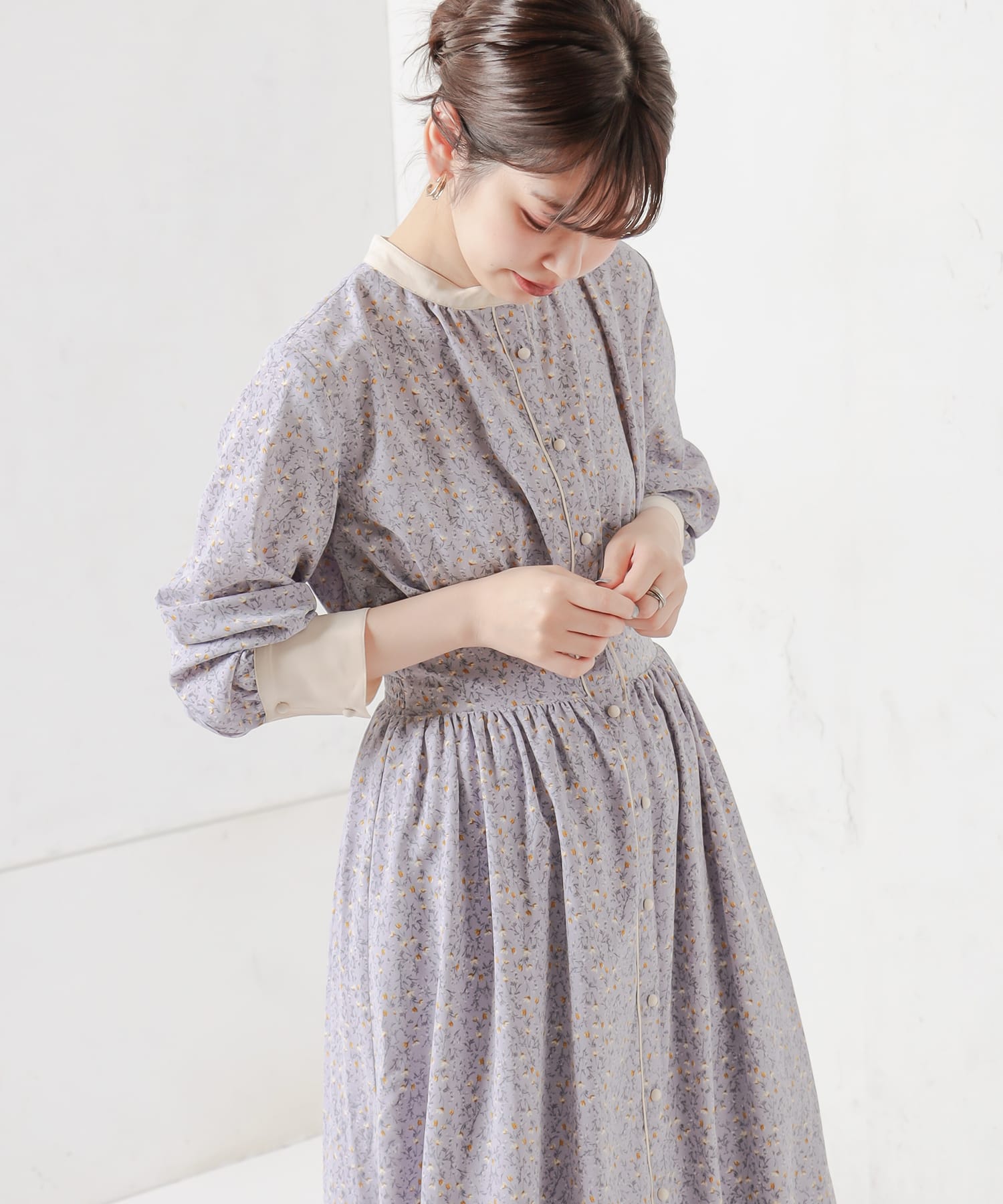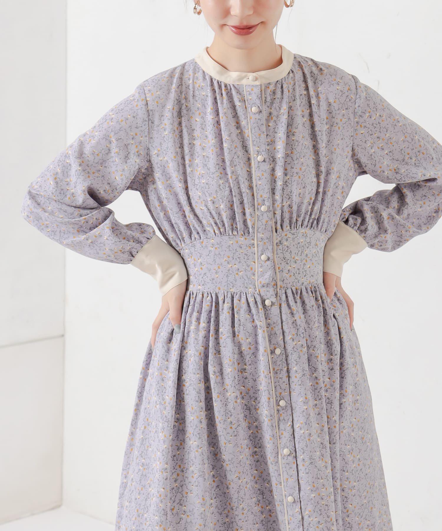 優しい配色使いで春らしさをプラスした配色花柄レディワンピース