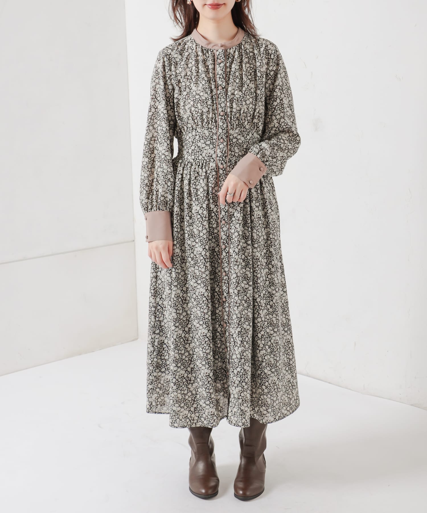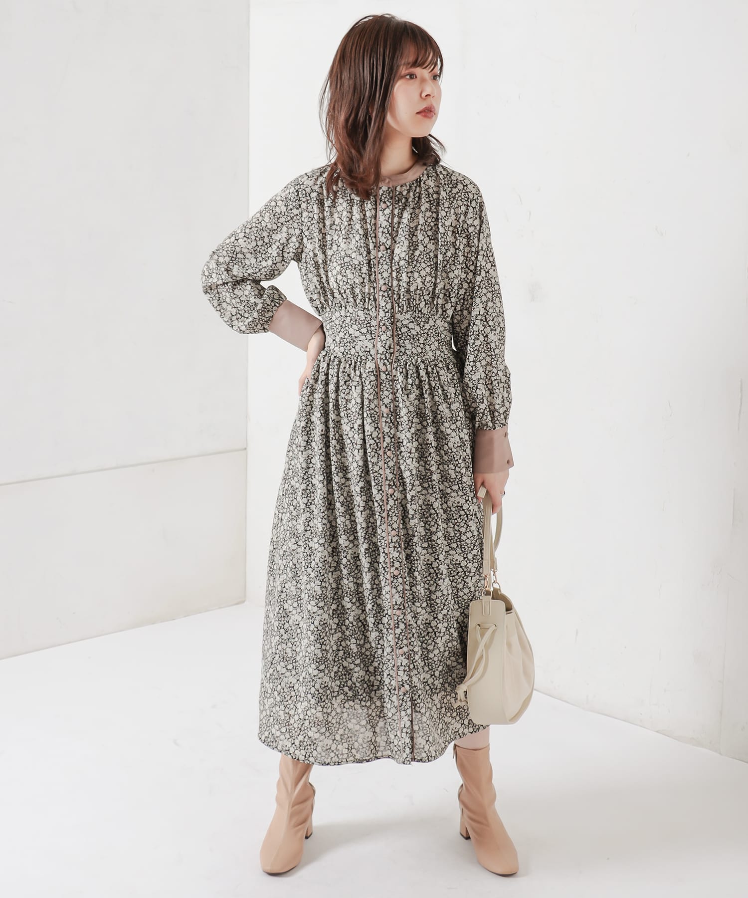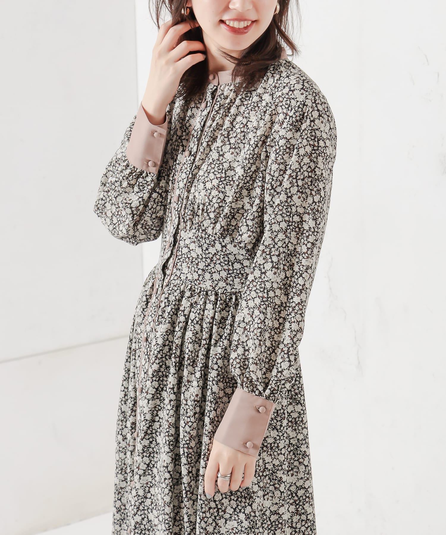 大人の甘さを底上げしてくれる花柄ワンピースが登場。落ち着いたカラー配色なのでエレガントな雰囲気で着て頂けます。