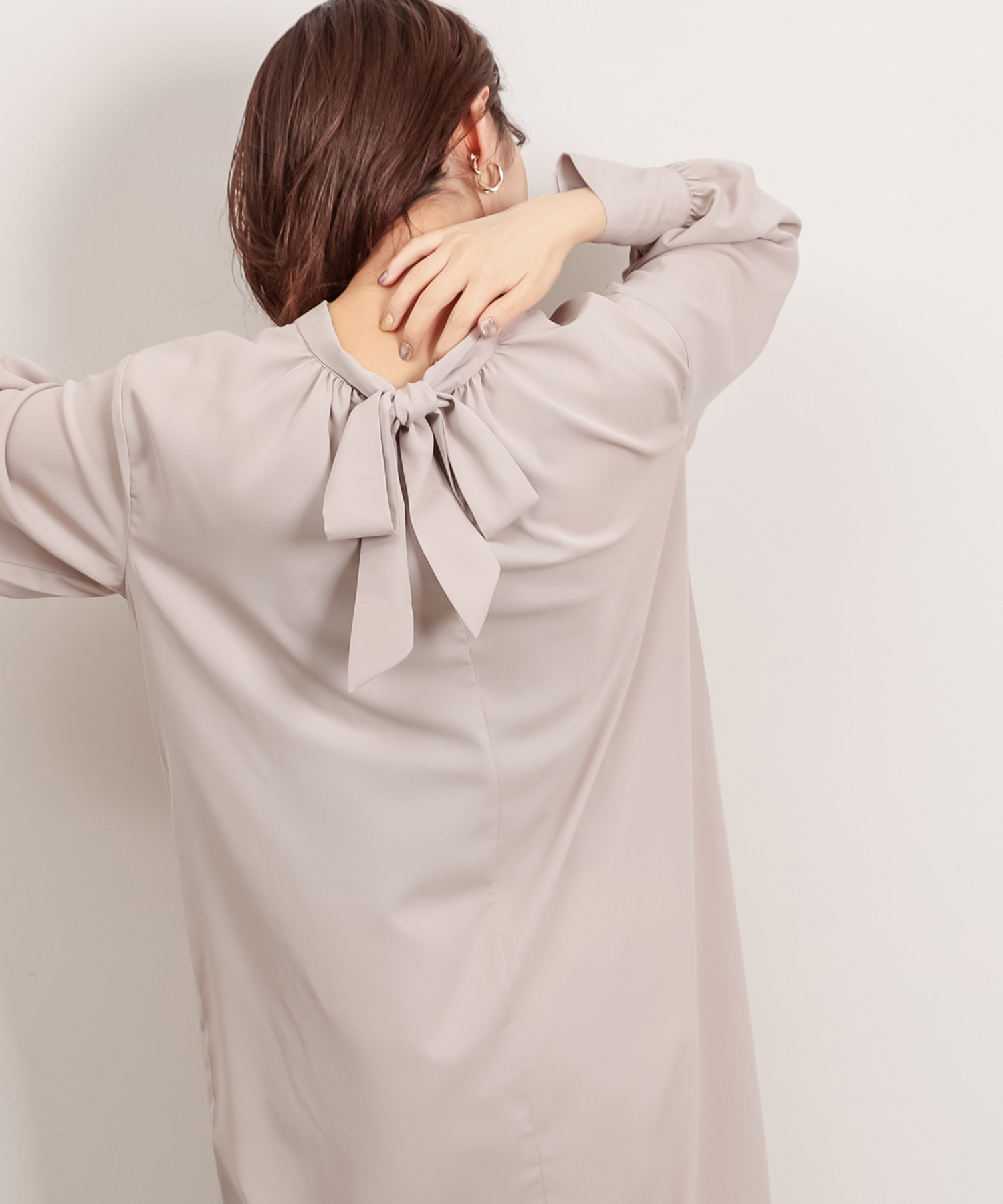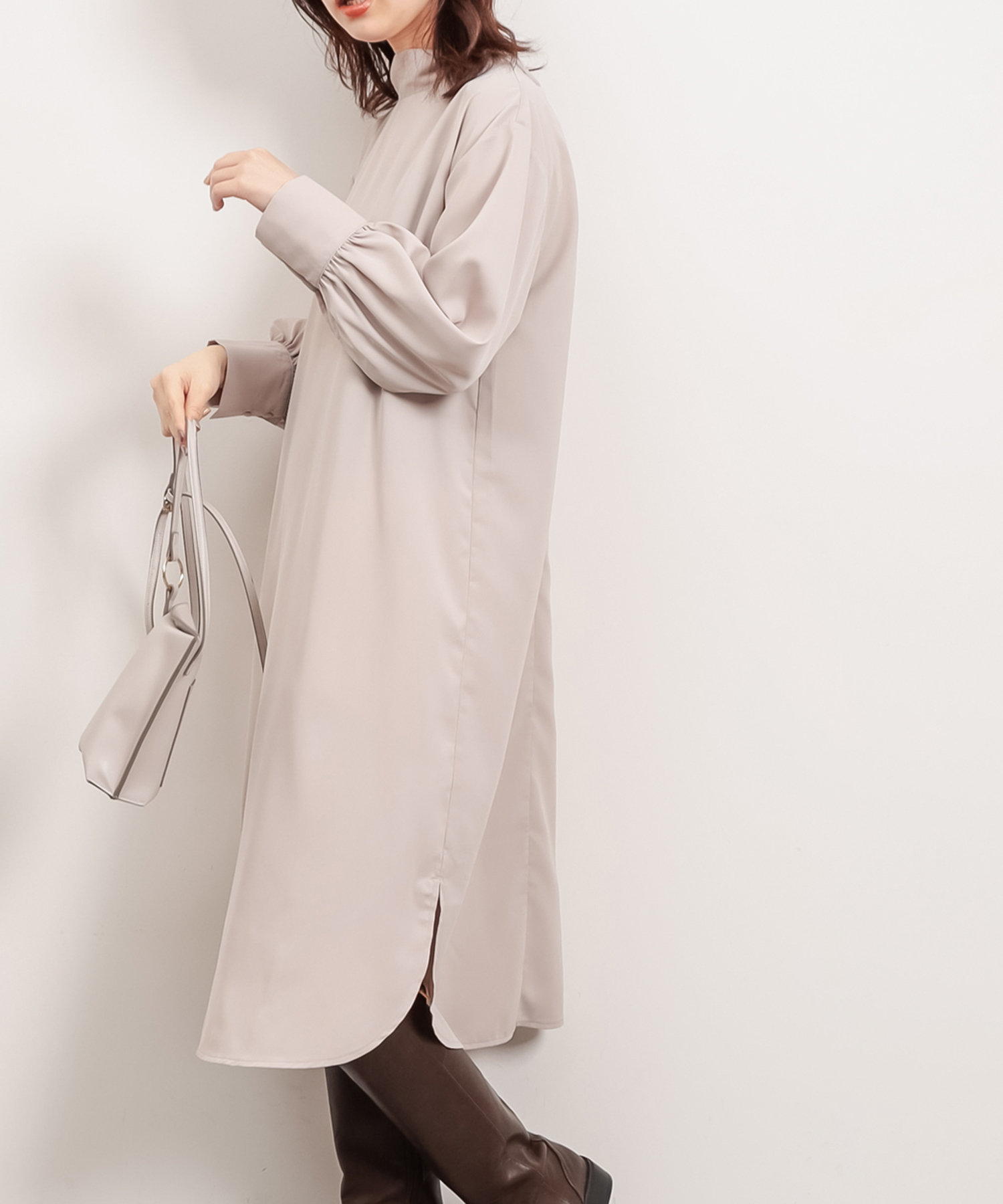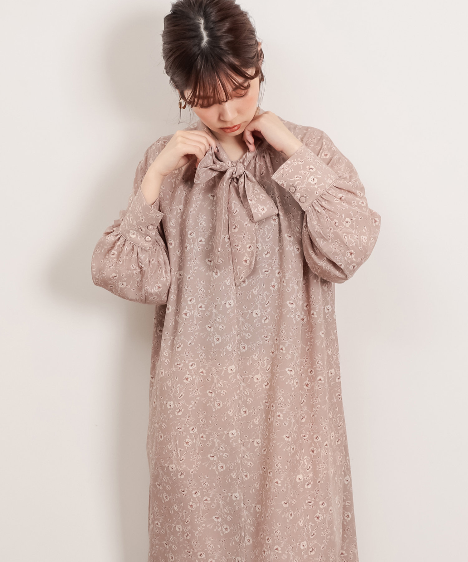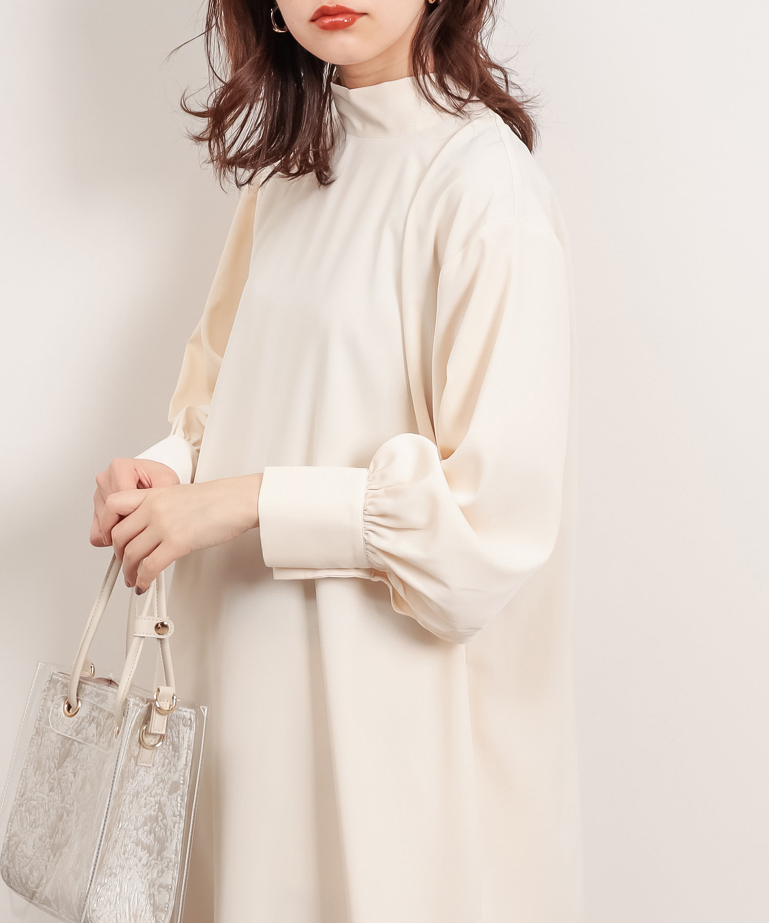 首元でキュッと詰まった、クラシカルレディな雰囲気漂うワンピースが登場。