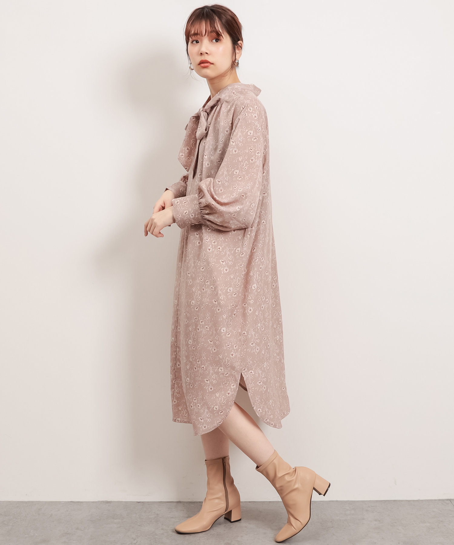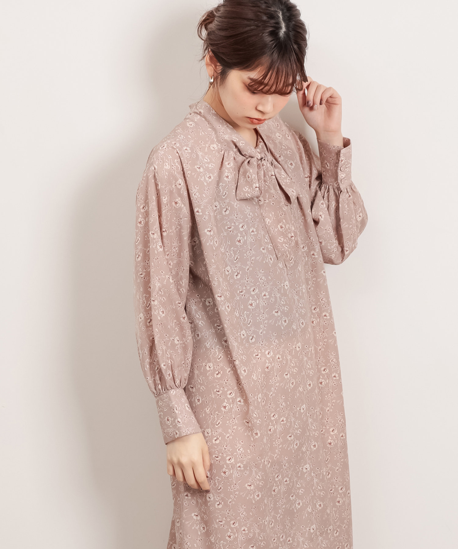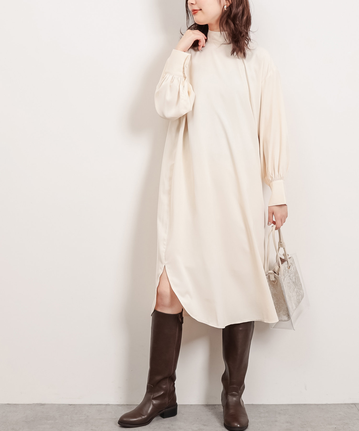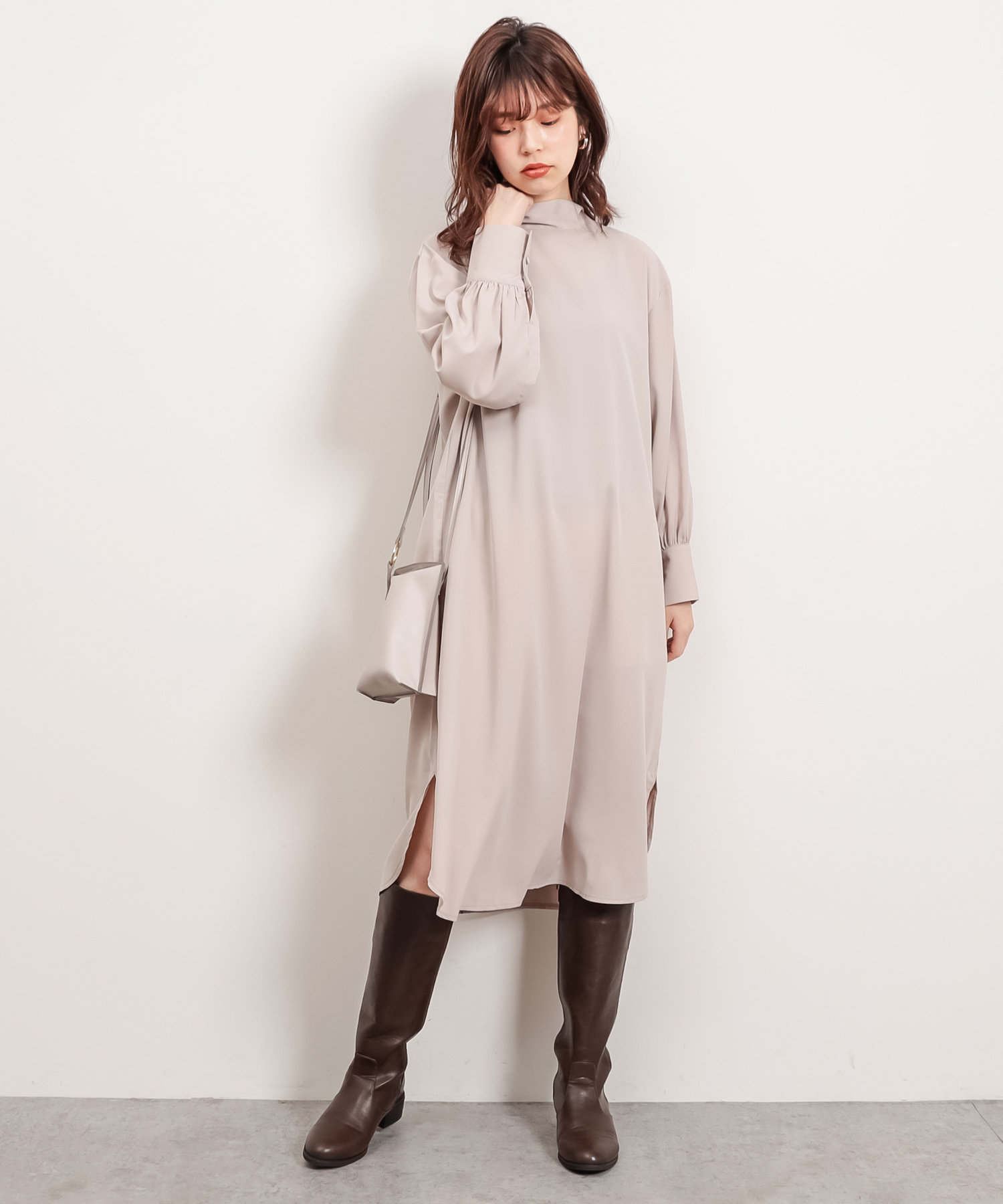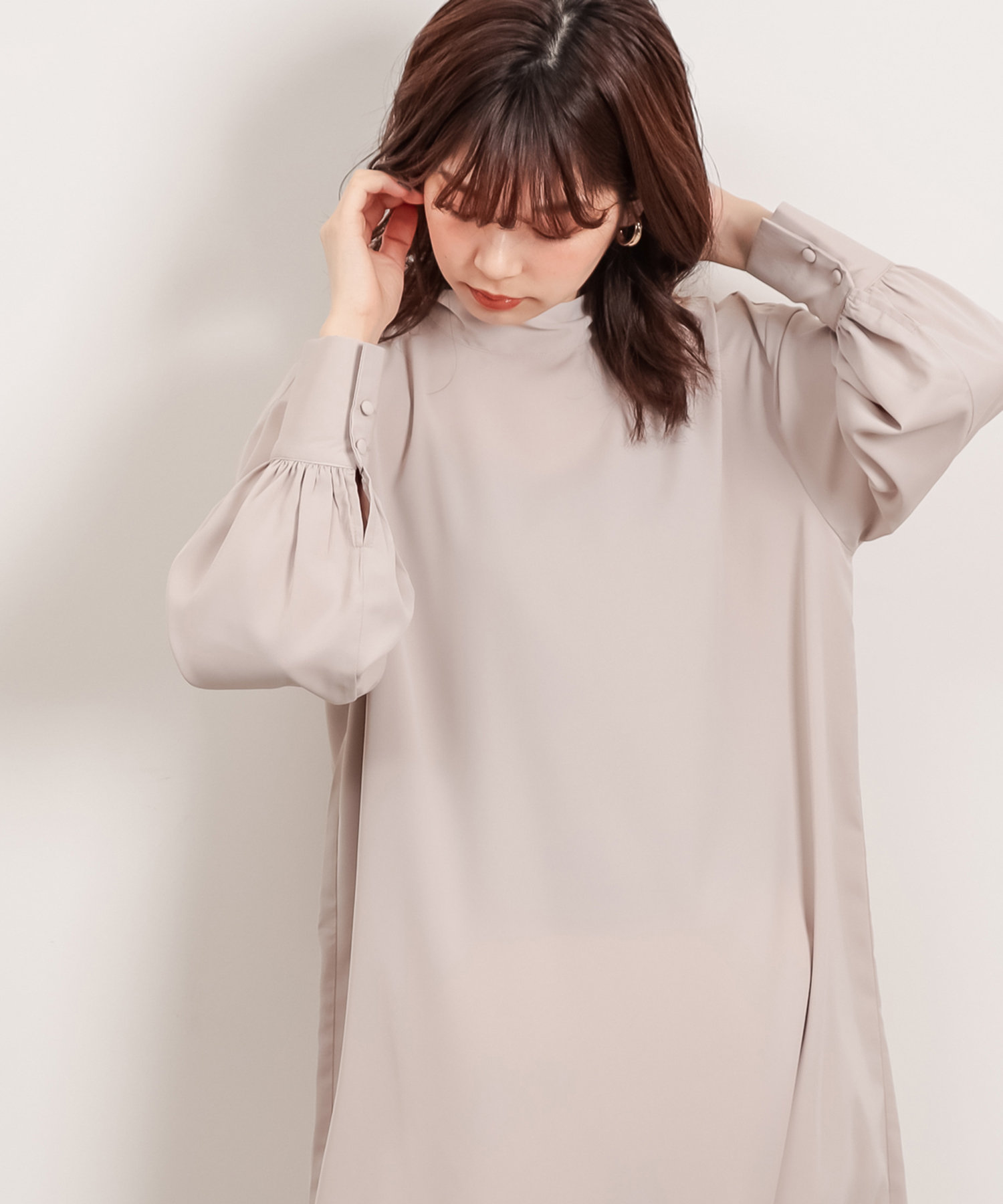 首元でキュッと詰まった、クラシカルレディな雰囲気漂うワンピースが登場。