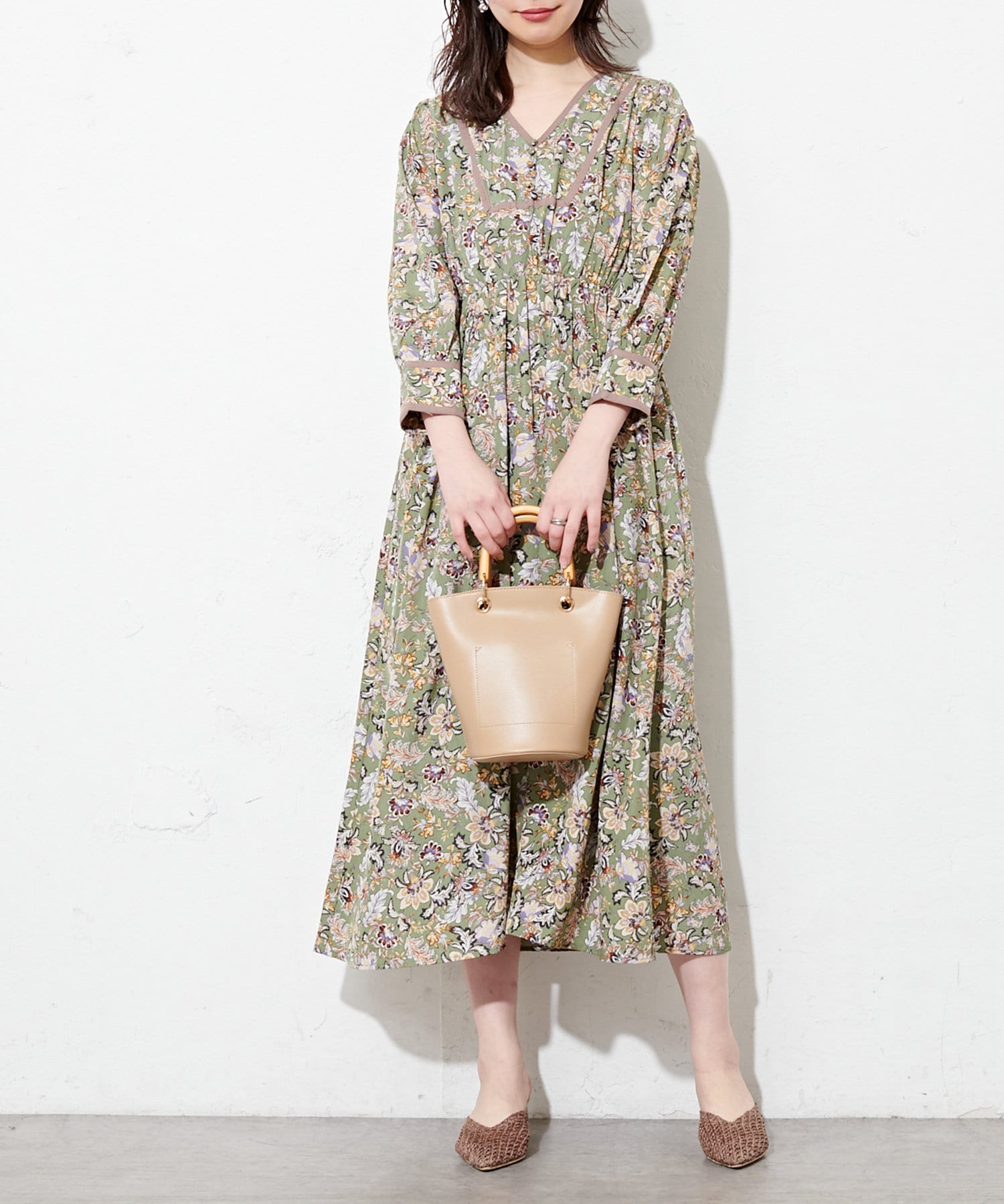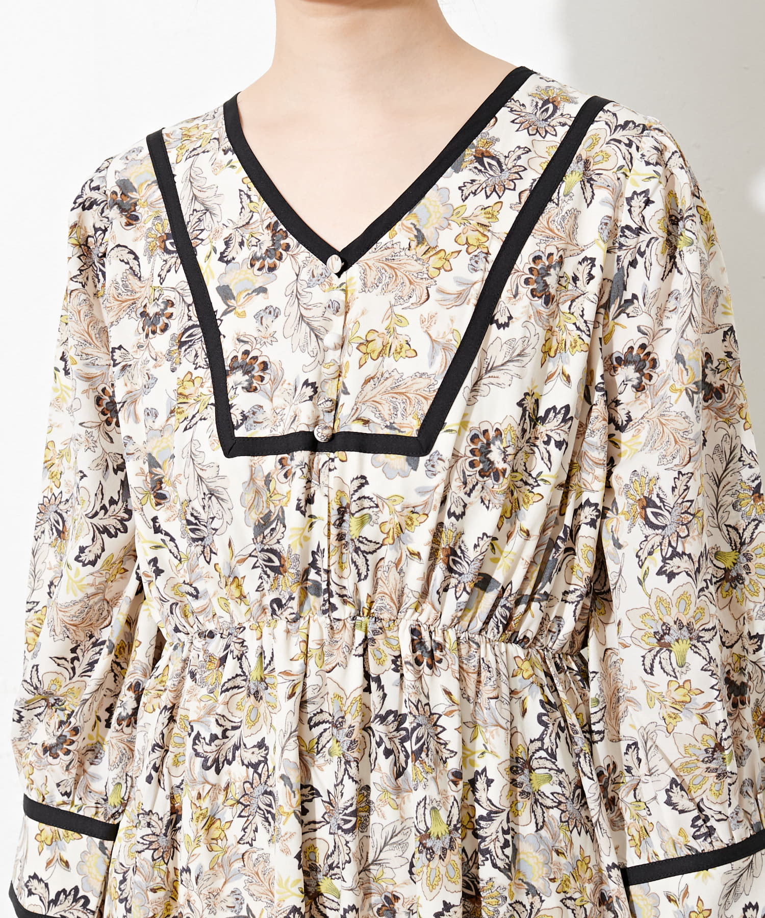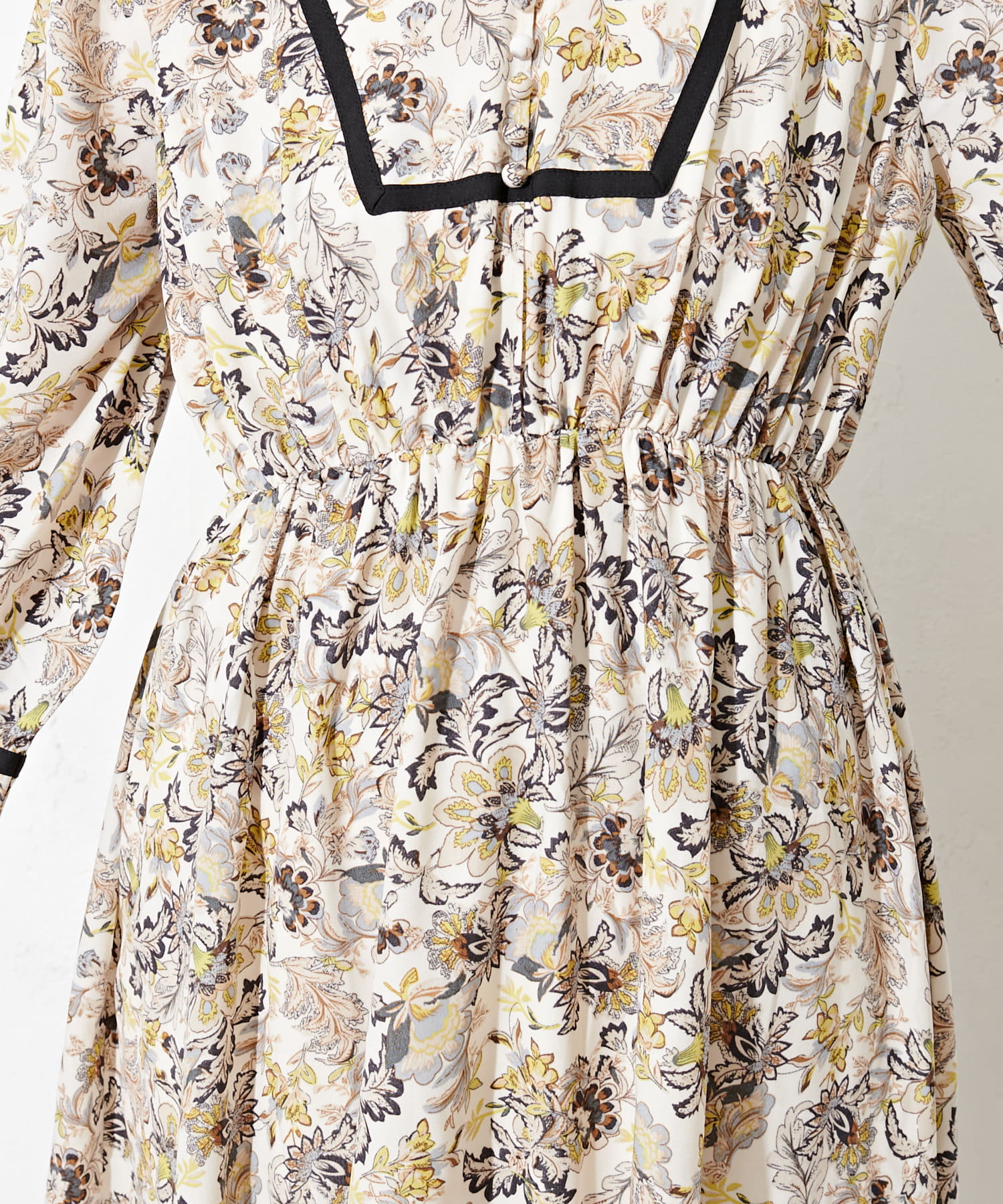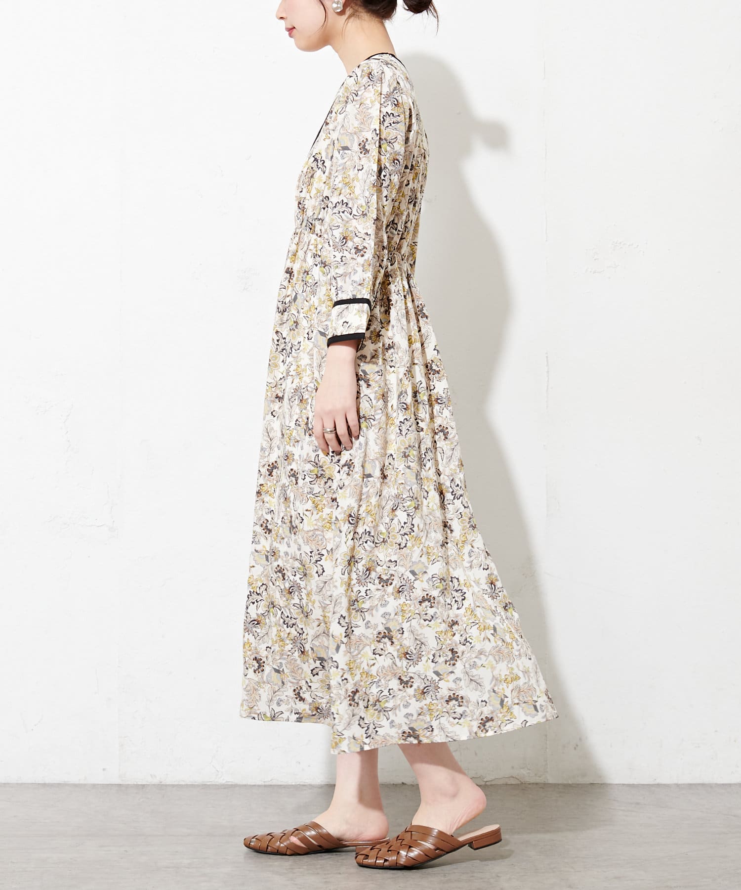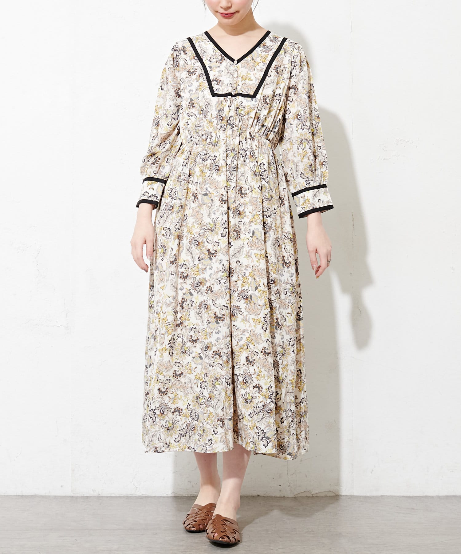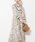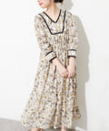 配色テープ使いエスニック柄ワンピース