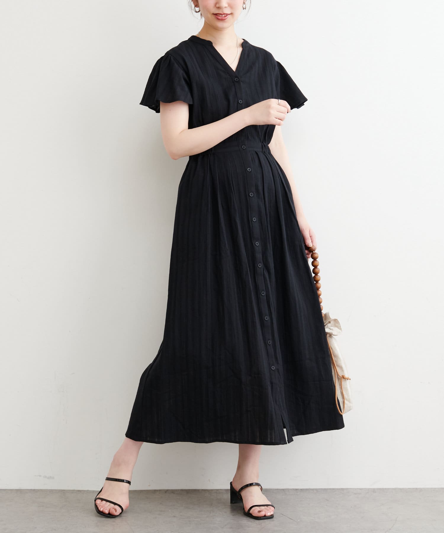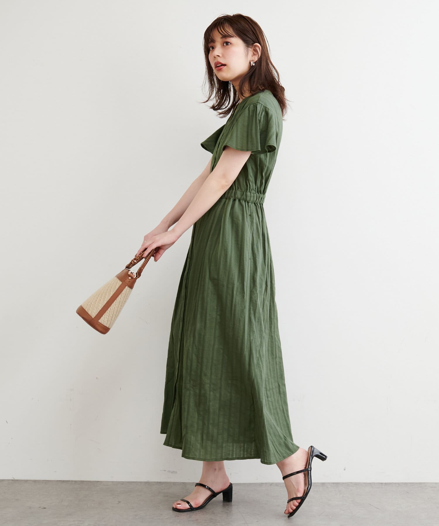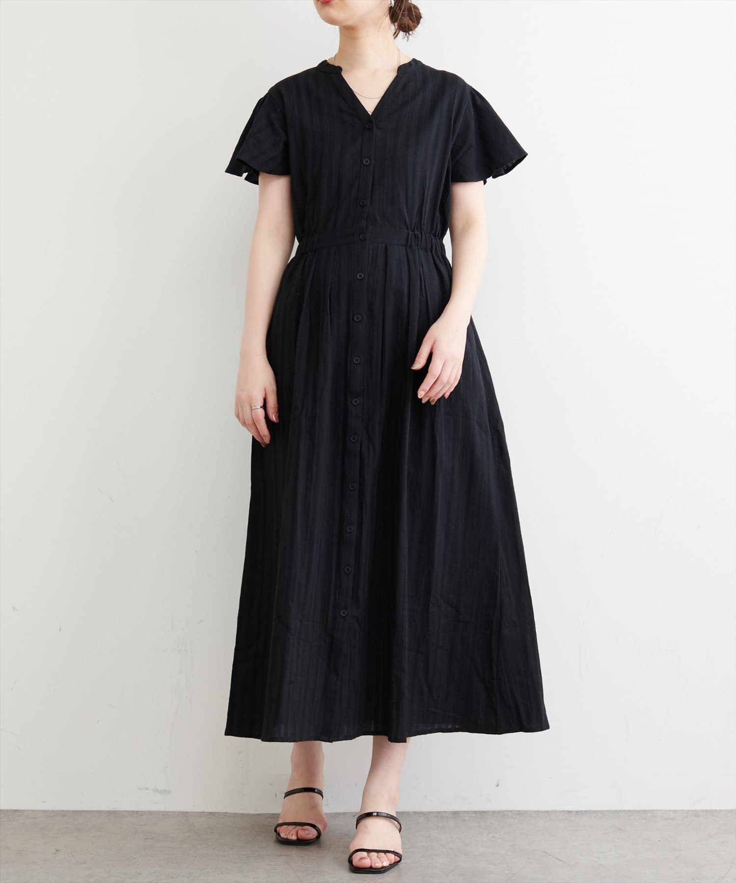 natural couture(ナチュラルクチュール) ストライプ綿レースお上品ワンピース