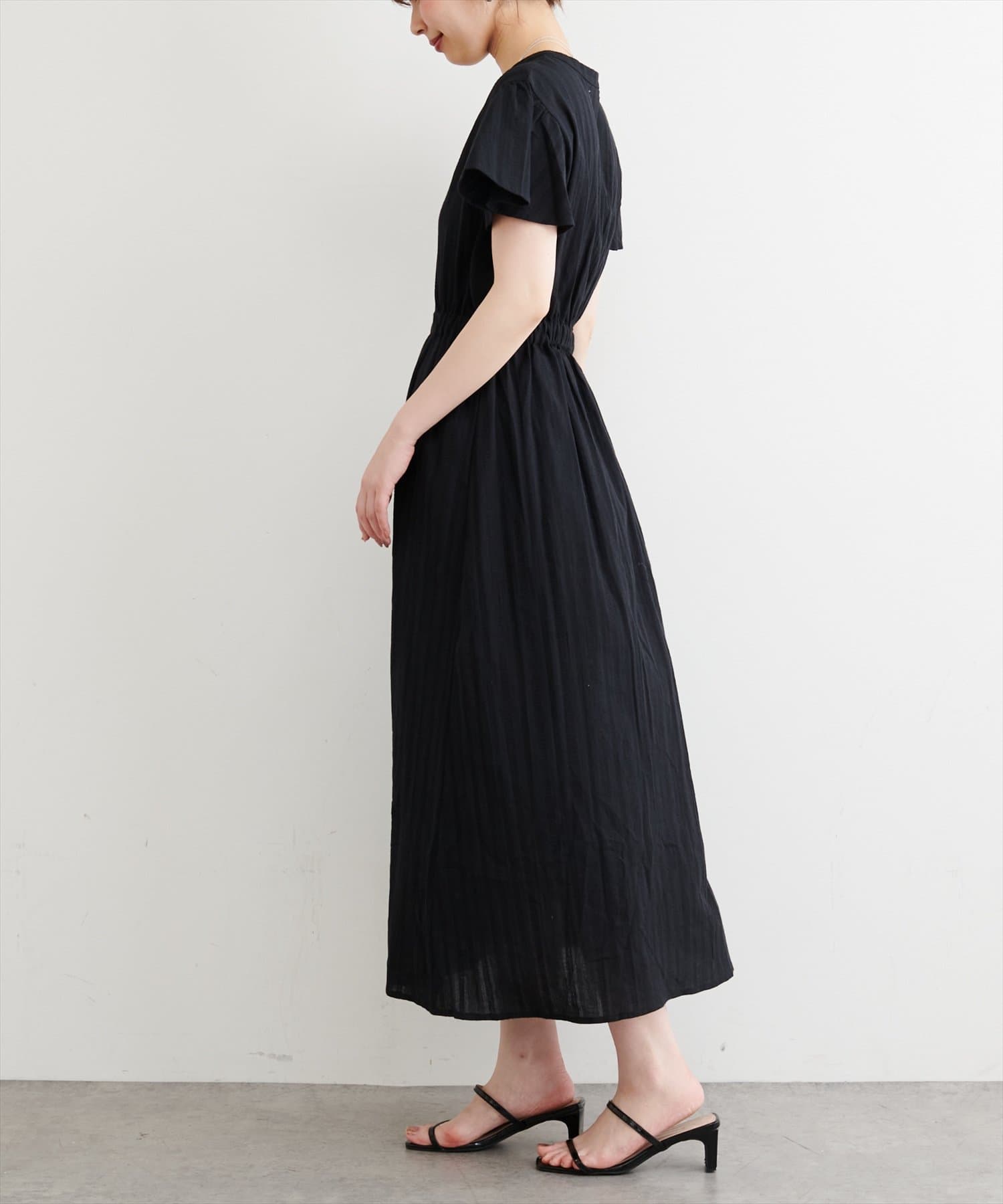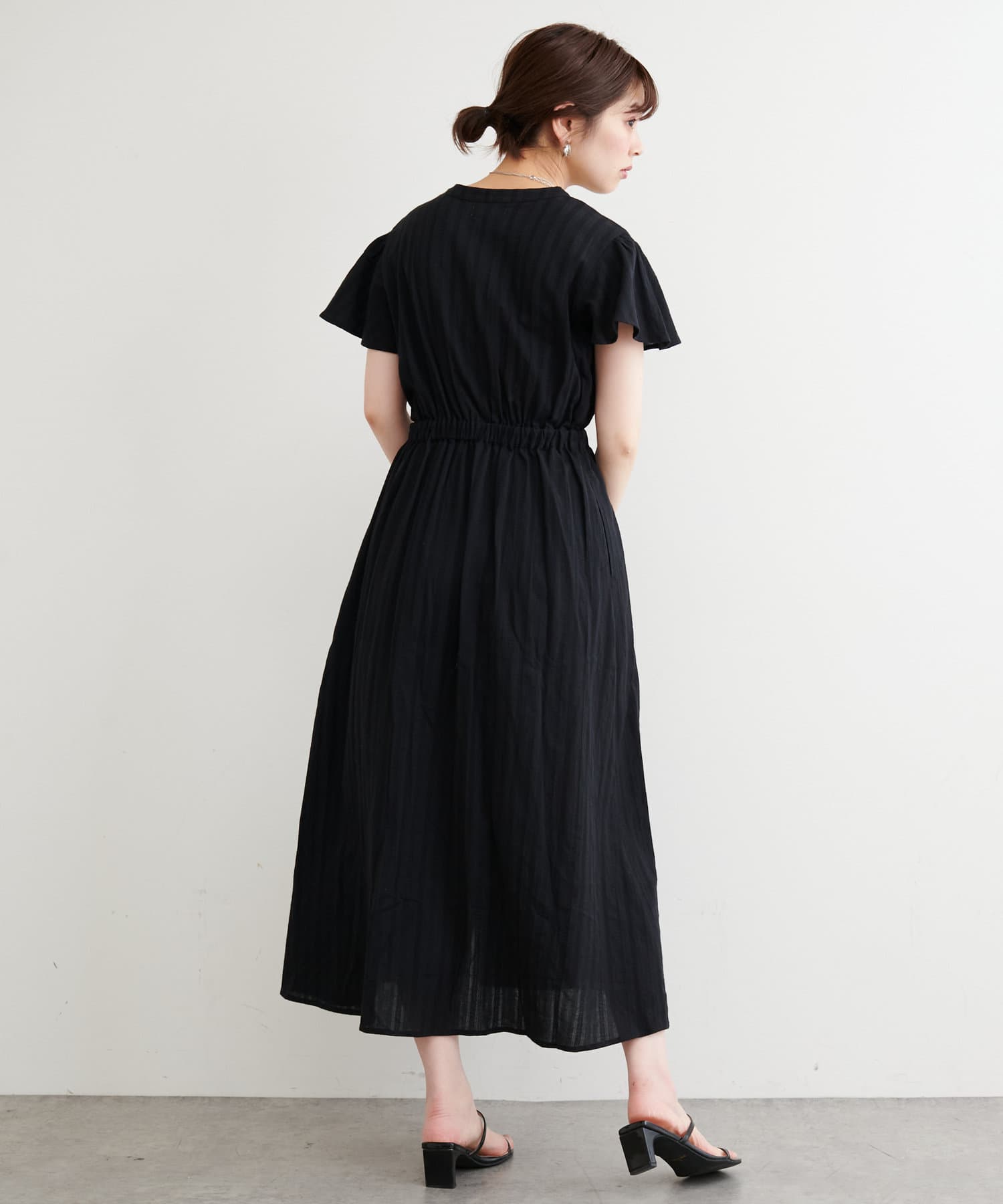 • natural couture(ナチュラルクチュール) ストライプ綿レースお上品ワンピース