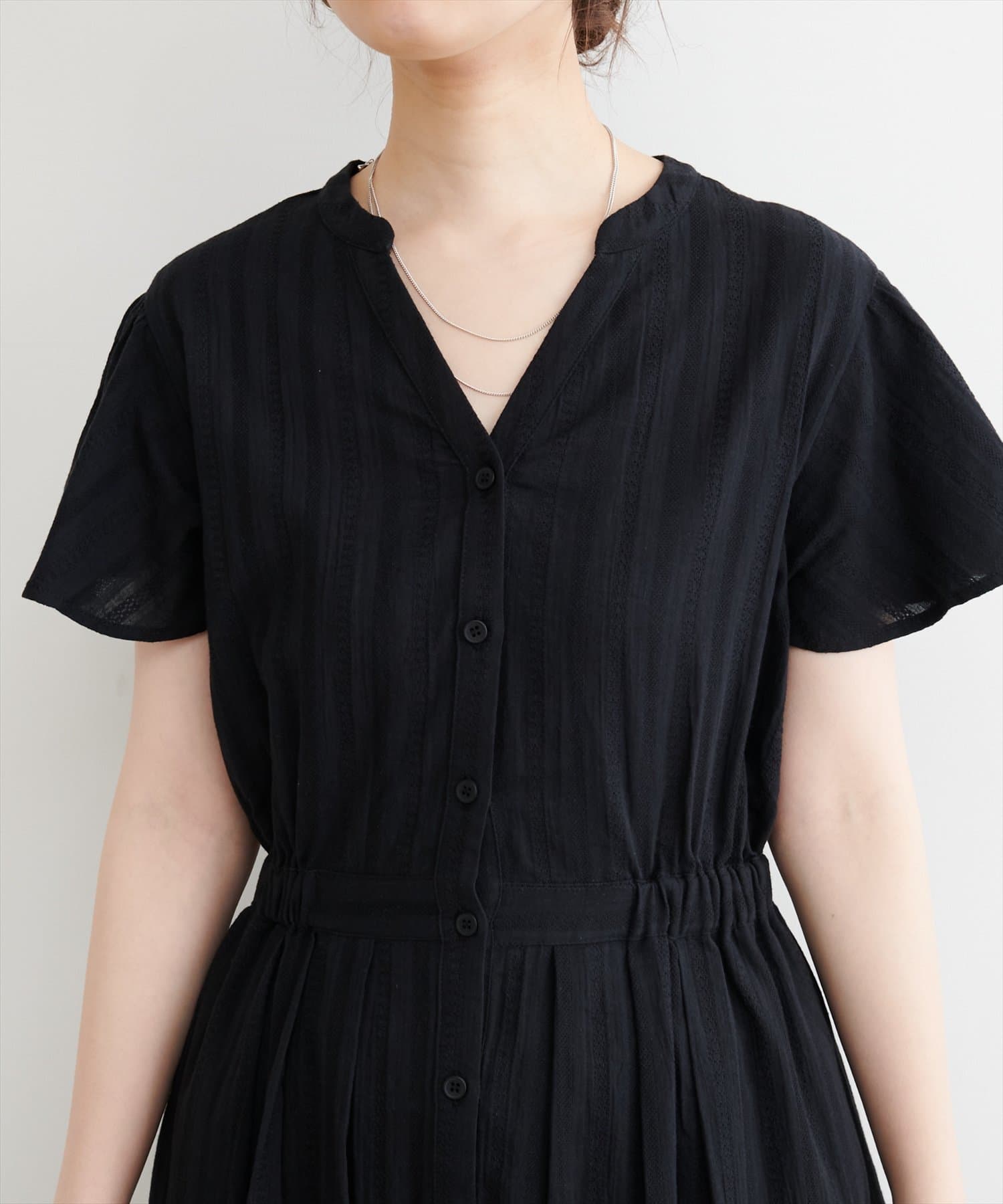 TOP > natural couture > レディース > ワンピース > ワンピース > ストライプ綿レースお上品ワンピース