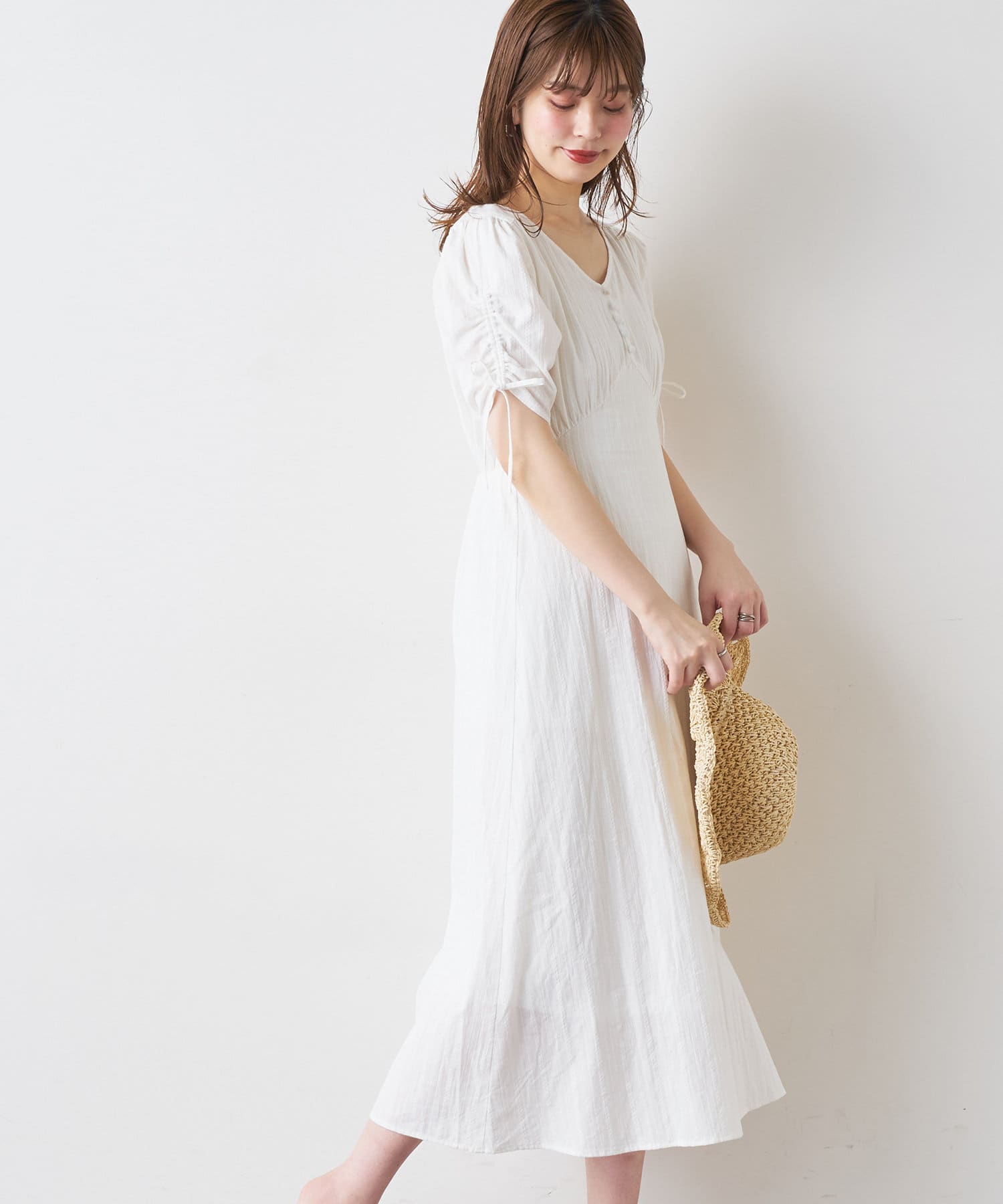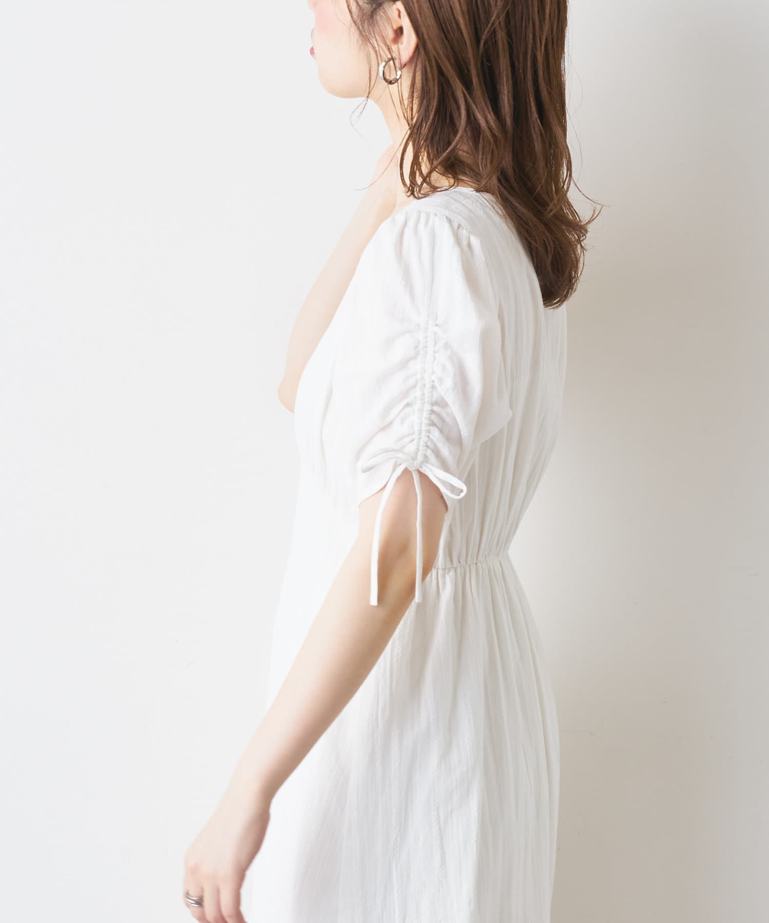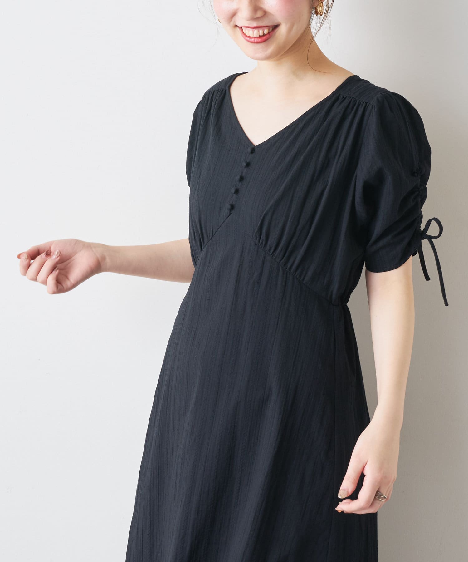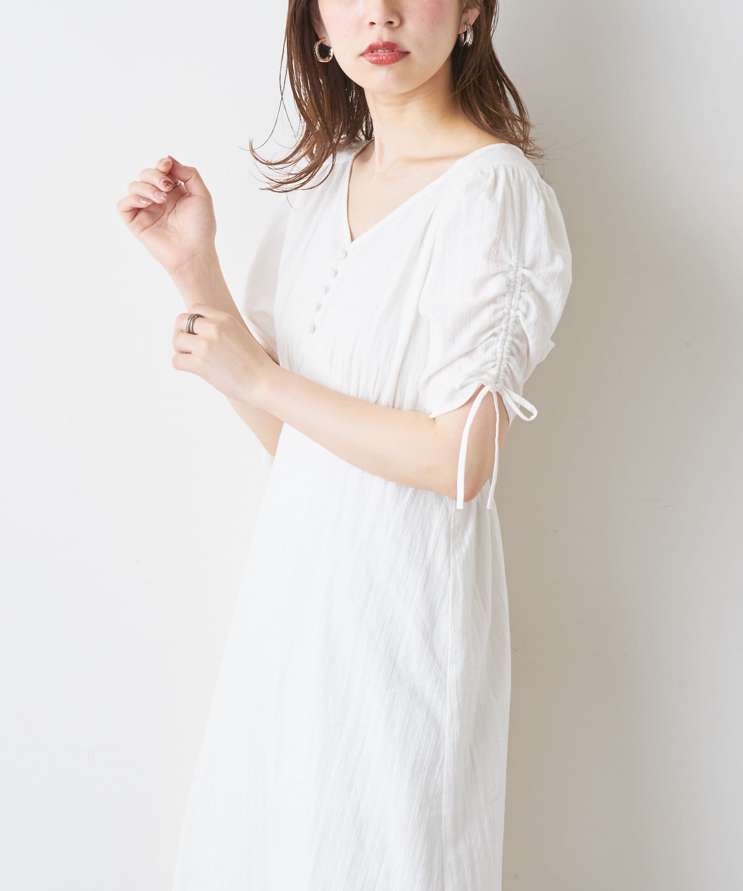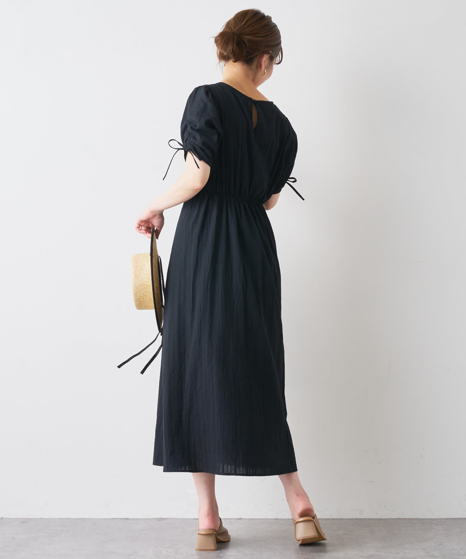 • natural couture(ナチュラルクチュール) 【WEB限定】袖くしゅリボンスッキリAラインワンピース