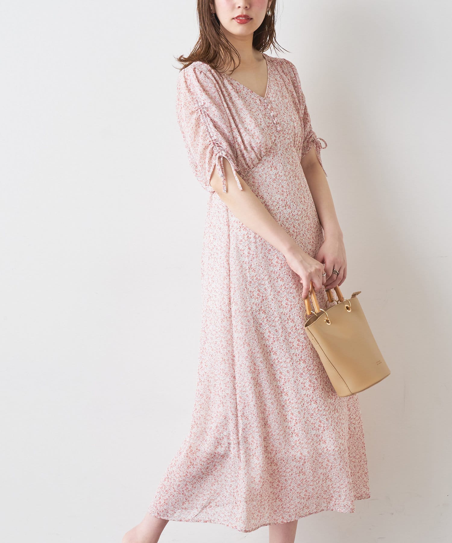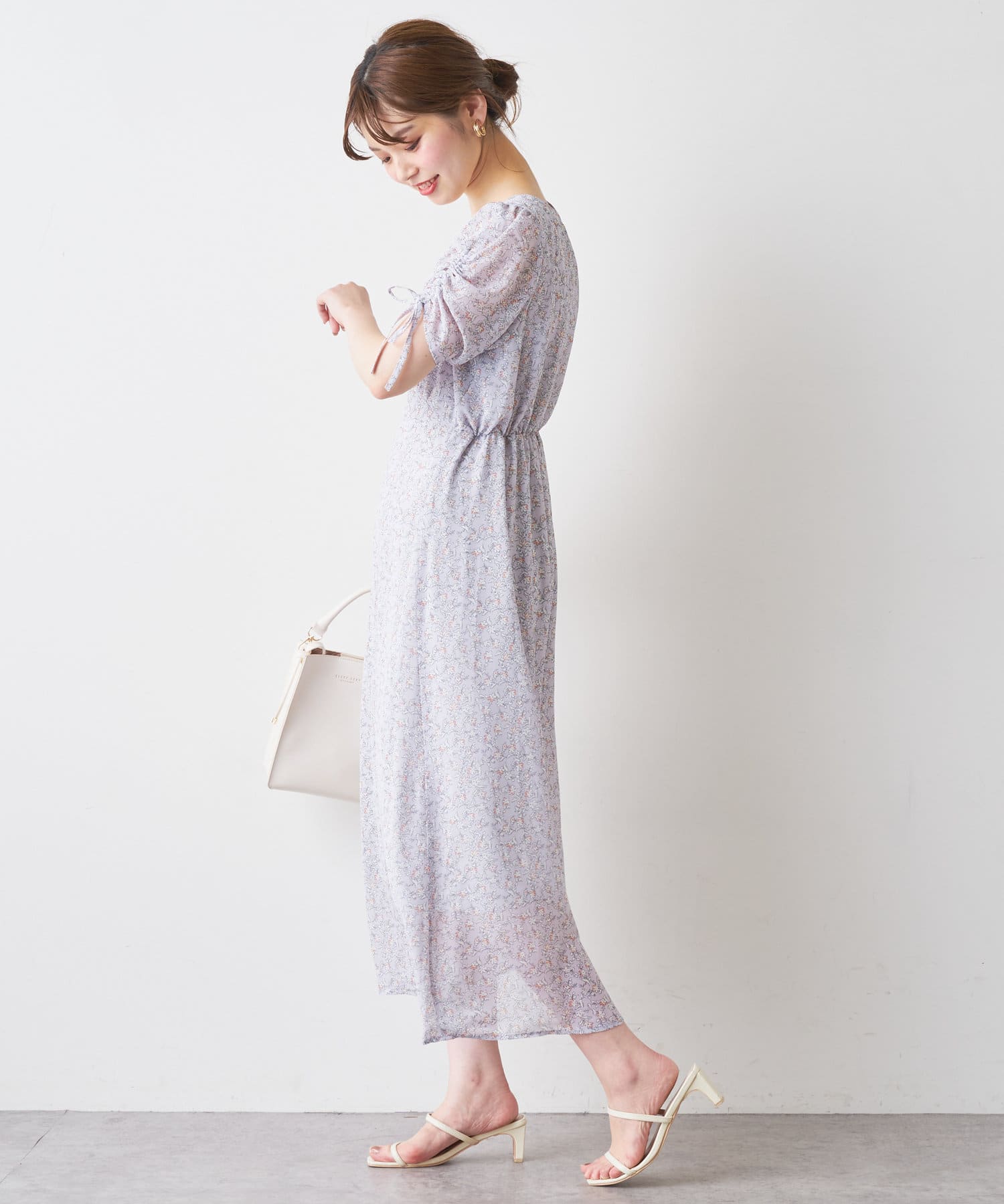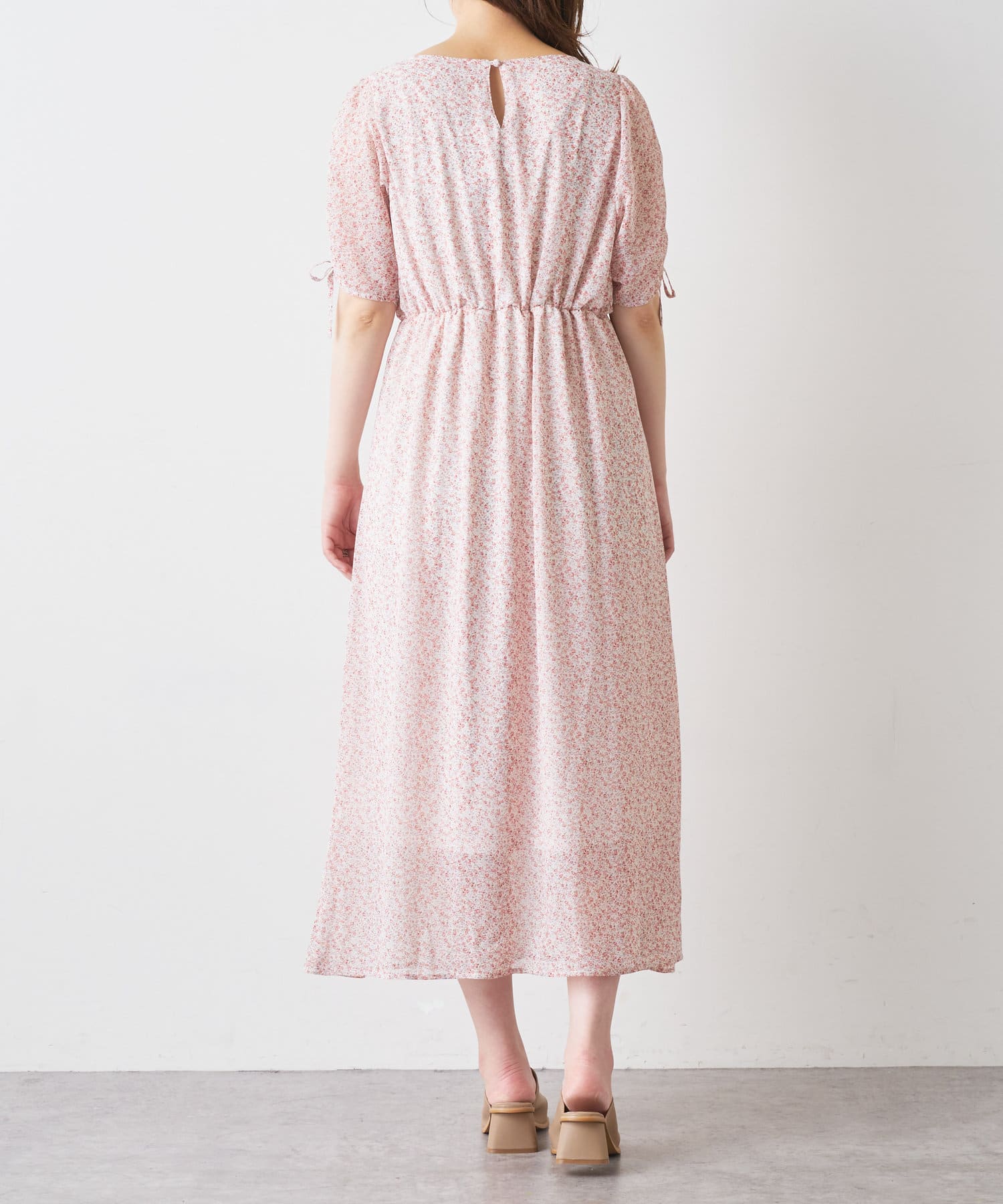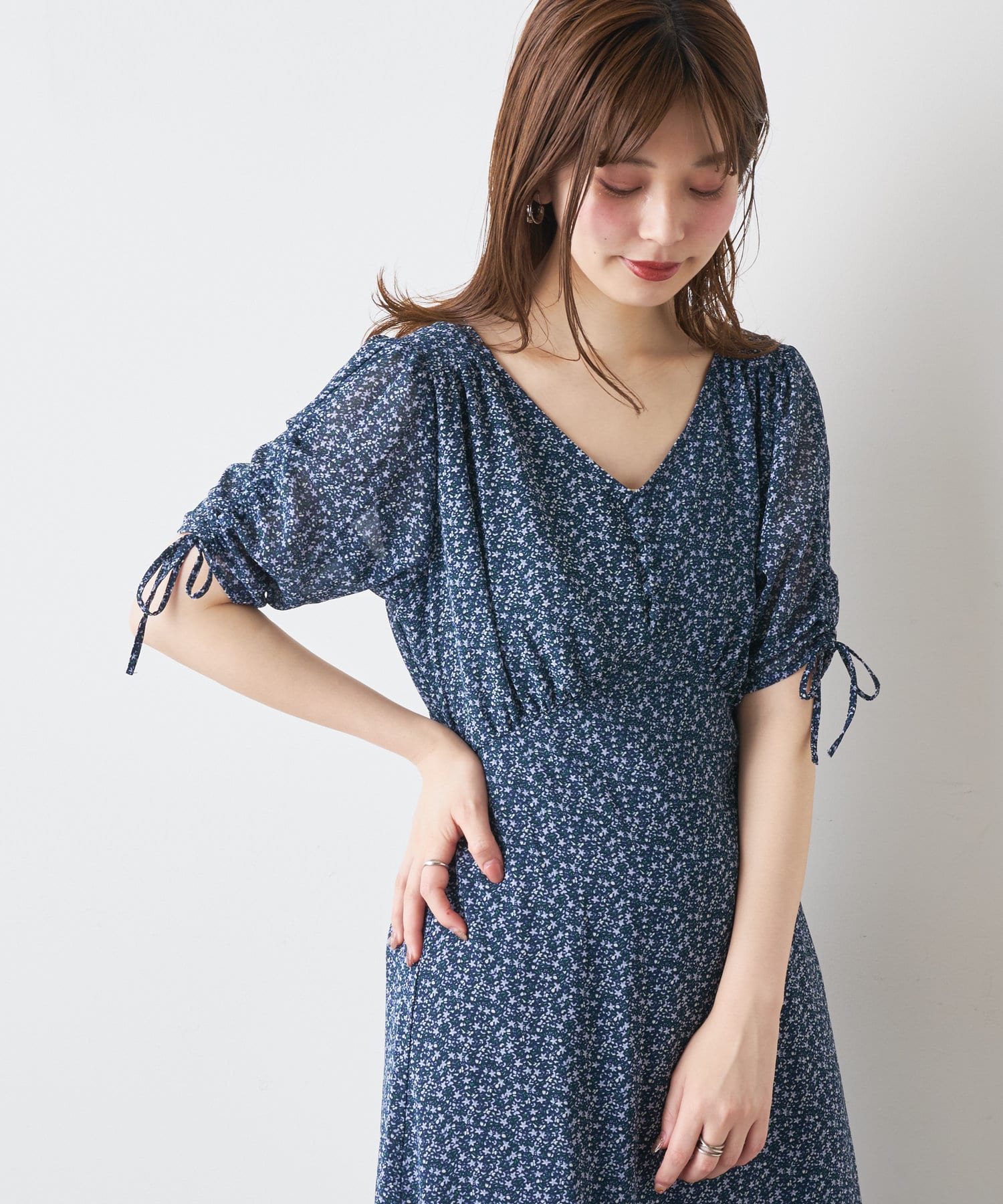• natural couture(ナチュラルクチュール) 【WEB限定】袖くしゅリボンスッキリAラインワンピース