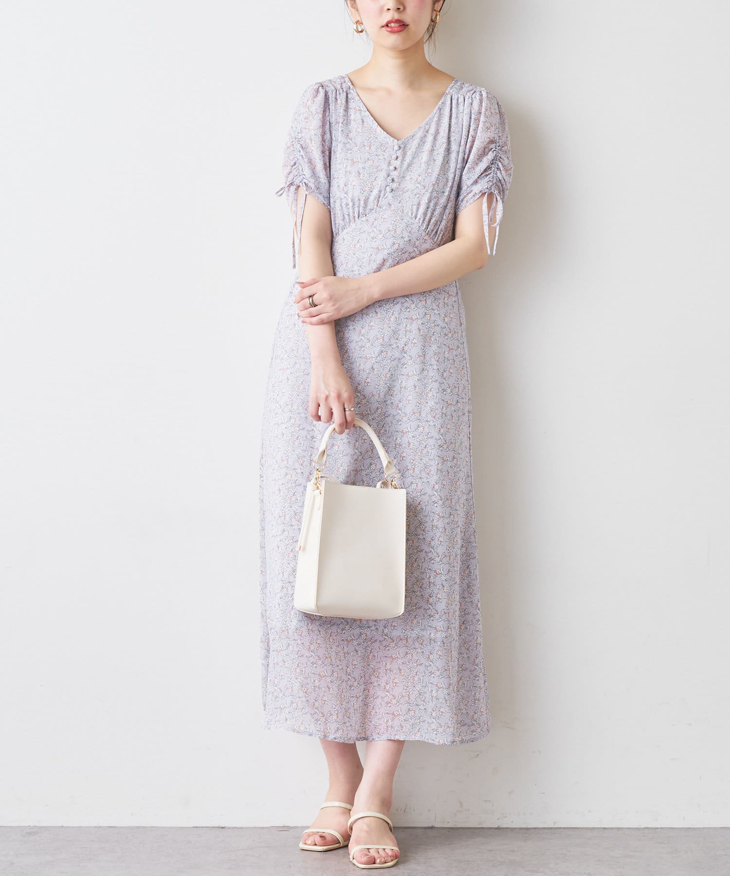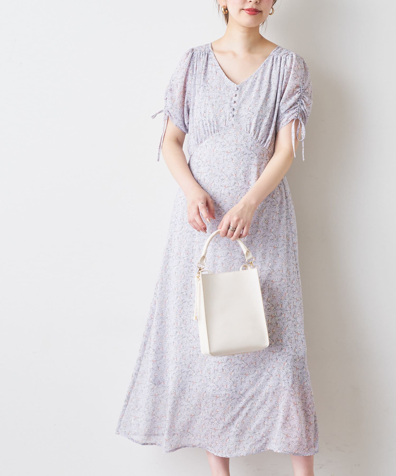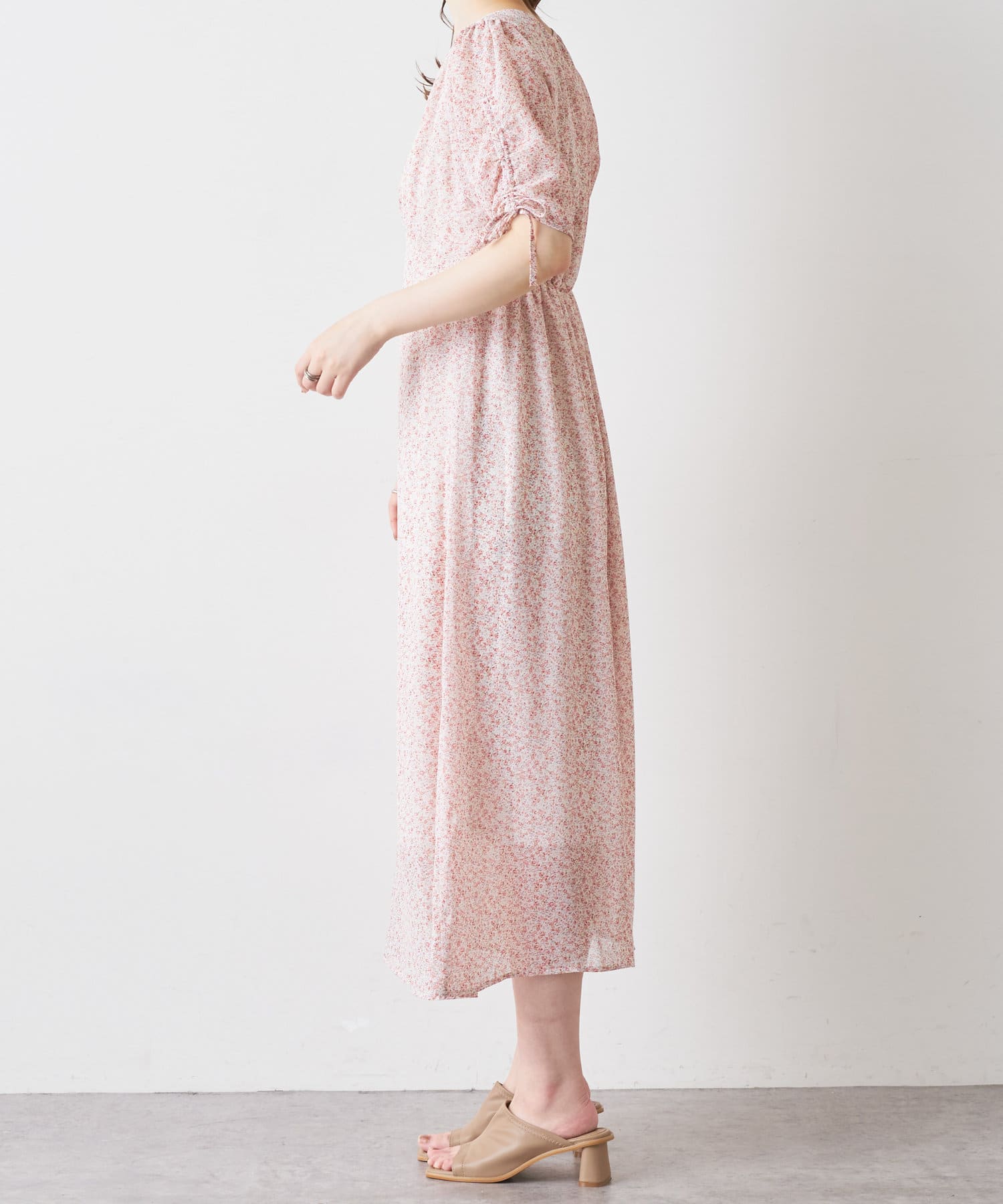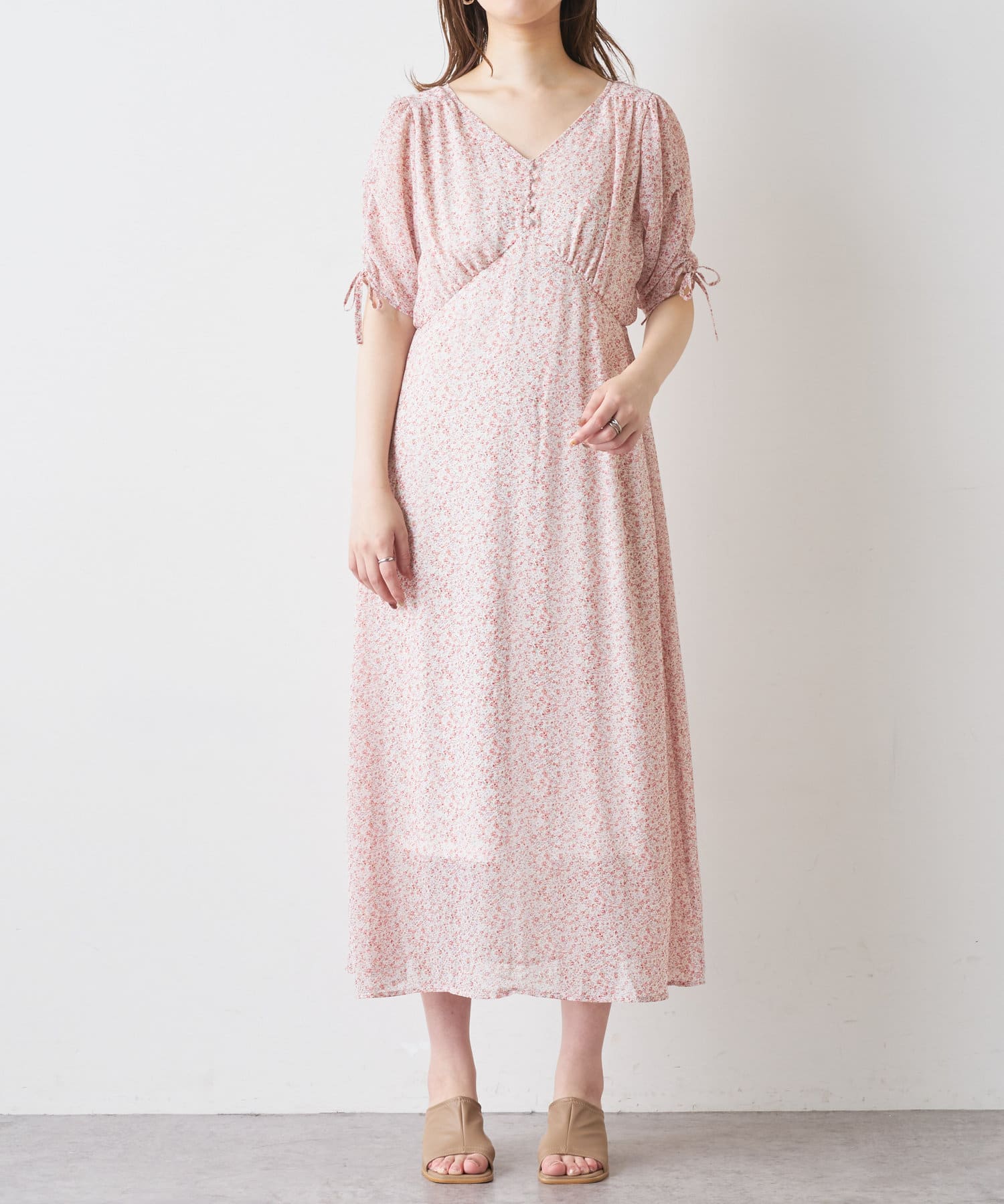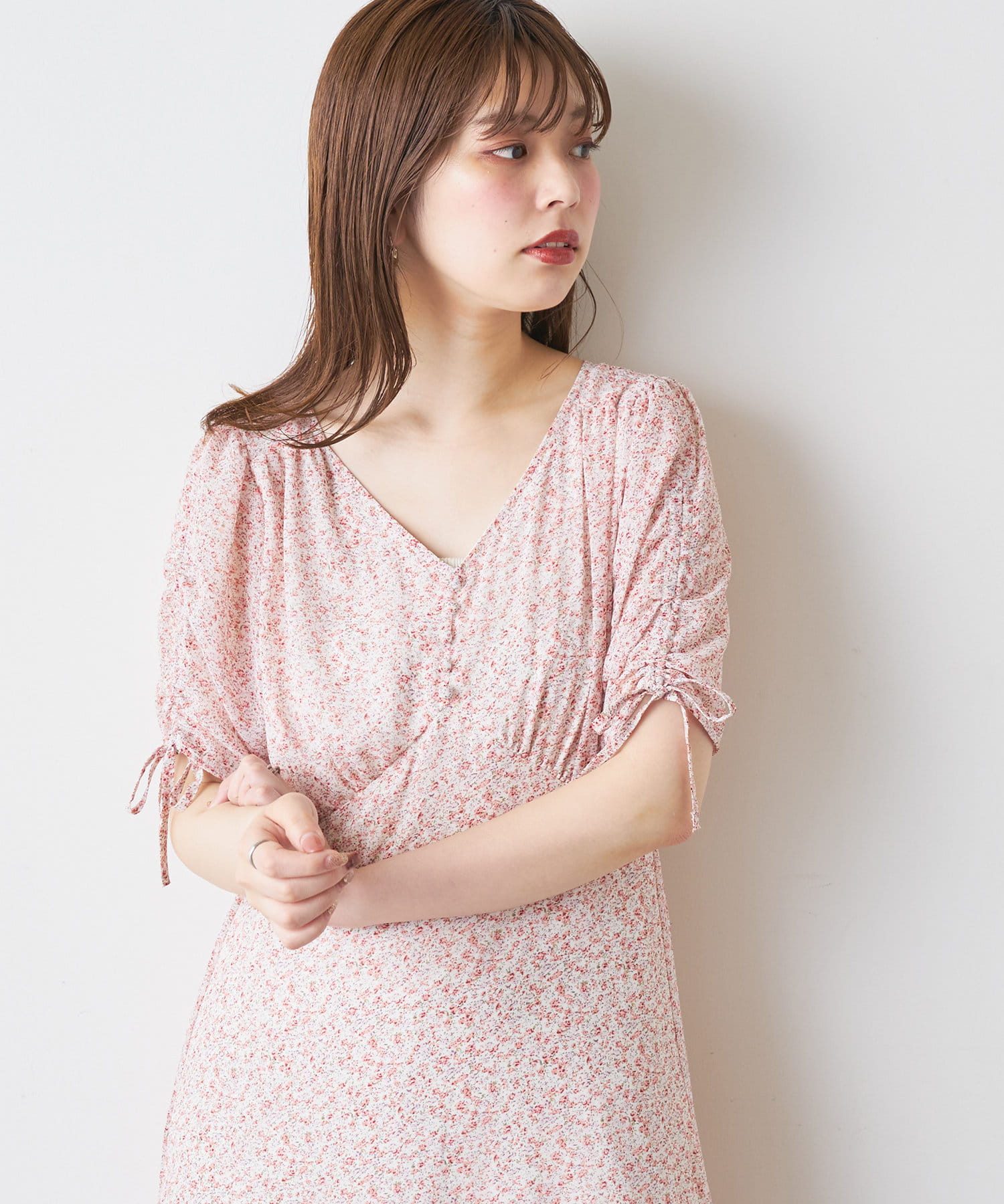 • natural couture(ナチュラルクチュール) 【WEB限定】袖くしゅリボンスッキリAラインワンピース