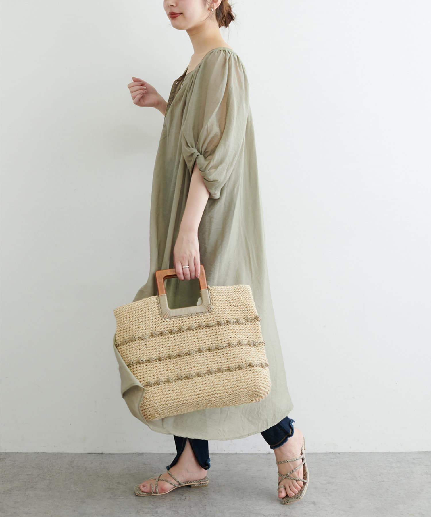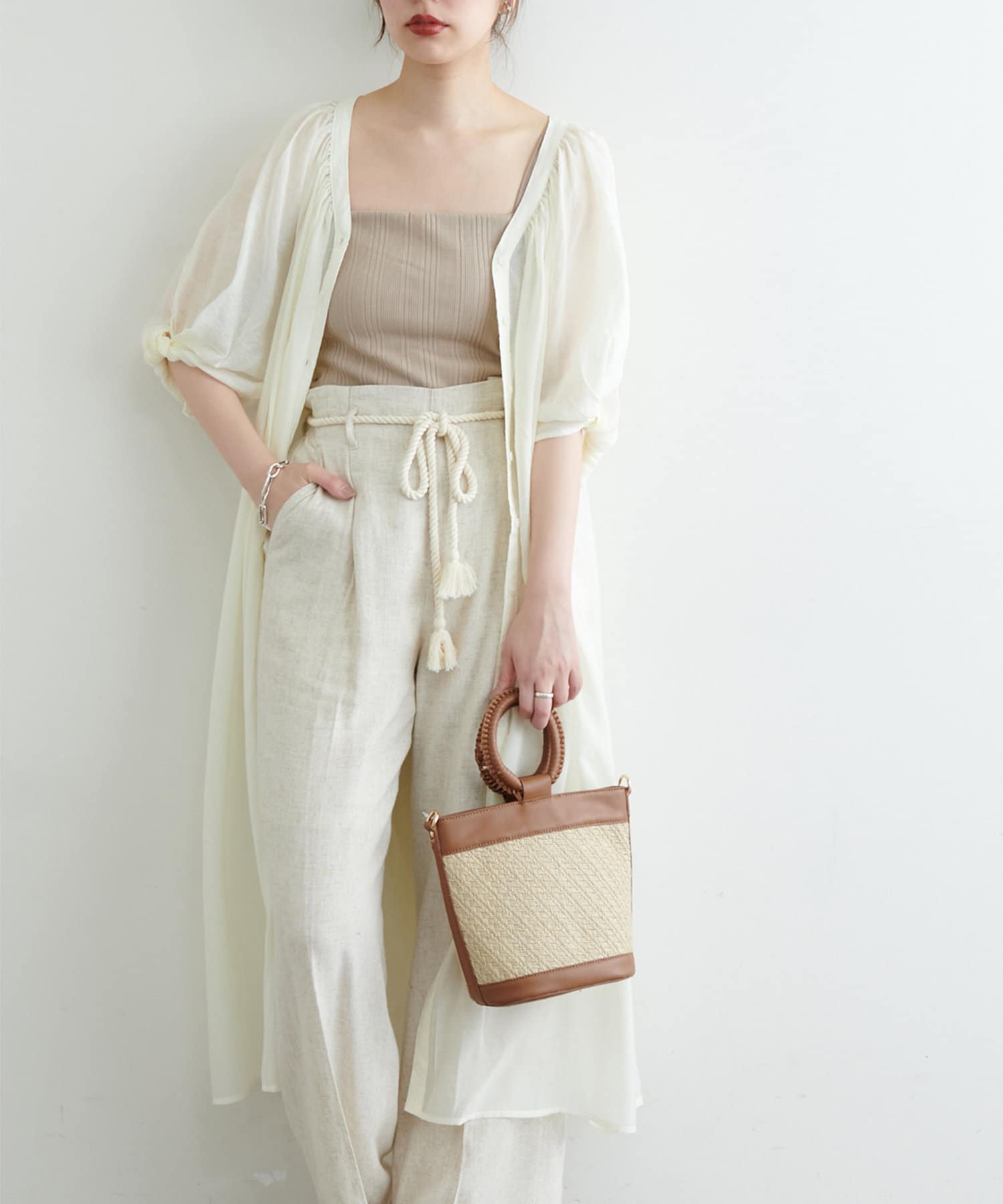 後ろを前にしてウエストマークするスタイリングもオススメです。