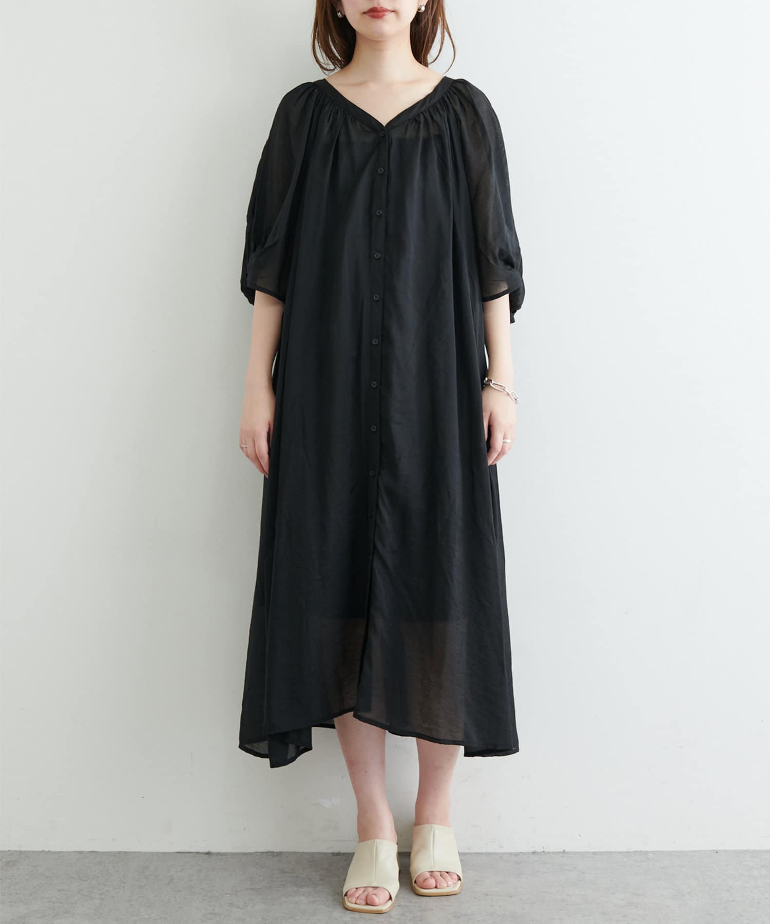 パフスリーブで気になる二の腕もカバーしてくれます。