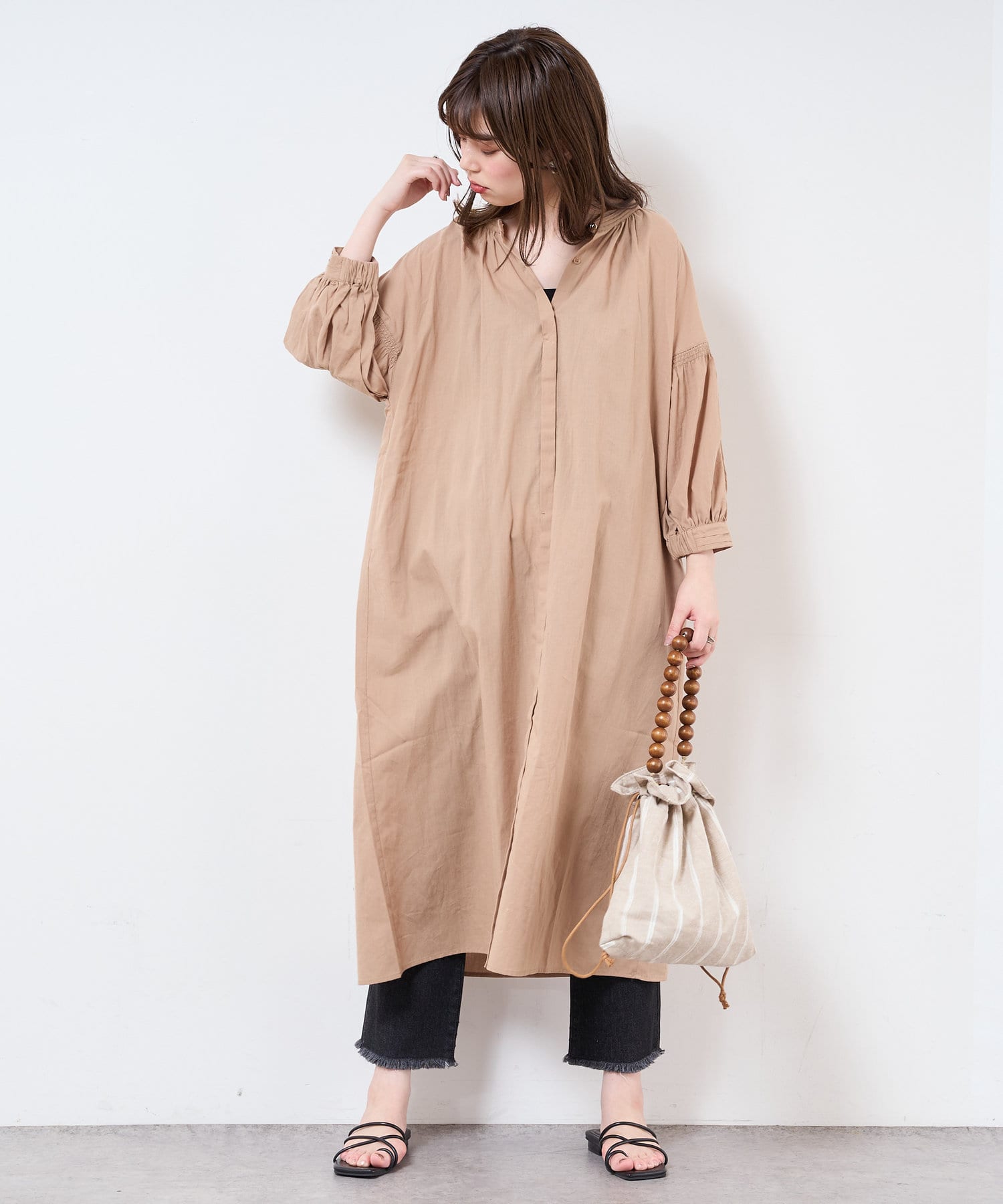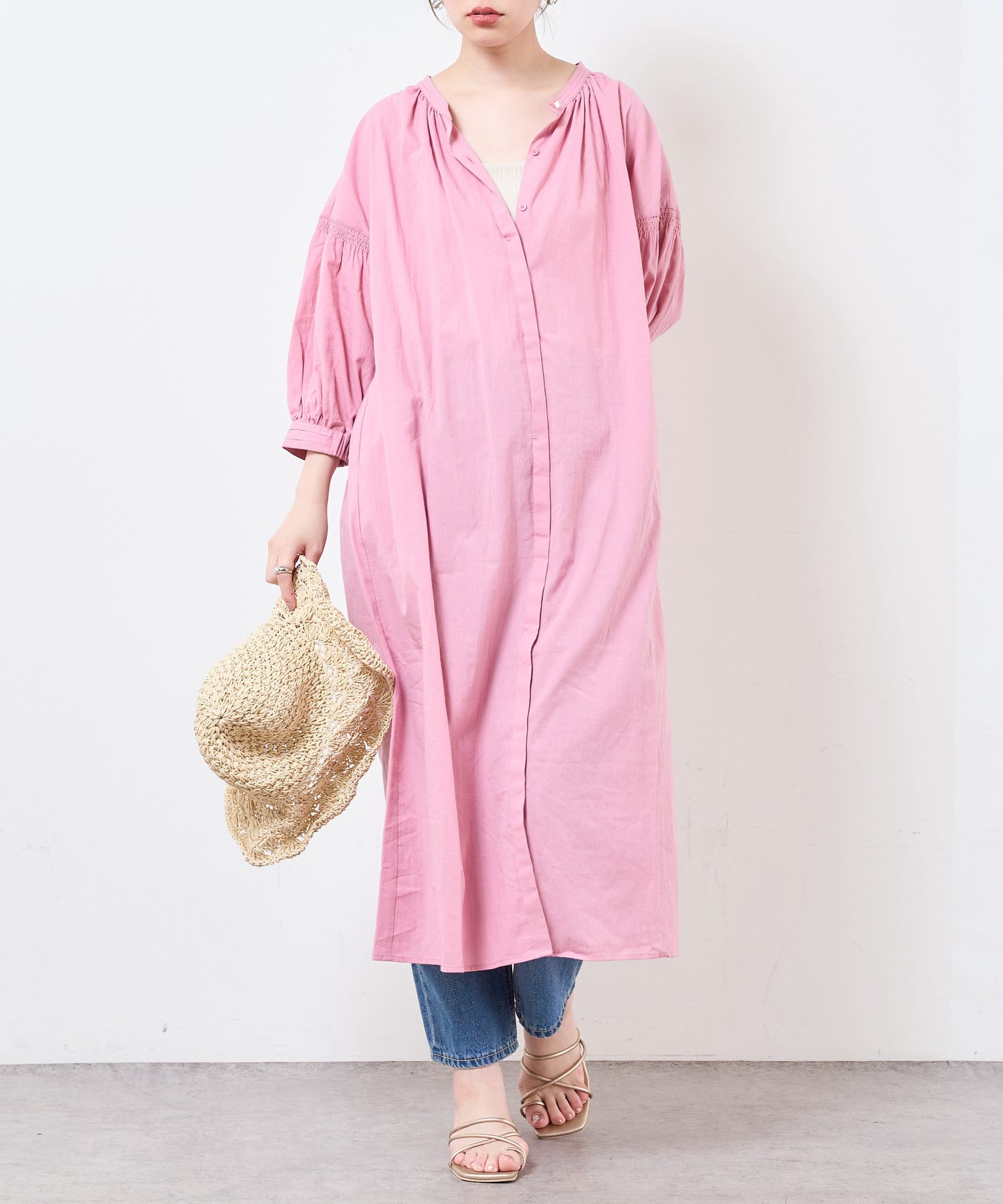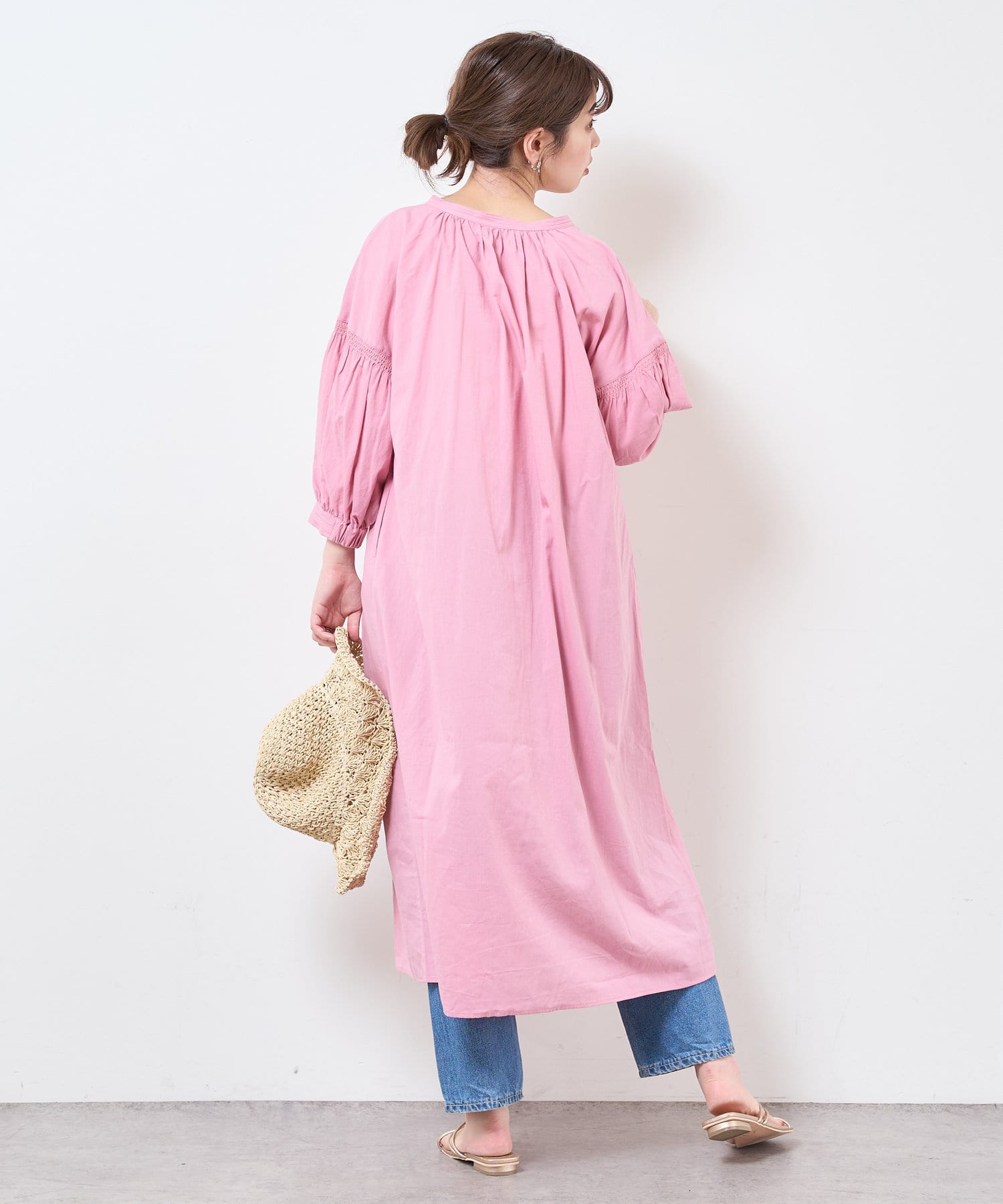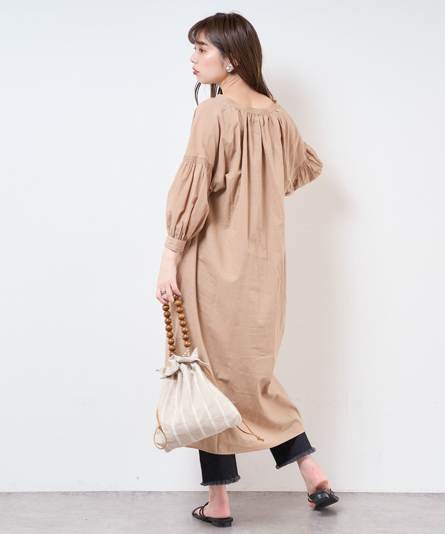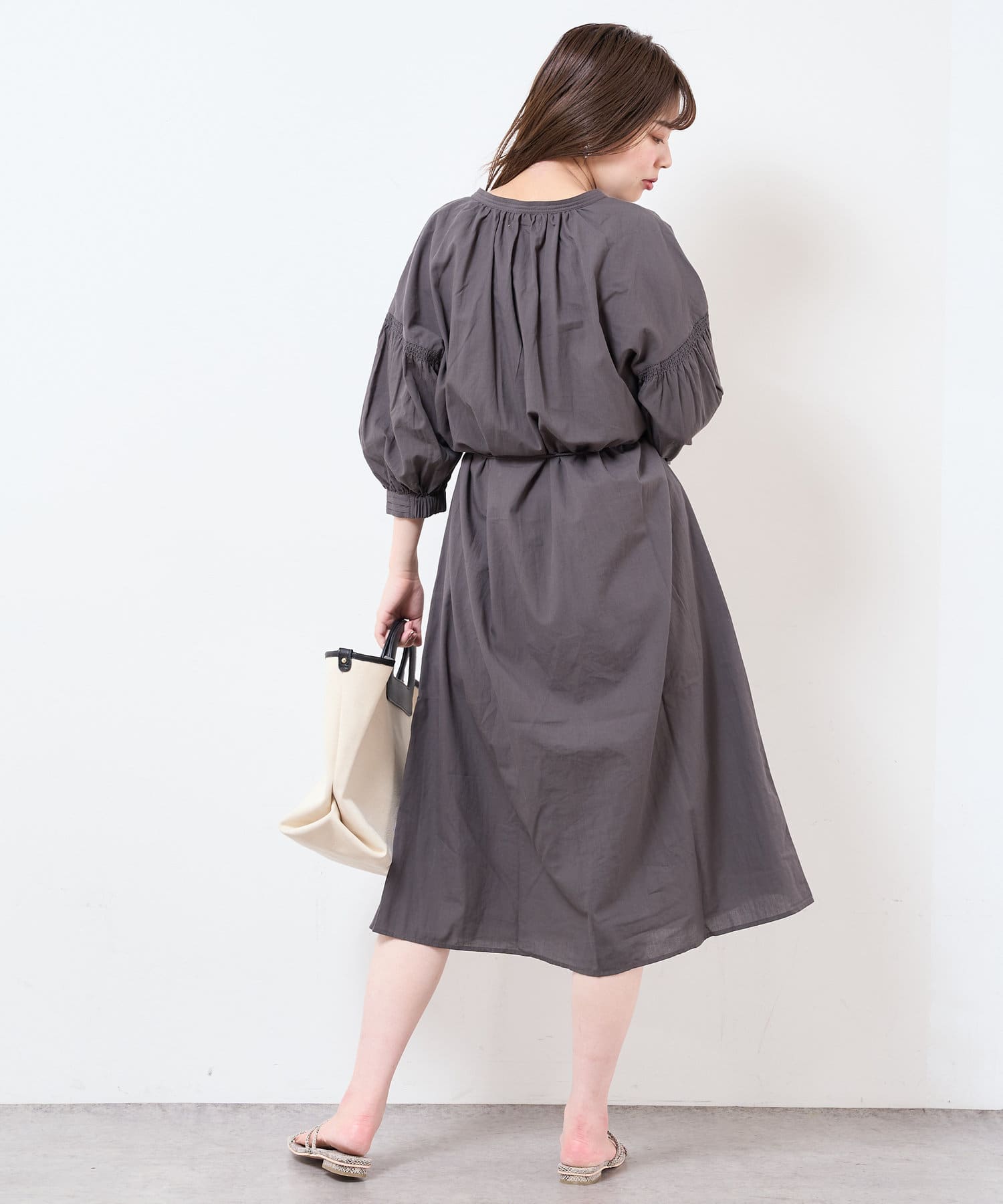 【サスティナブル素材】オーガニックコットンたっぷりギャザーおしゃれワンピース