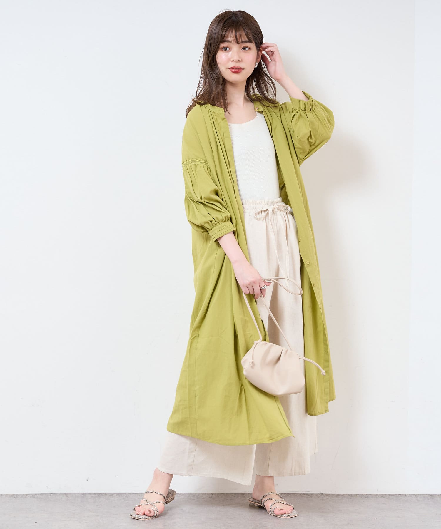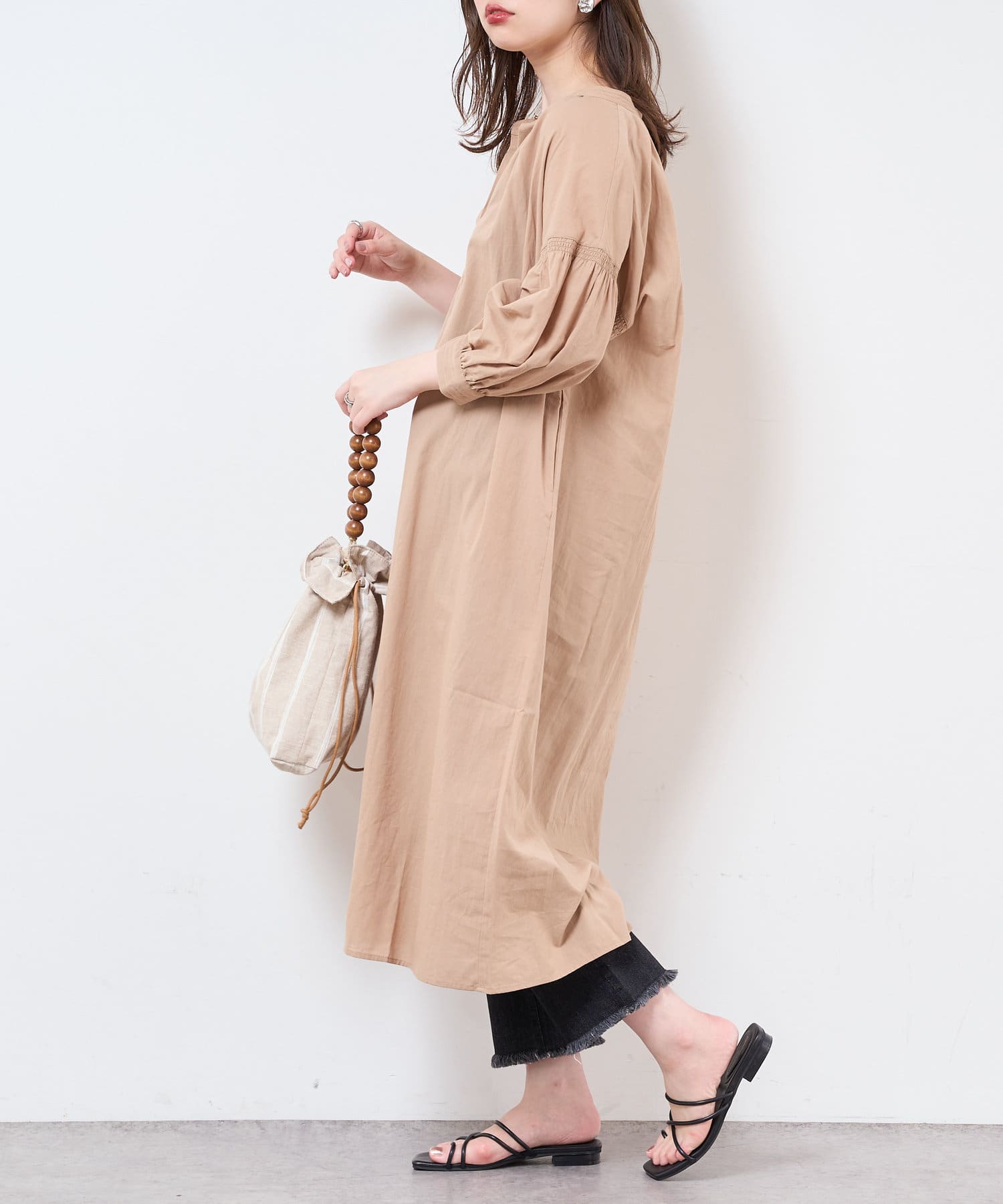 1枚でさらっと着れるデザインのワンピース。