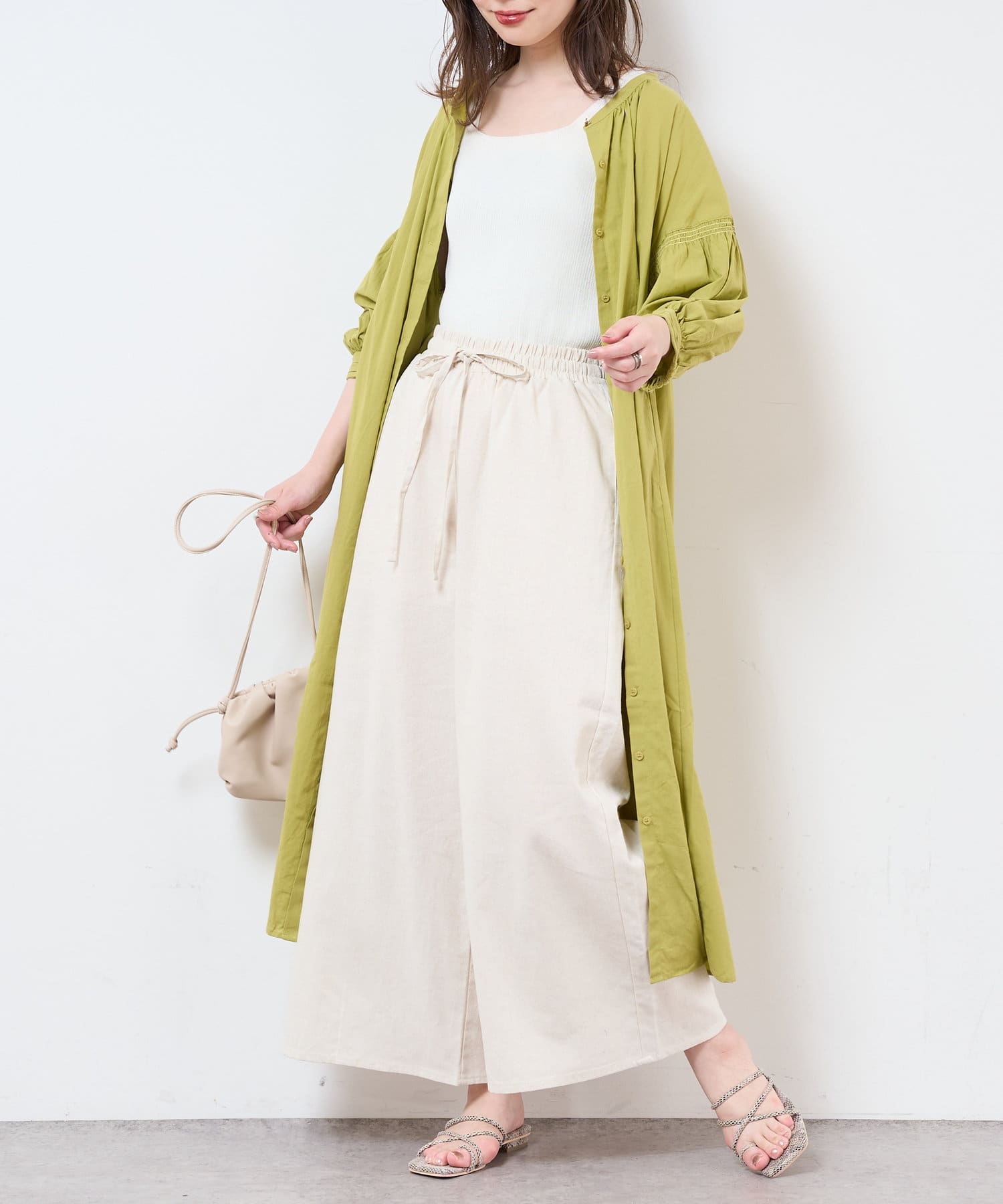 ウエスト部分は付属の紐でウエストマークをしてお召し頂けます。