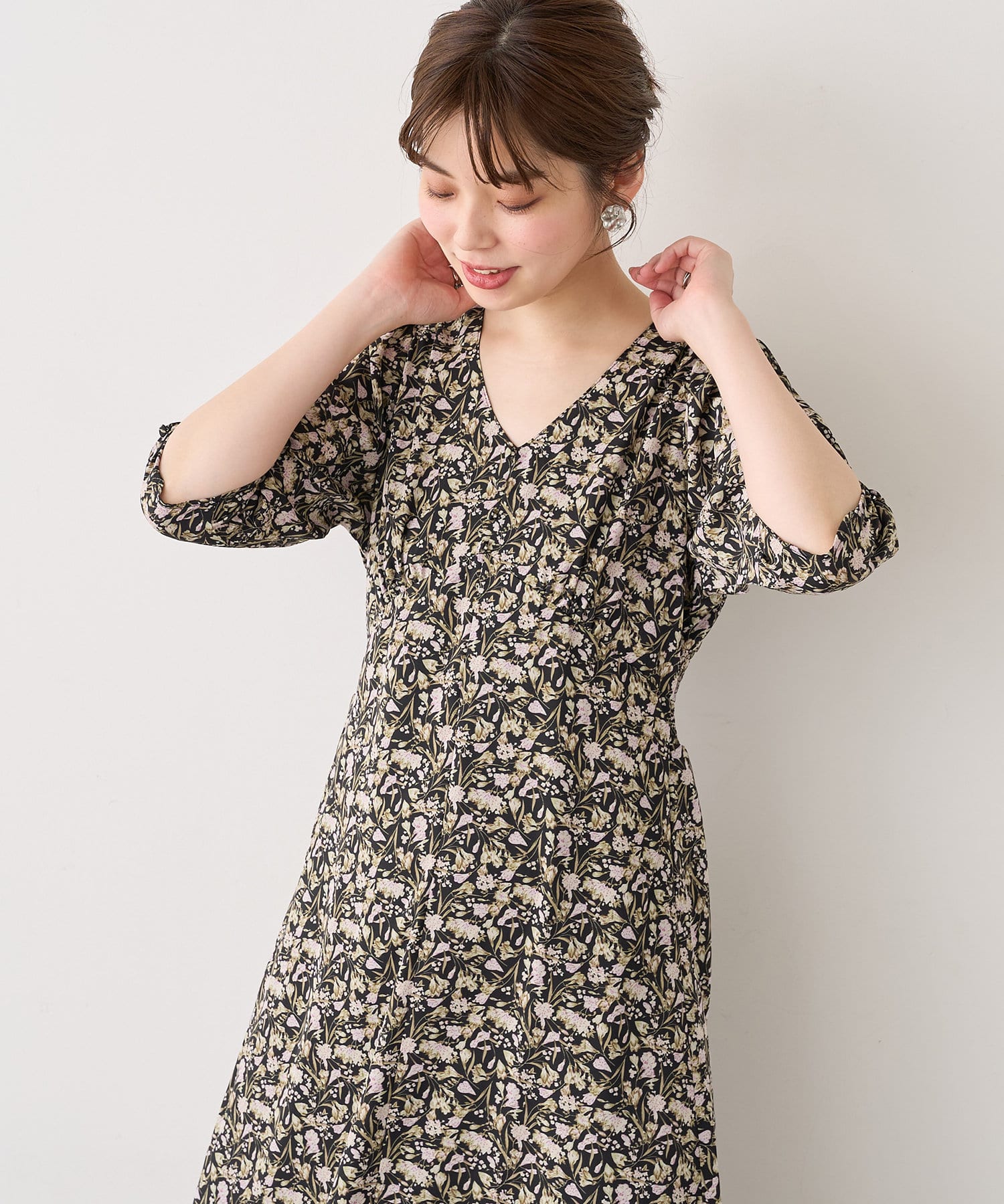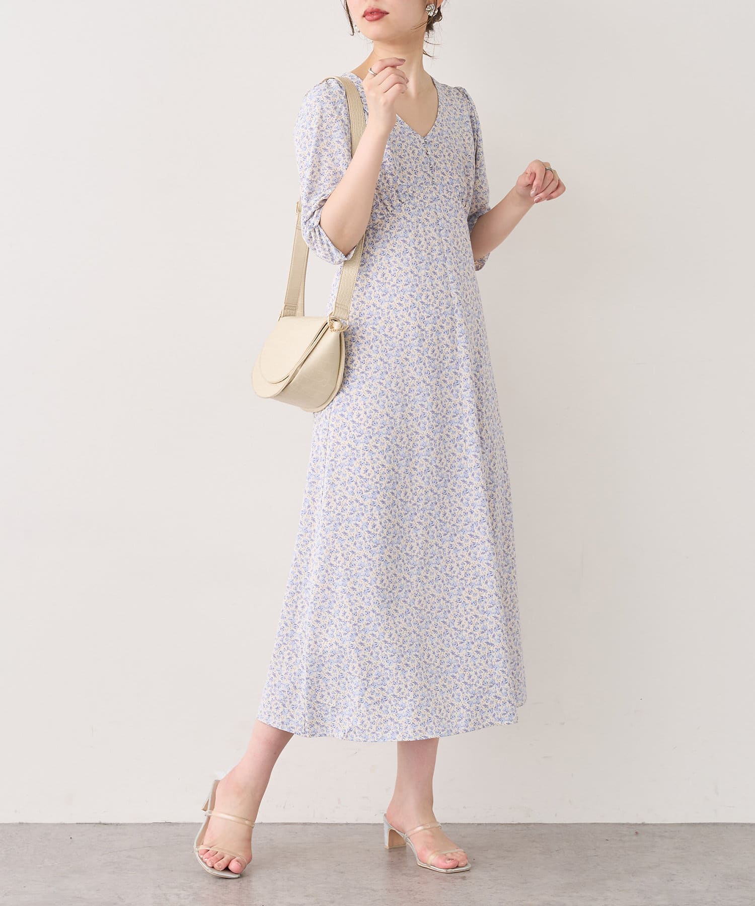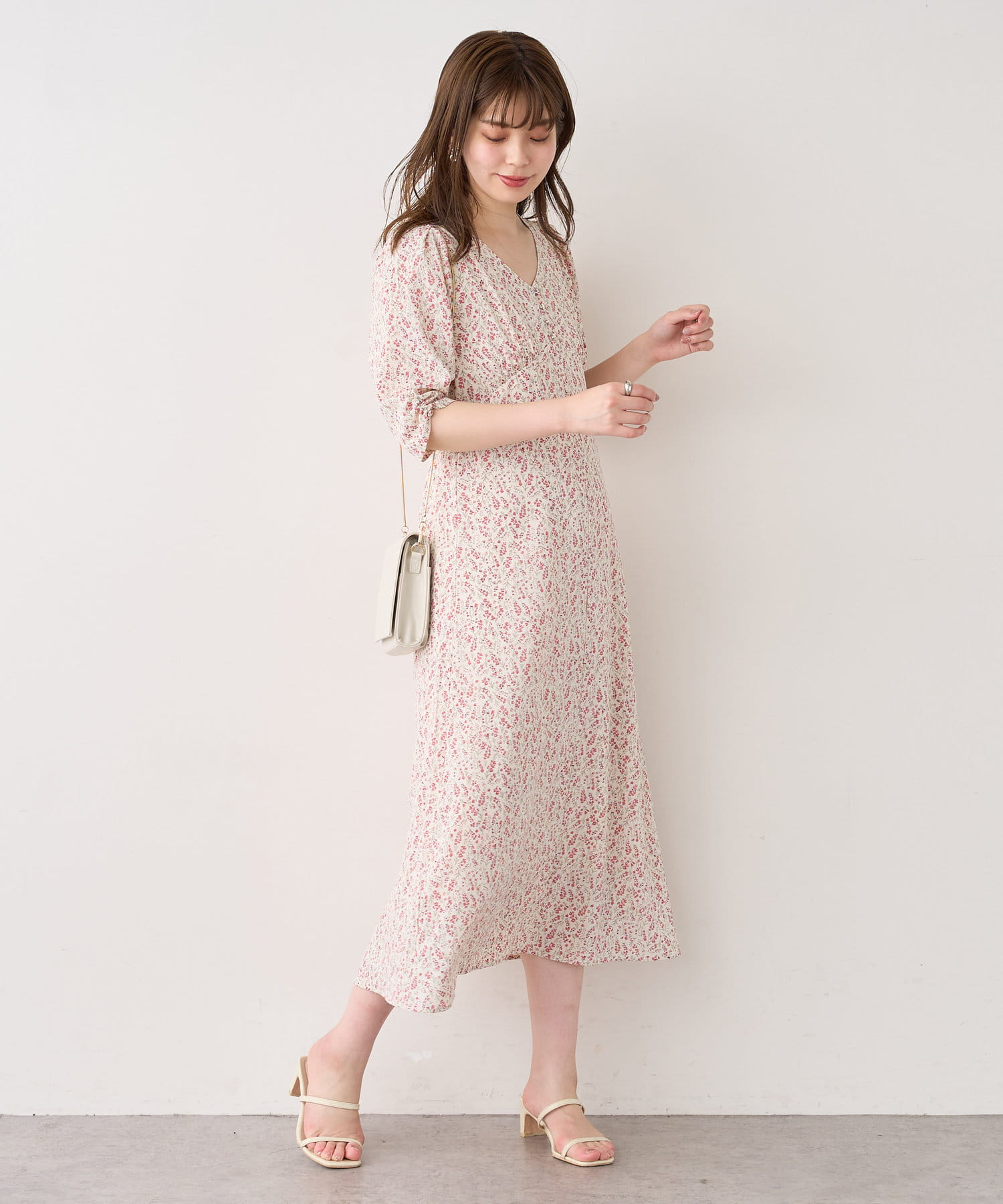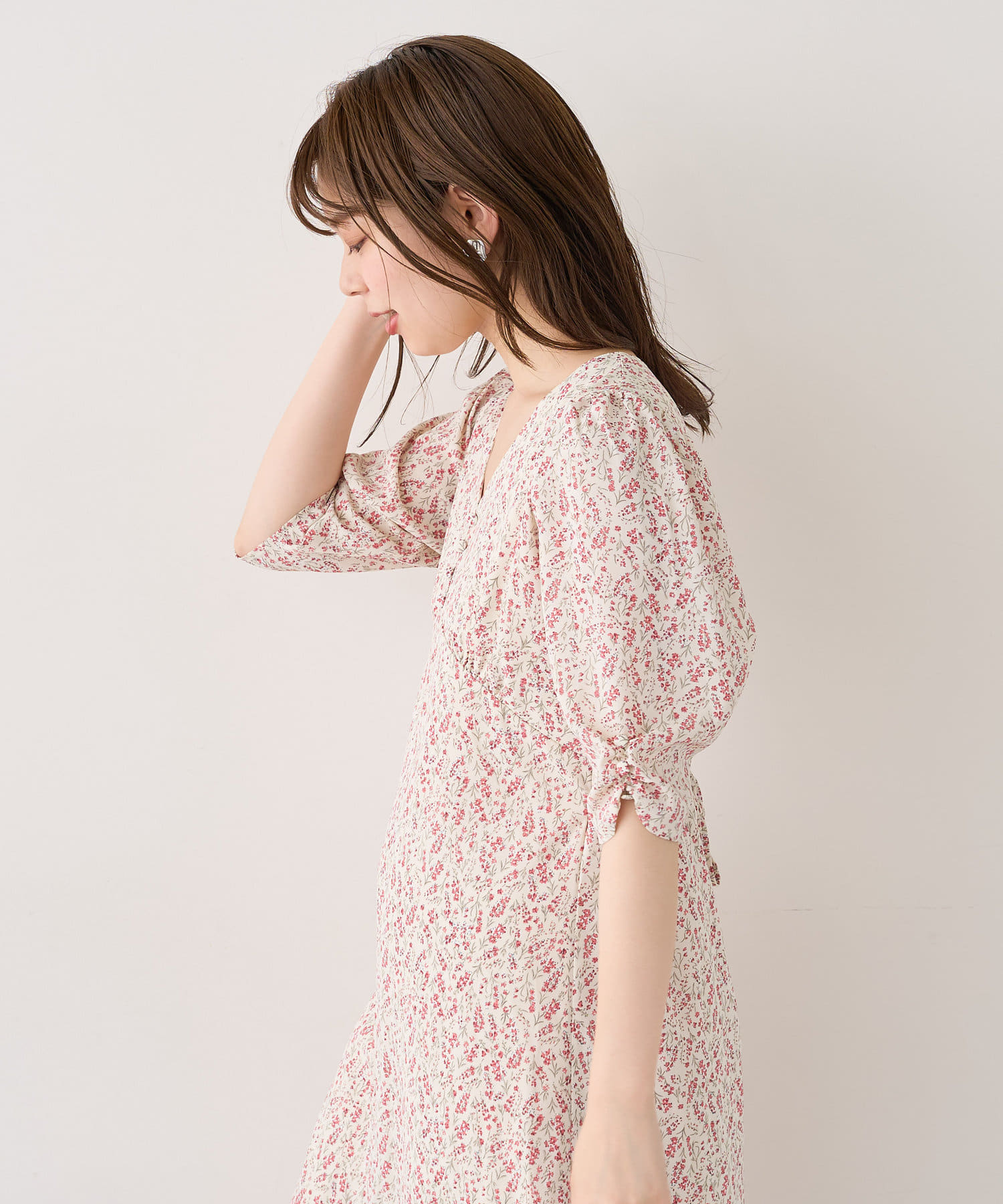 軽やかに揺れるフレアスリーブとスカートが女性らしさを醸しだし、