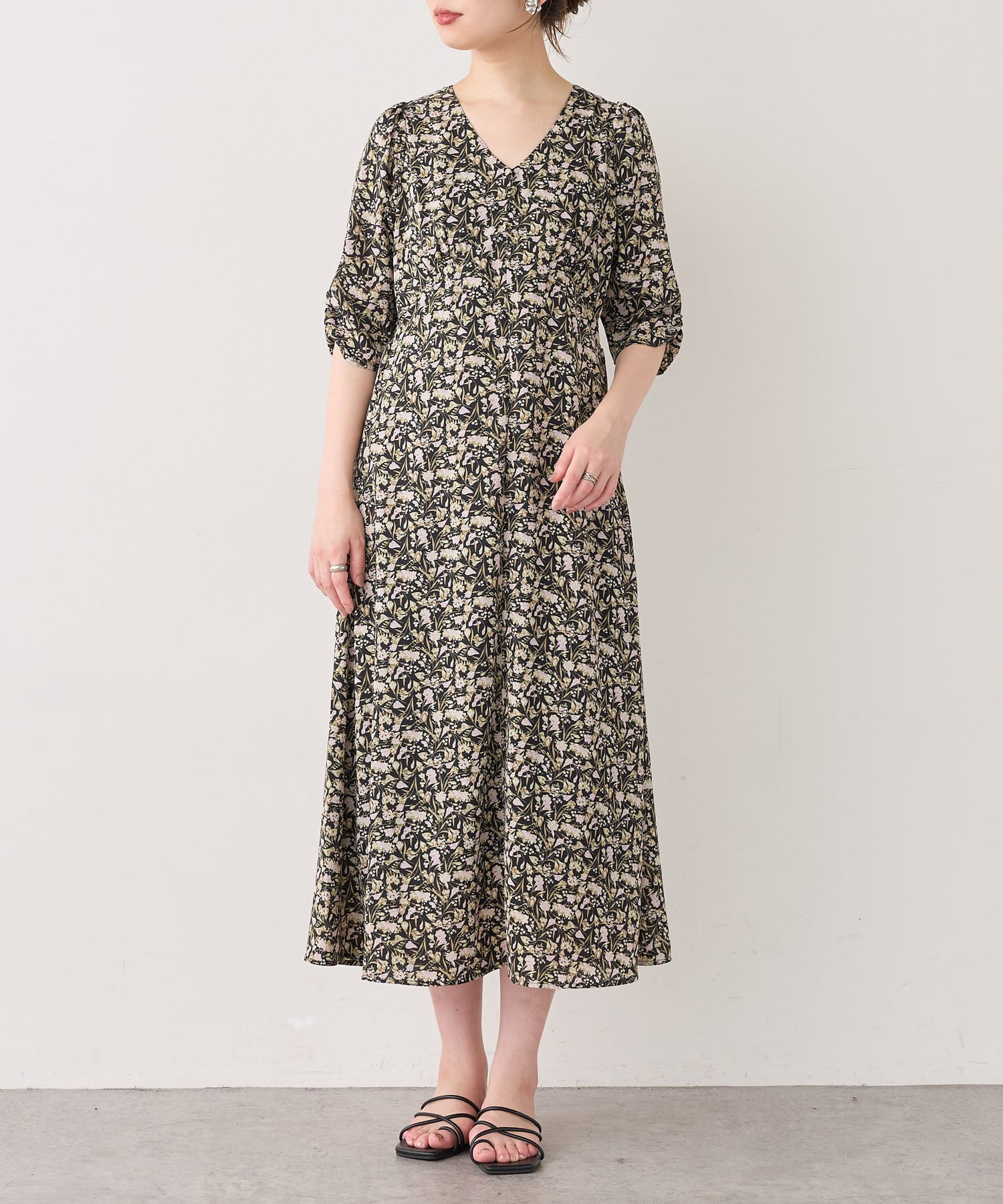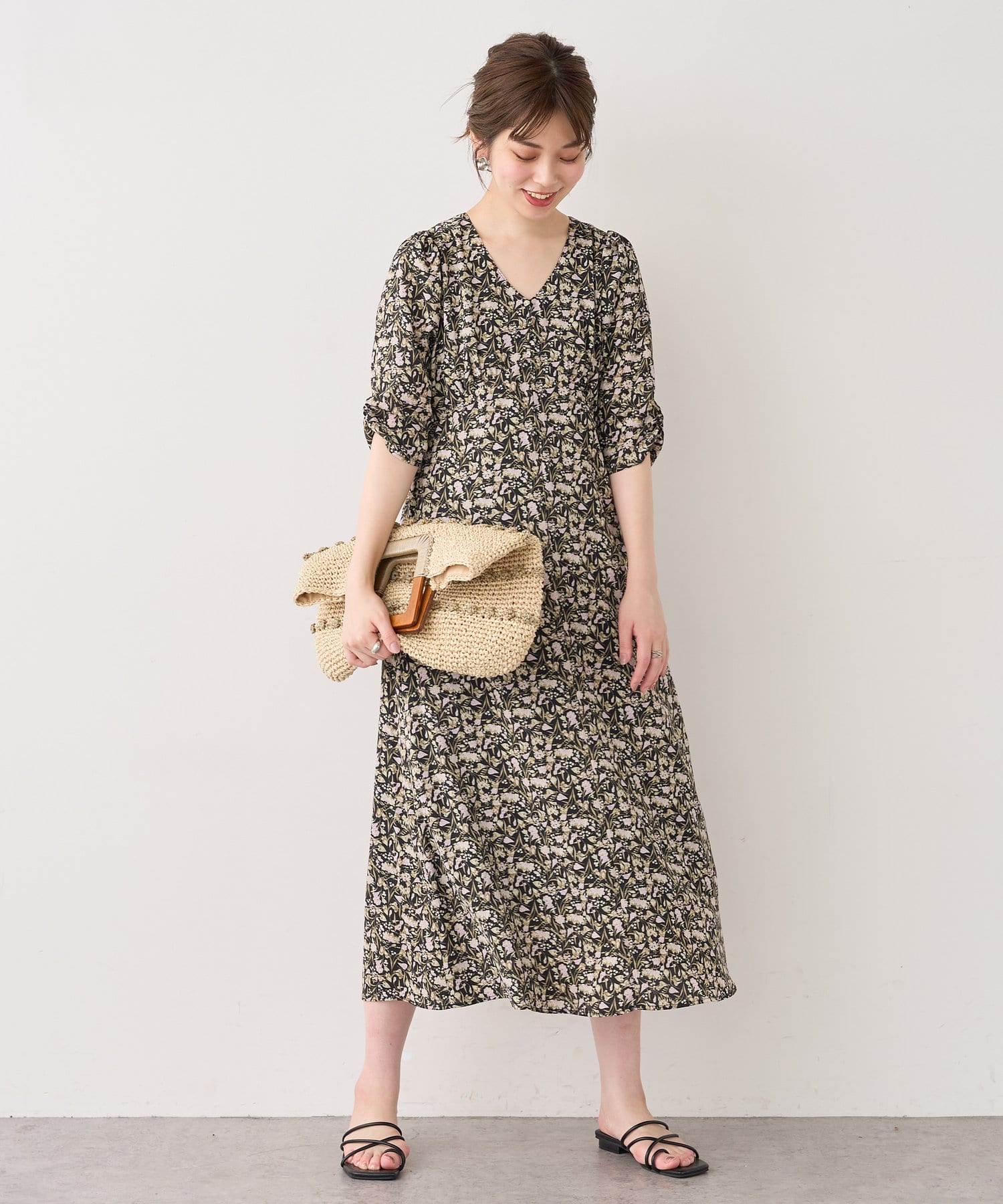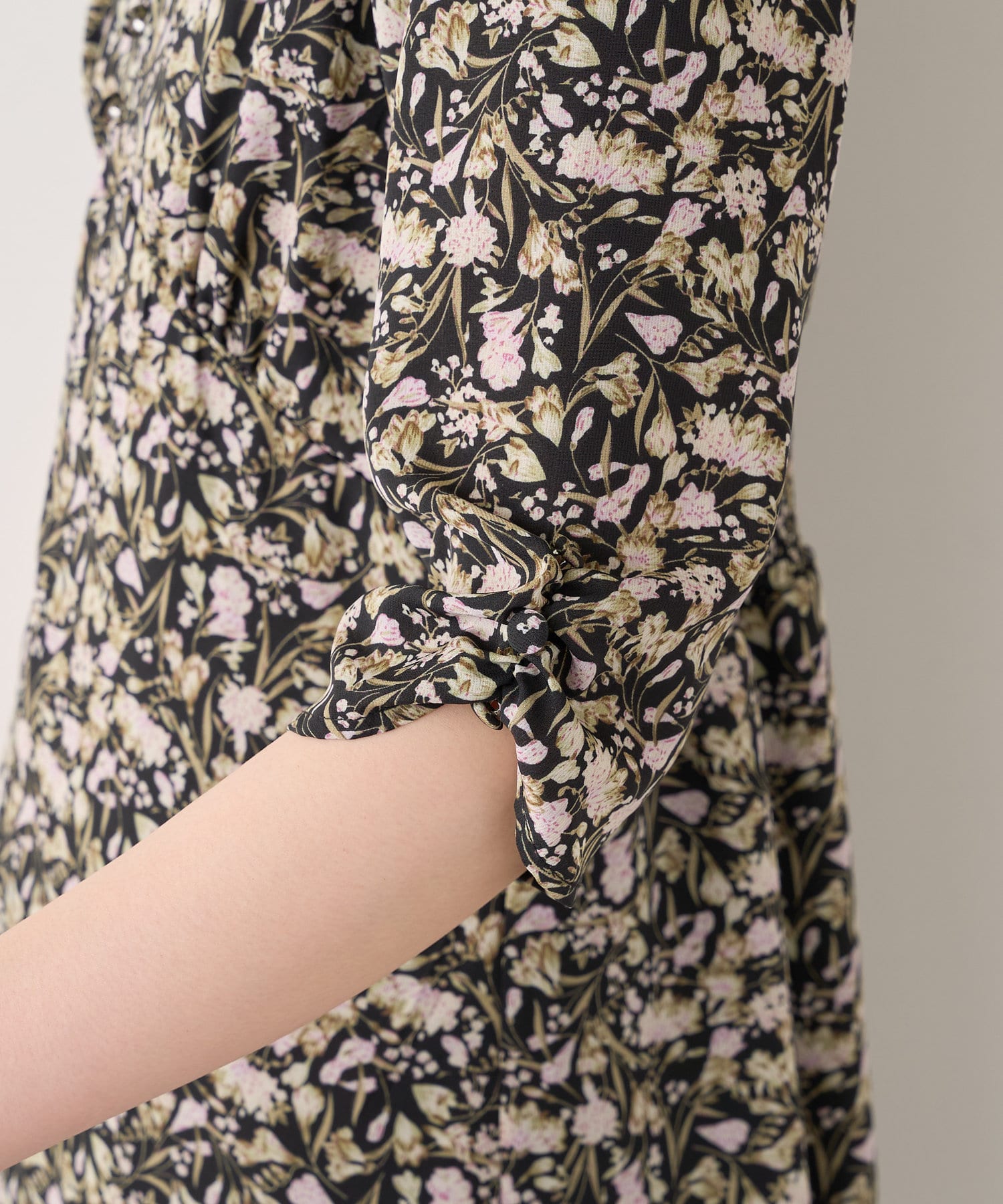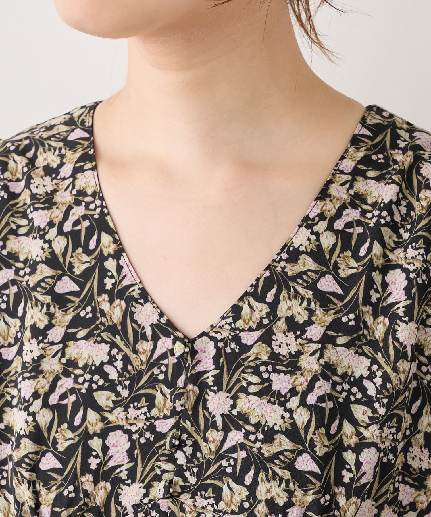 軽やかに揺れるフレアスリーブとスカートが女性らしさを醸しだし、