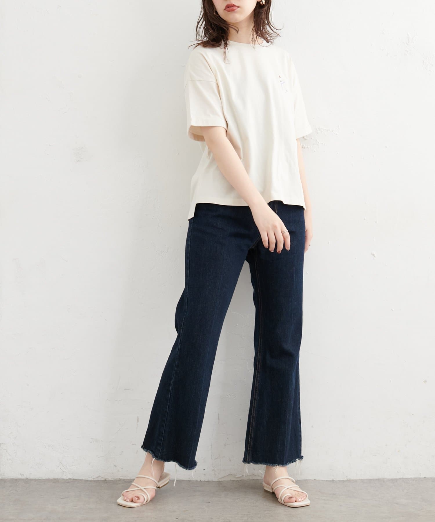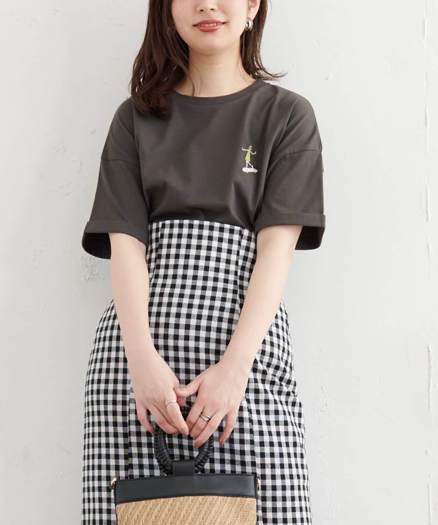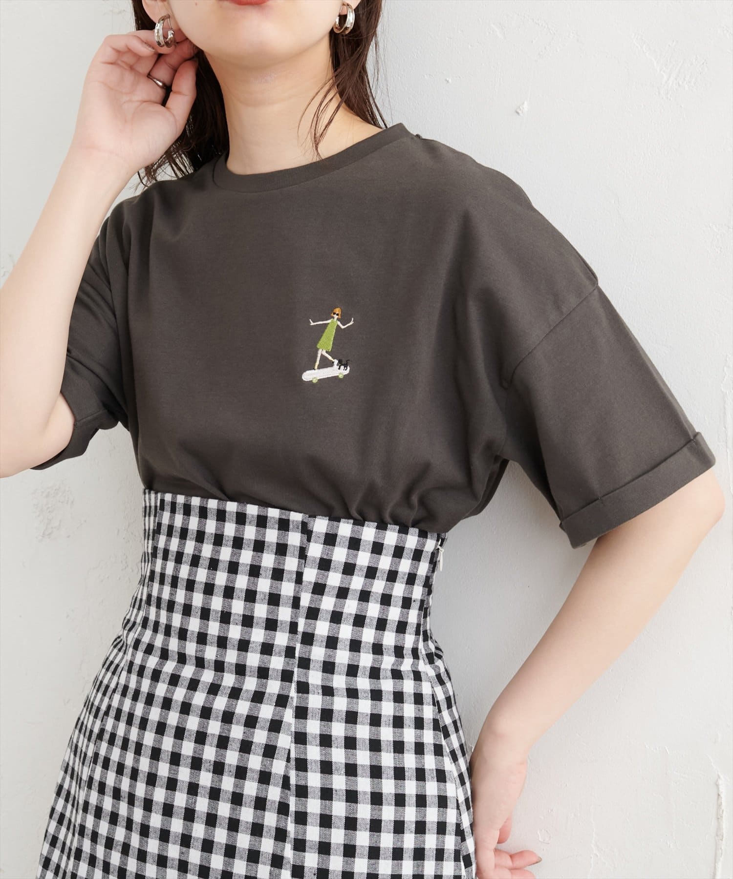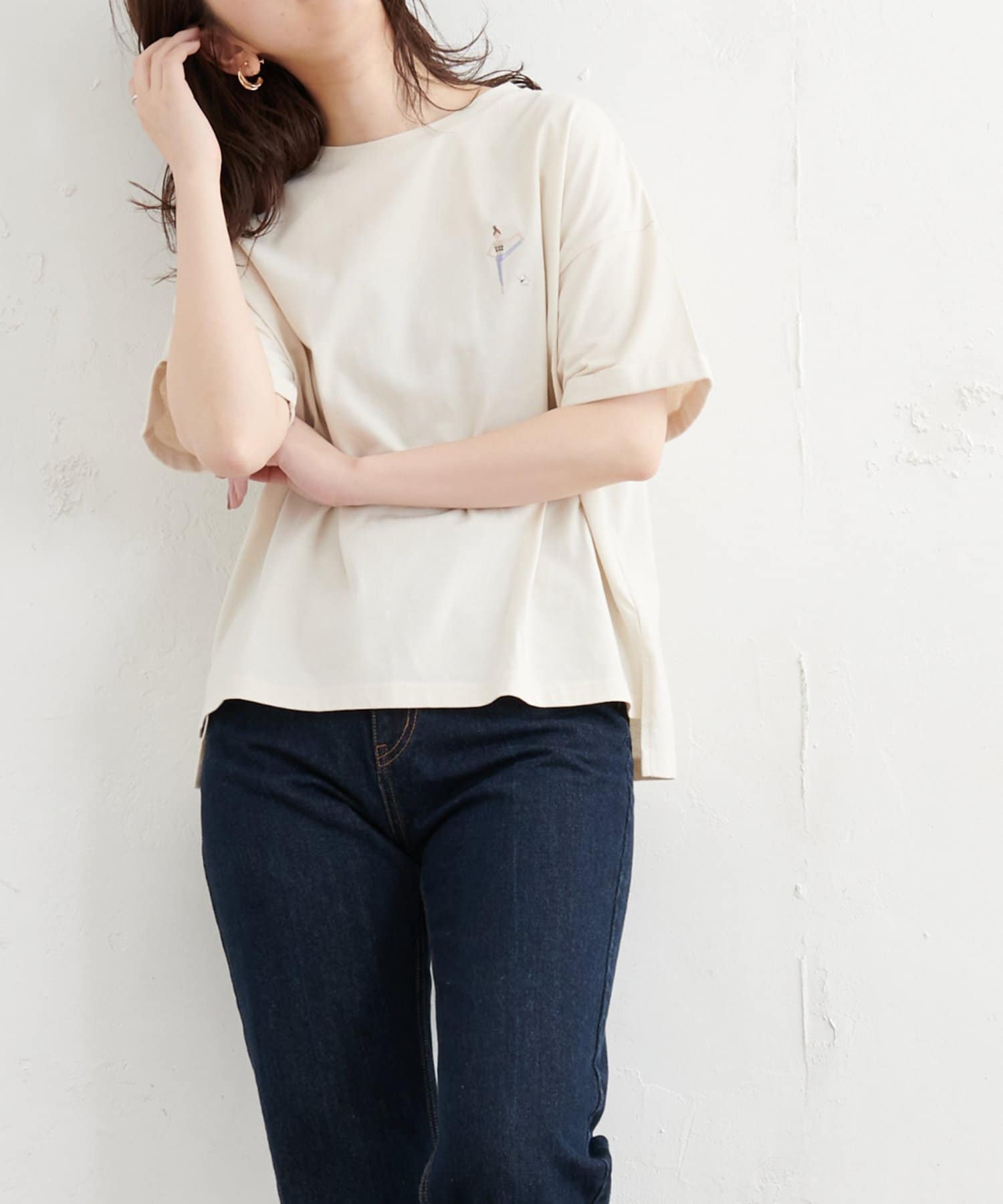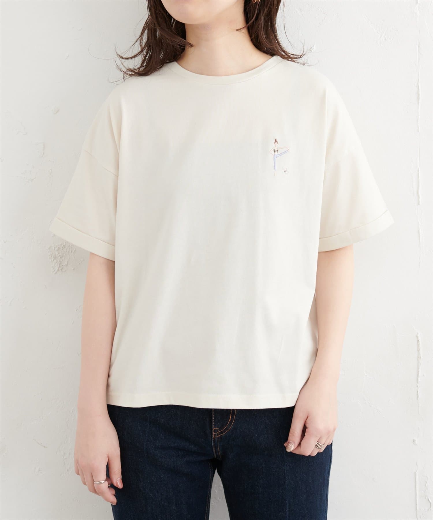 ベーシックなTシャツのシルエットに主張しすぎない刺繍なので、