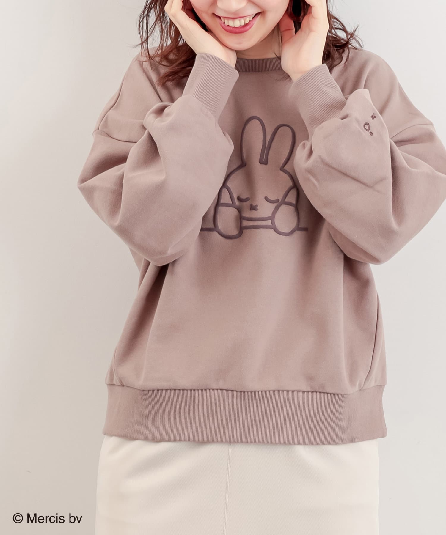 ミッフィーのフェイスプリントが可愛らしくフロントに施されたスウェット。