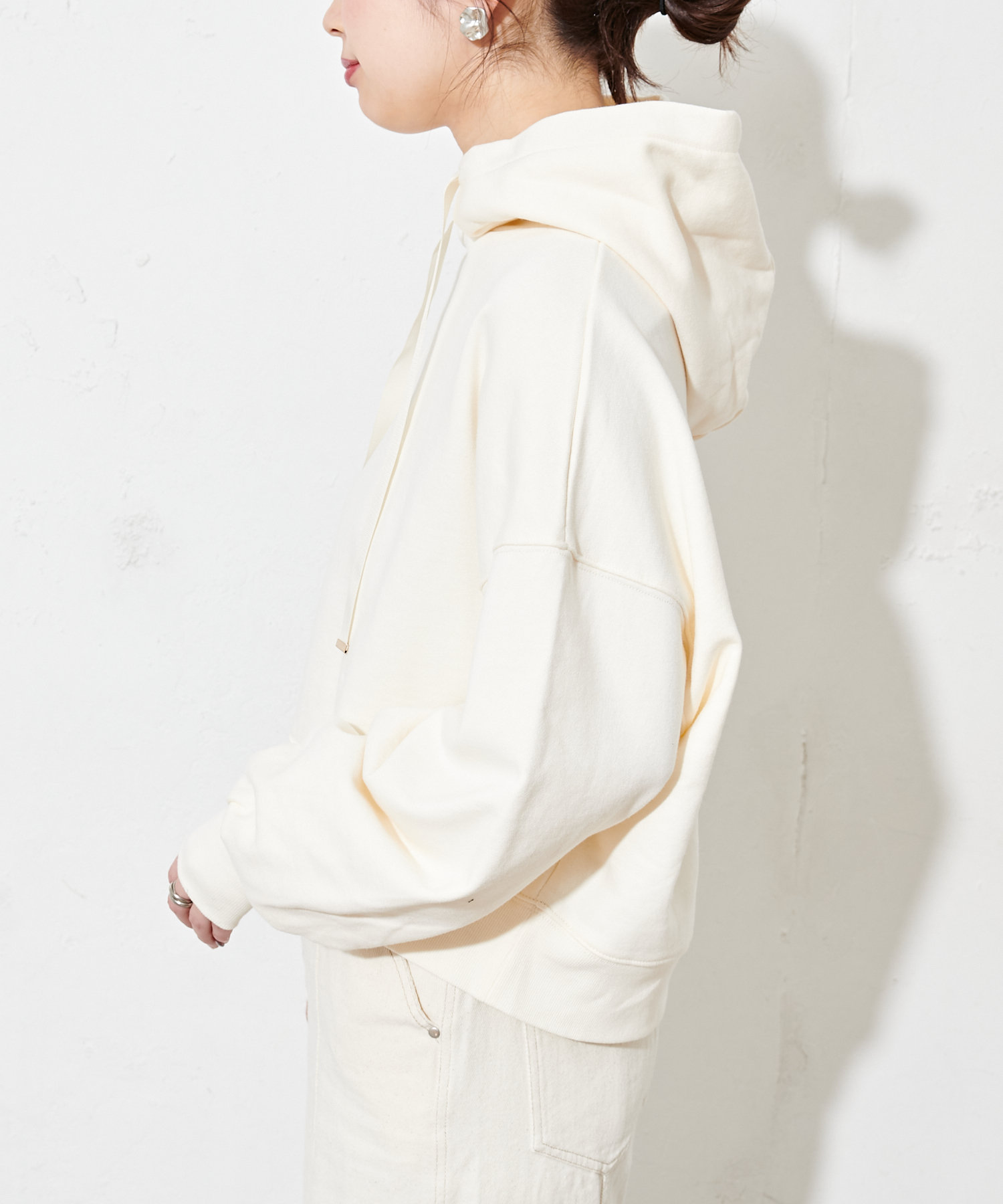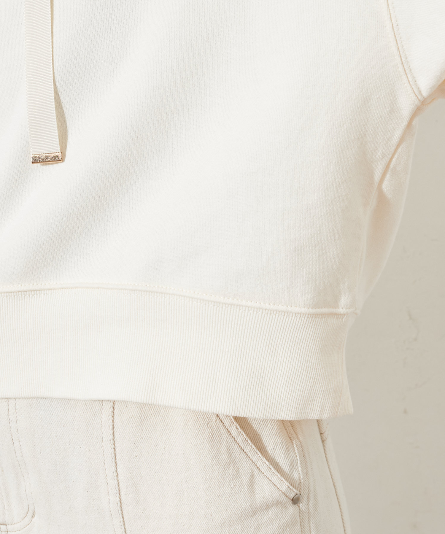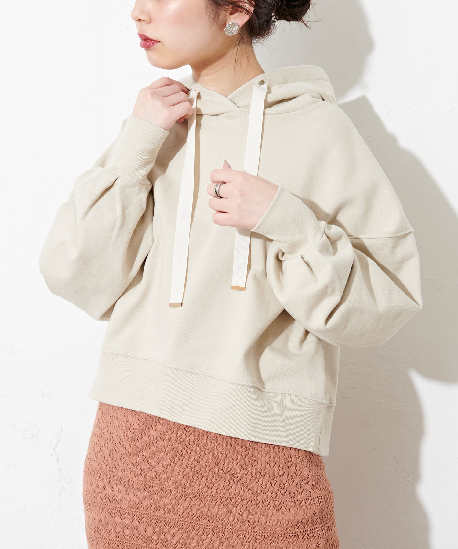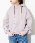 リボンを使用したフード紐が程よい甘さをプラス!ショート丈パーカー