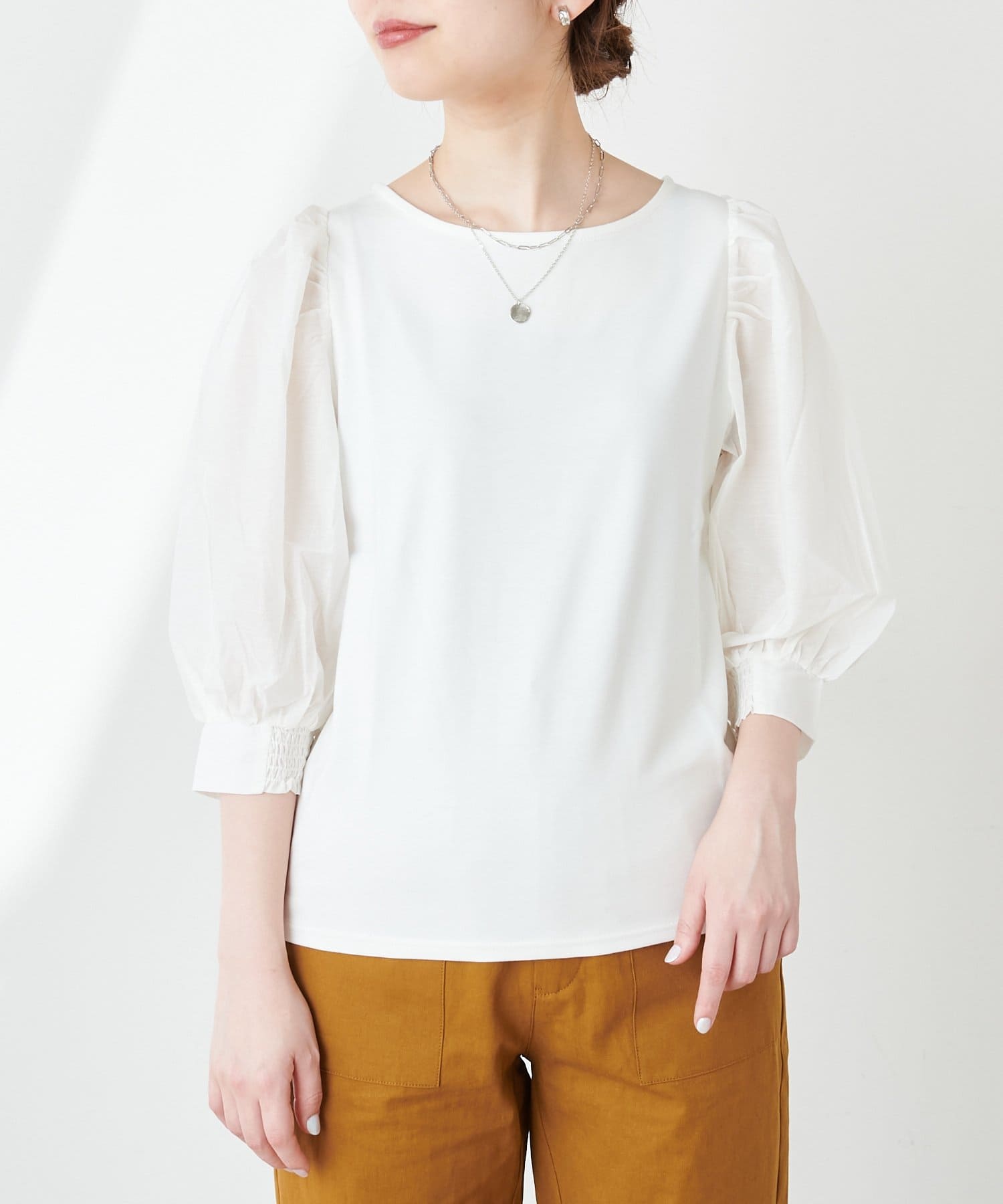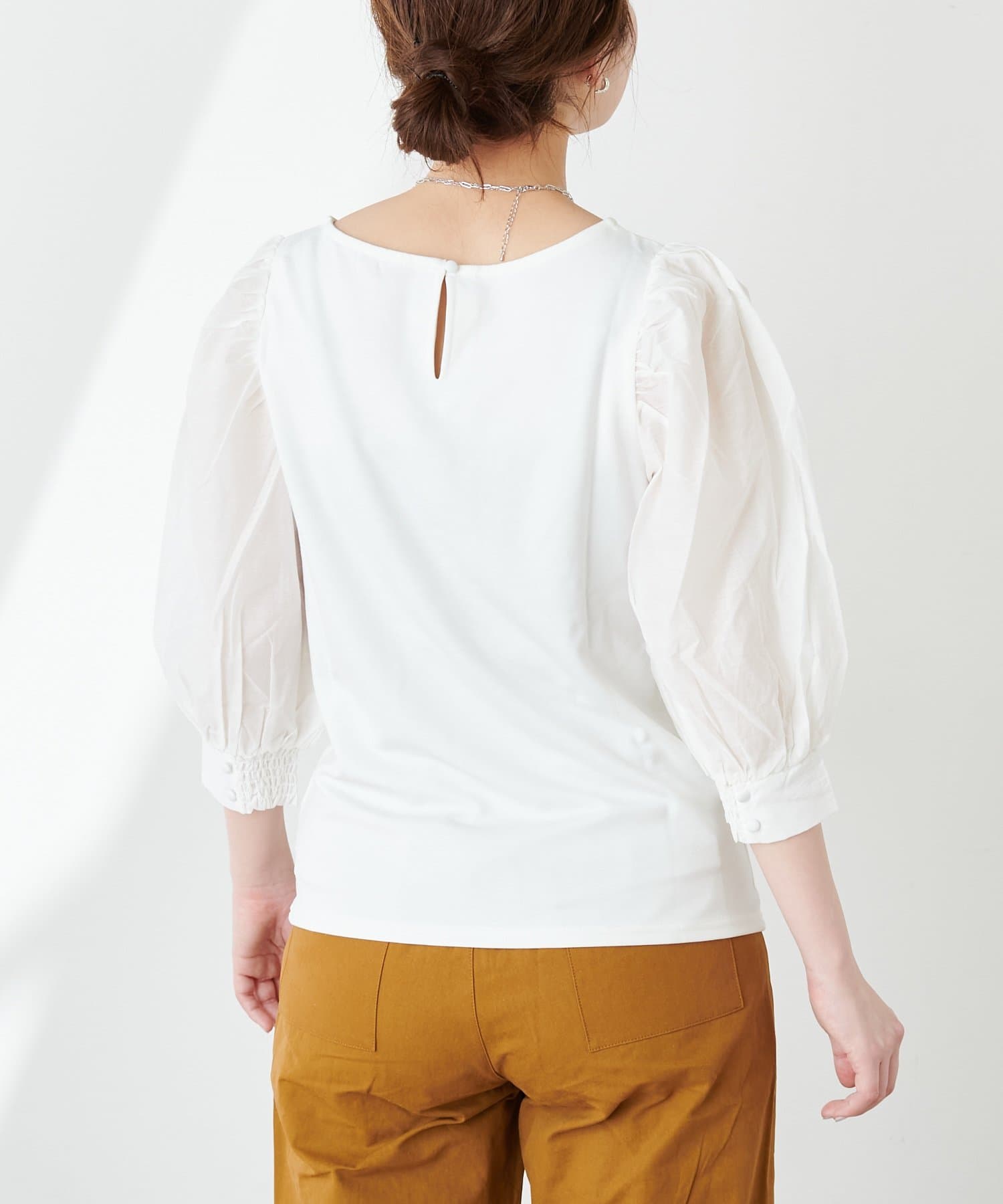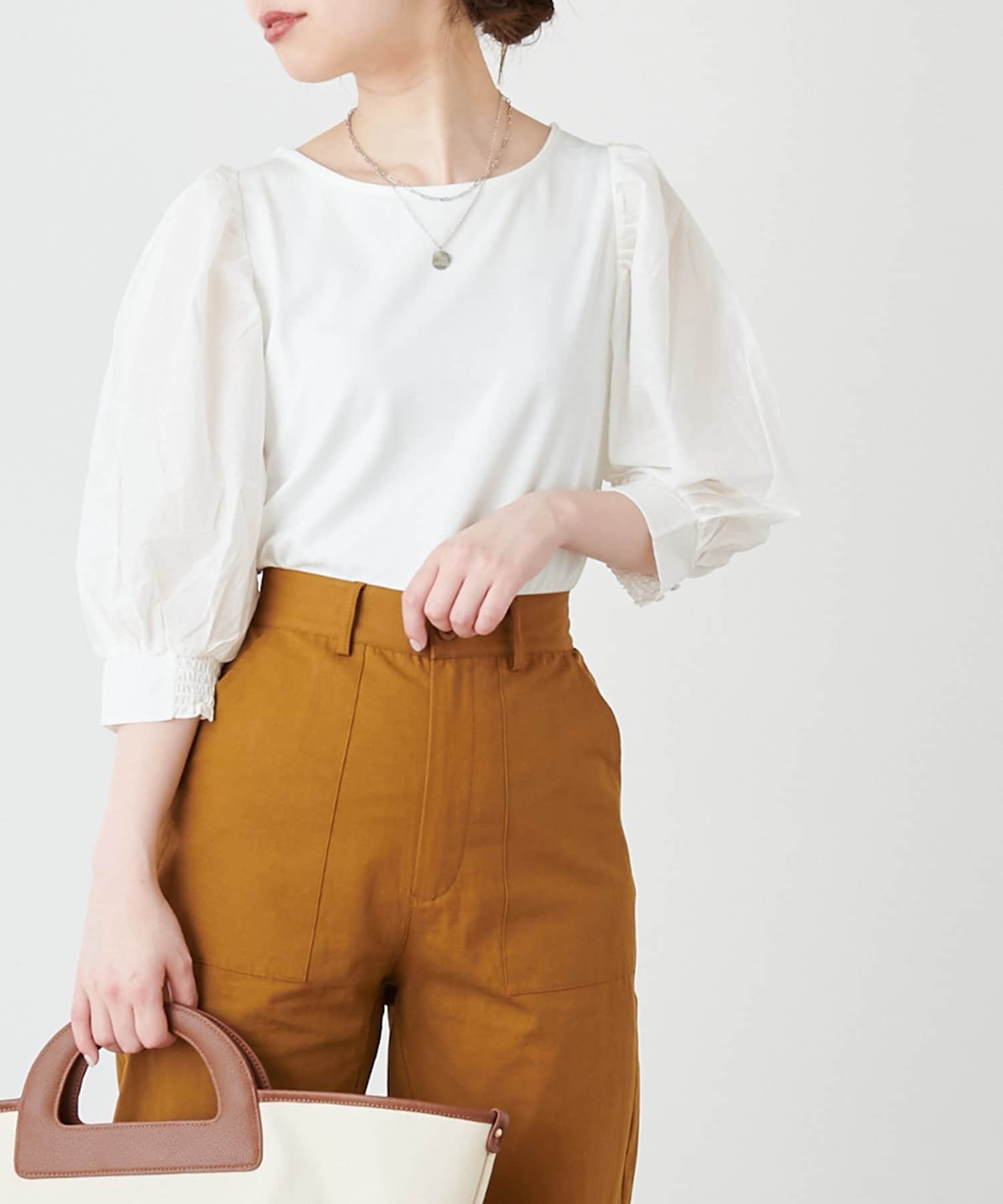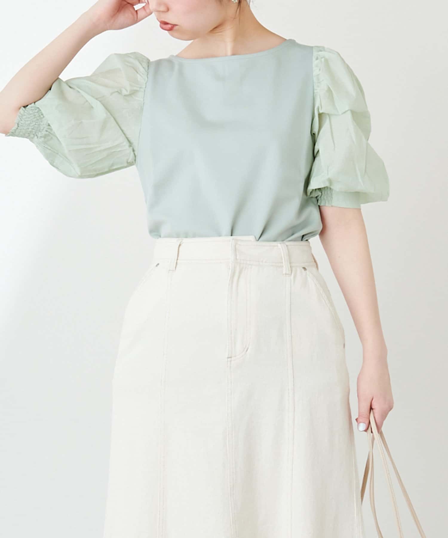 ニュアンス感のある袖のボリュームが印象的なブラウス。