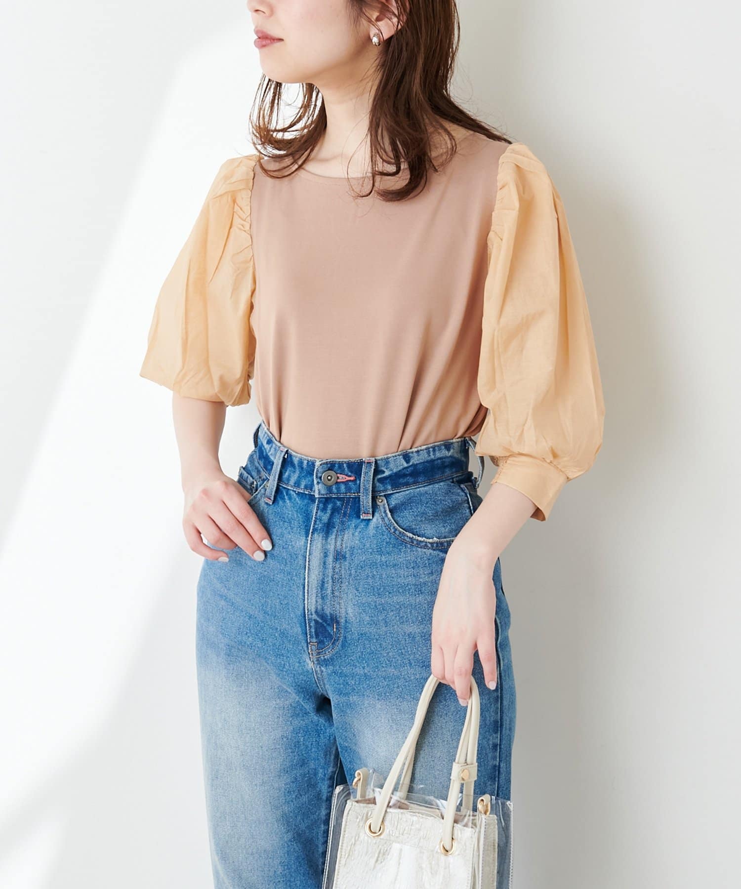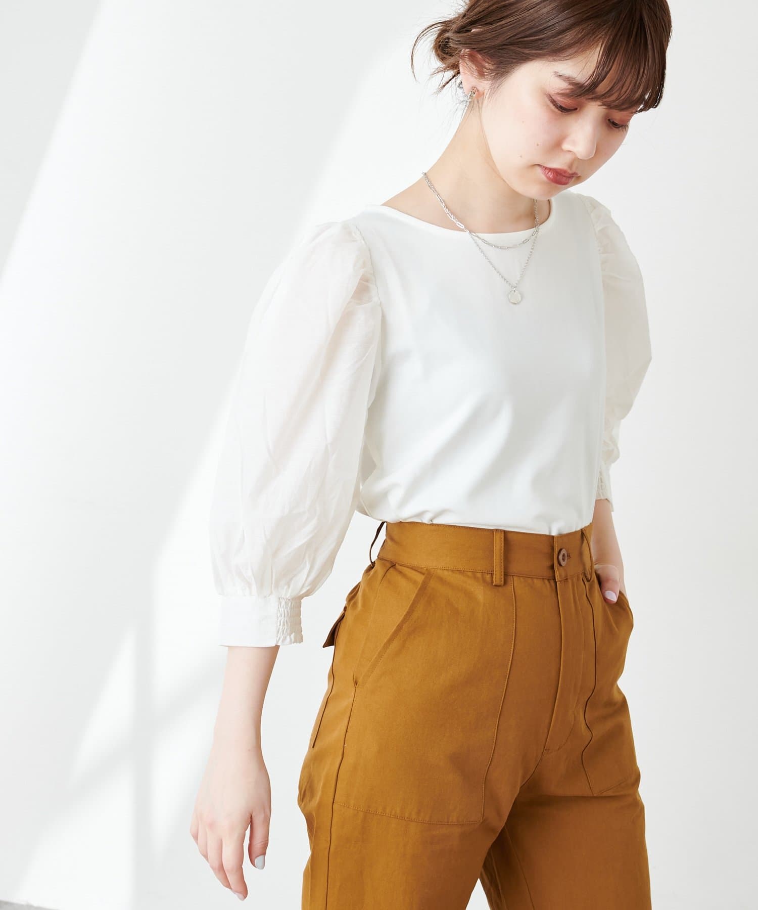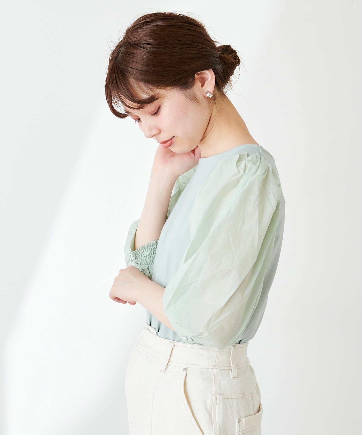 ニュアンス感のある袖のボリュームが印象的なブラウス。