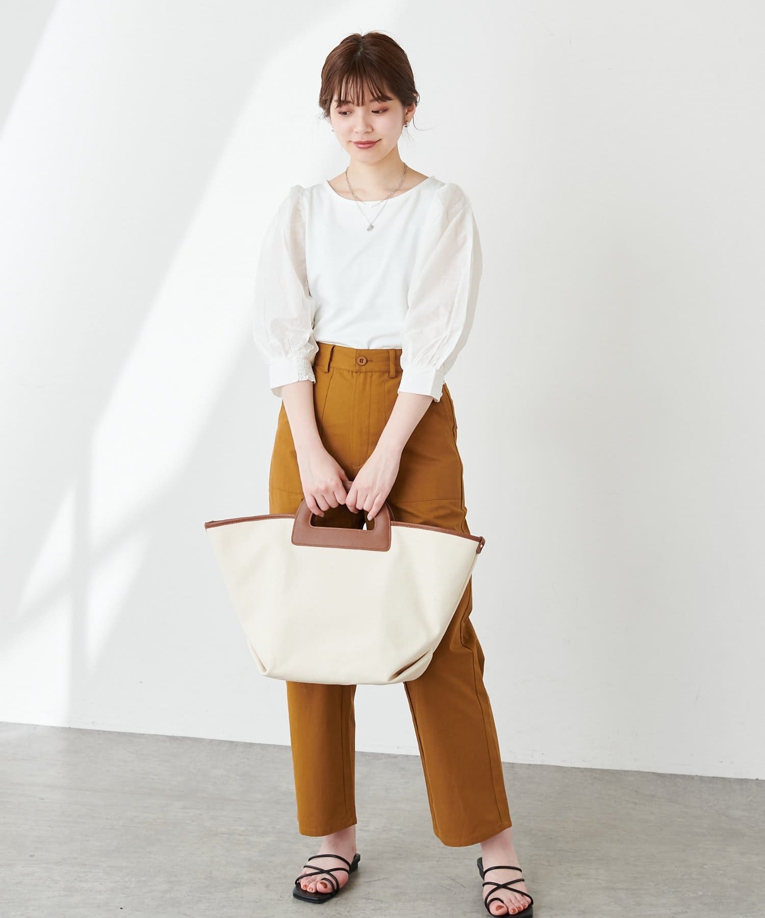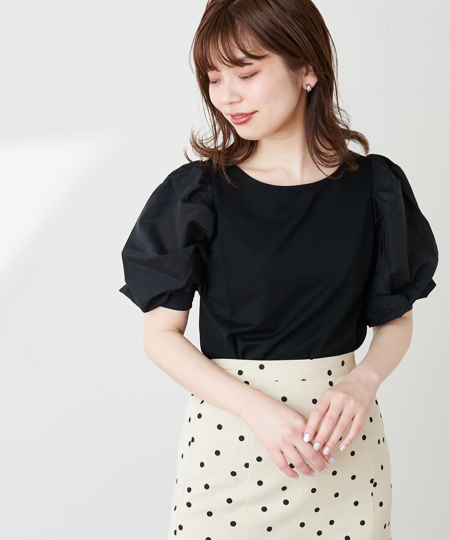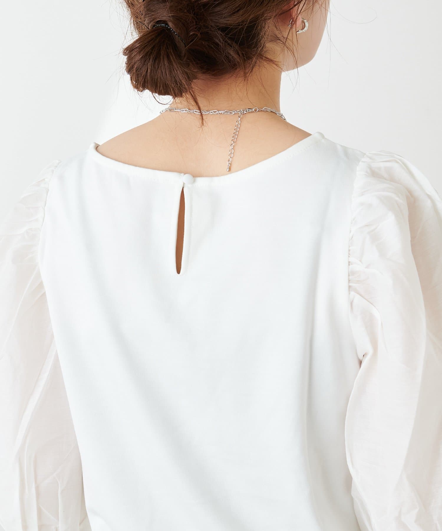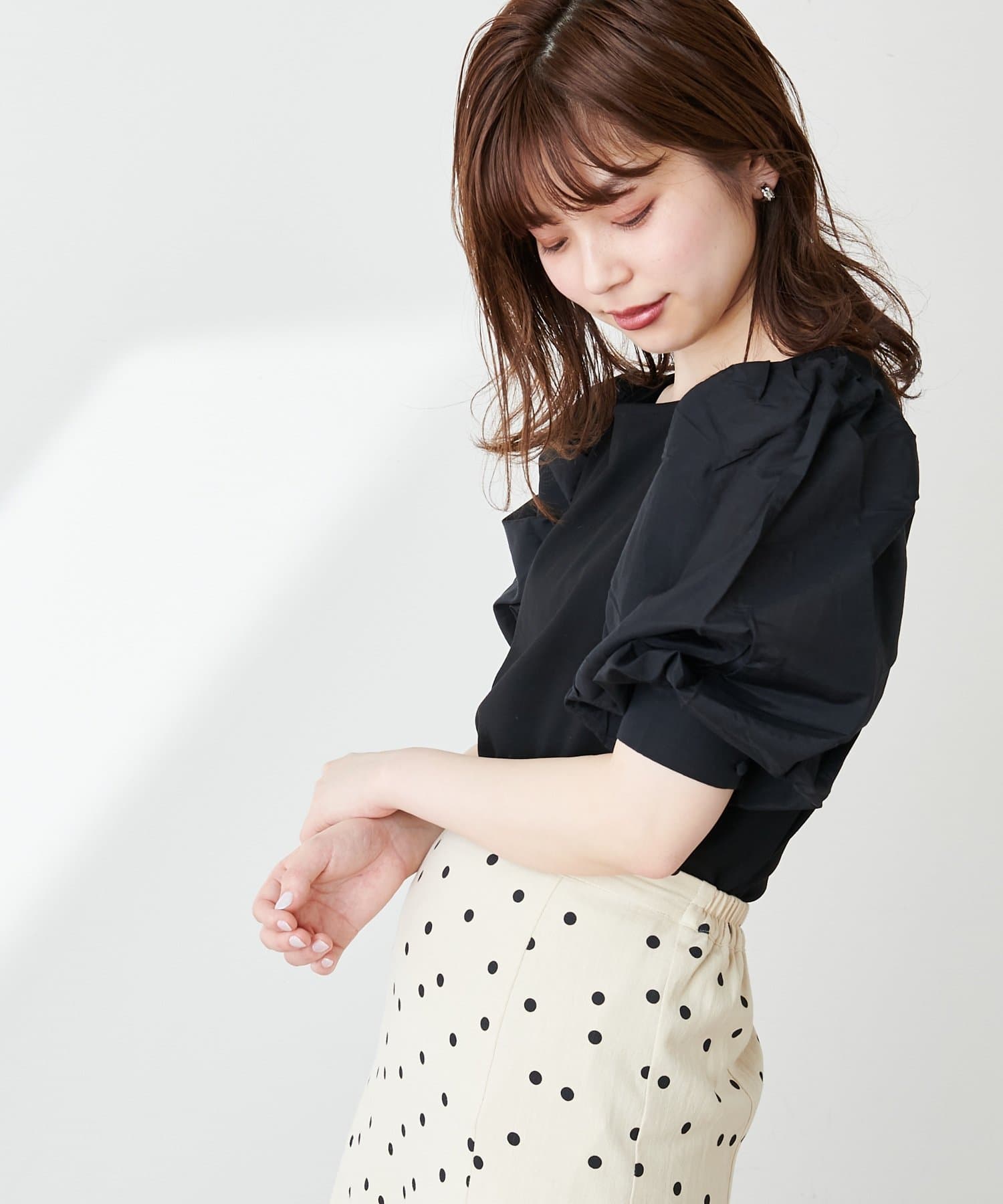 ニュアンス感のある袖のボリュームが印象的なブラウス。