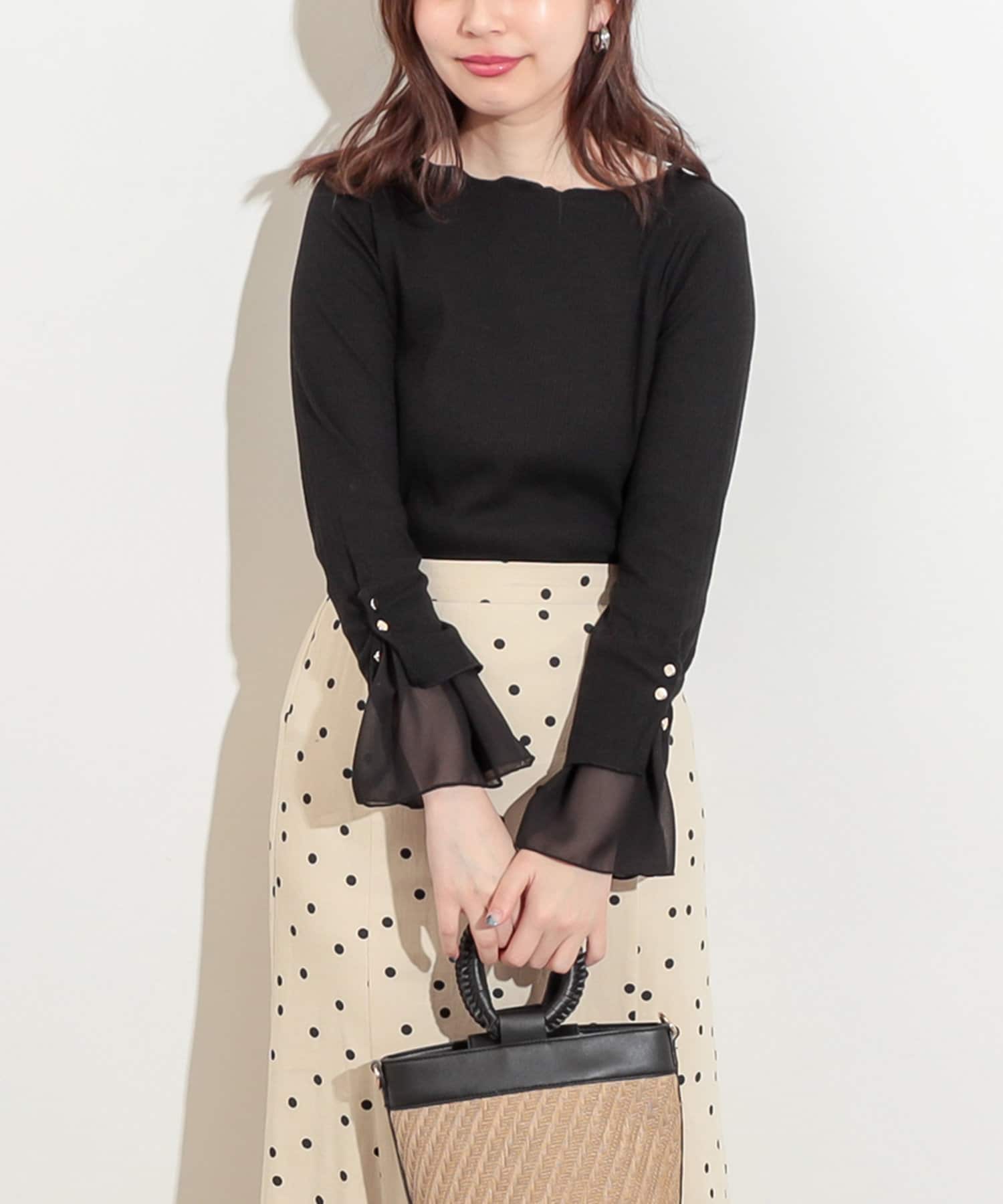 袖口にシフォンでポイントをプラスし、着るだけで女性らしい柔らかな印象を与えてくれる1品。
