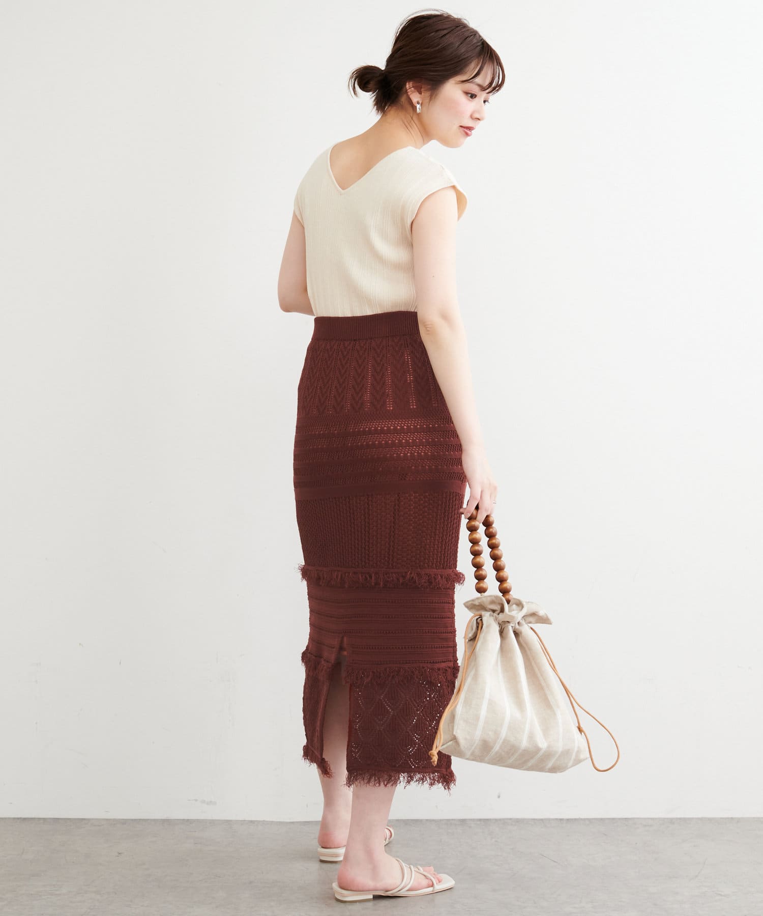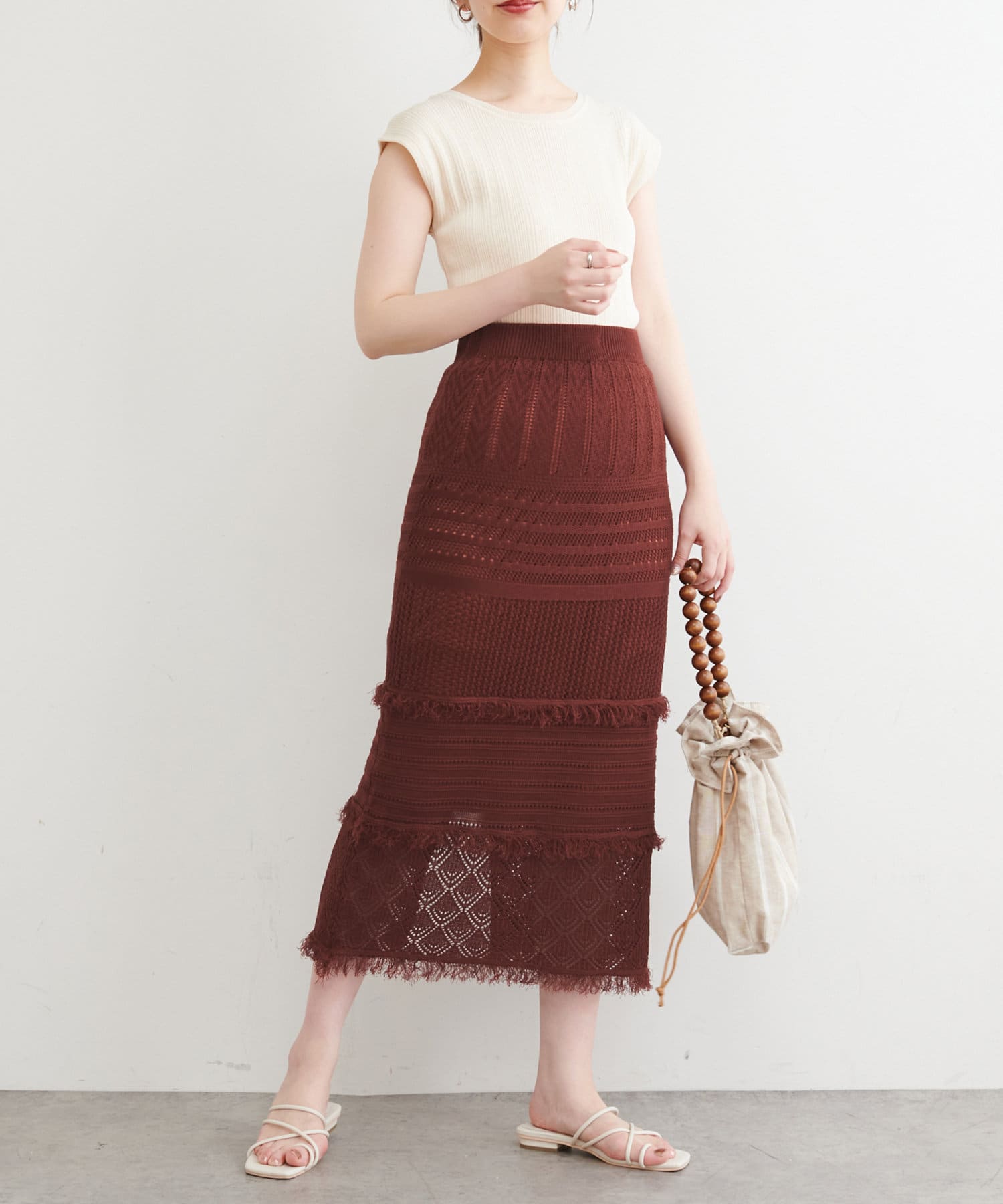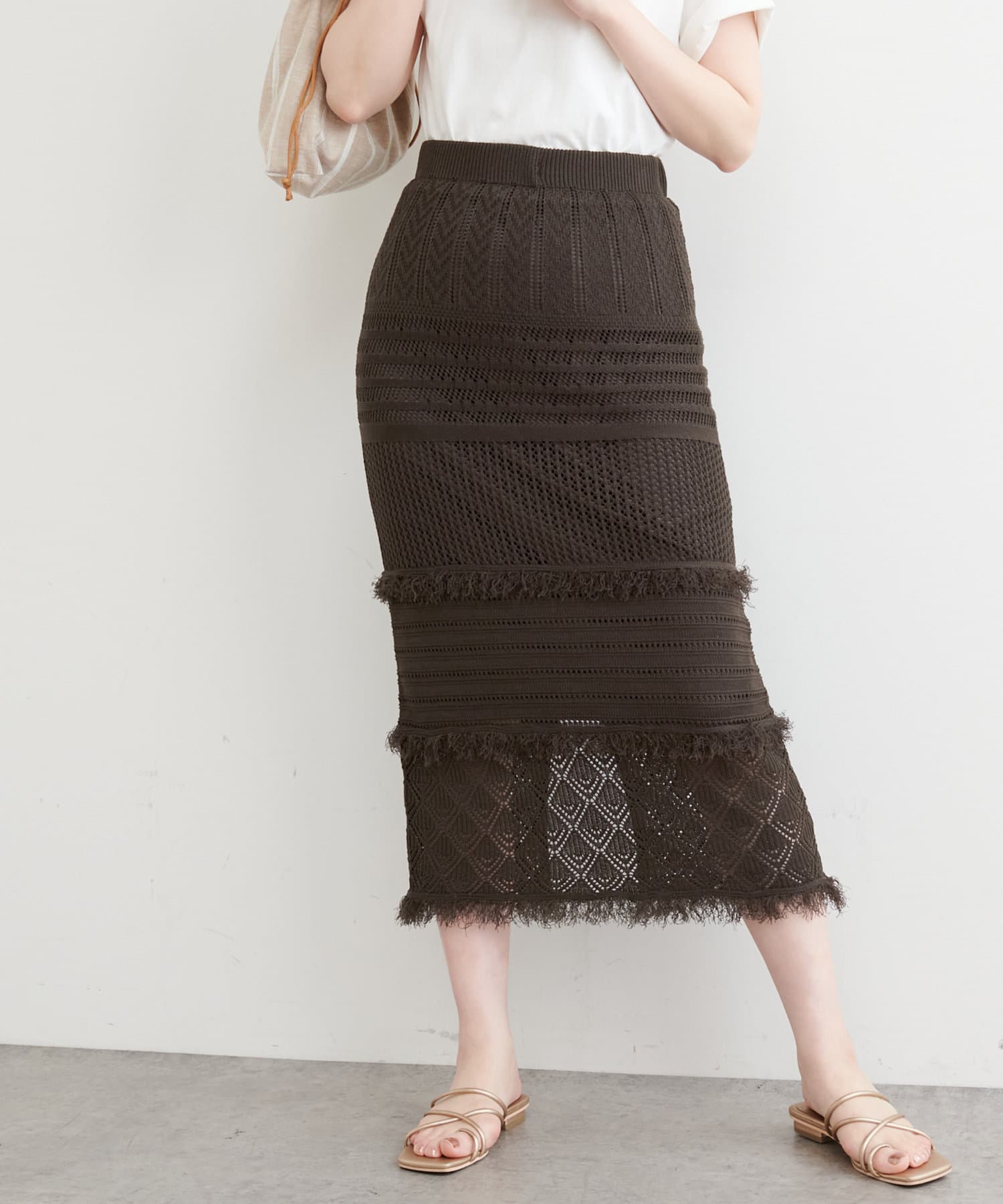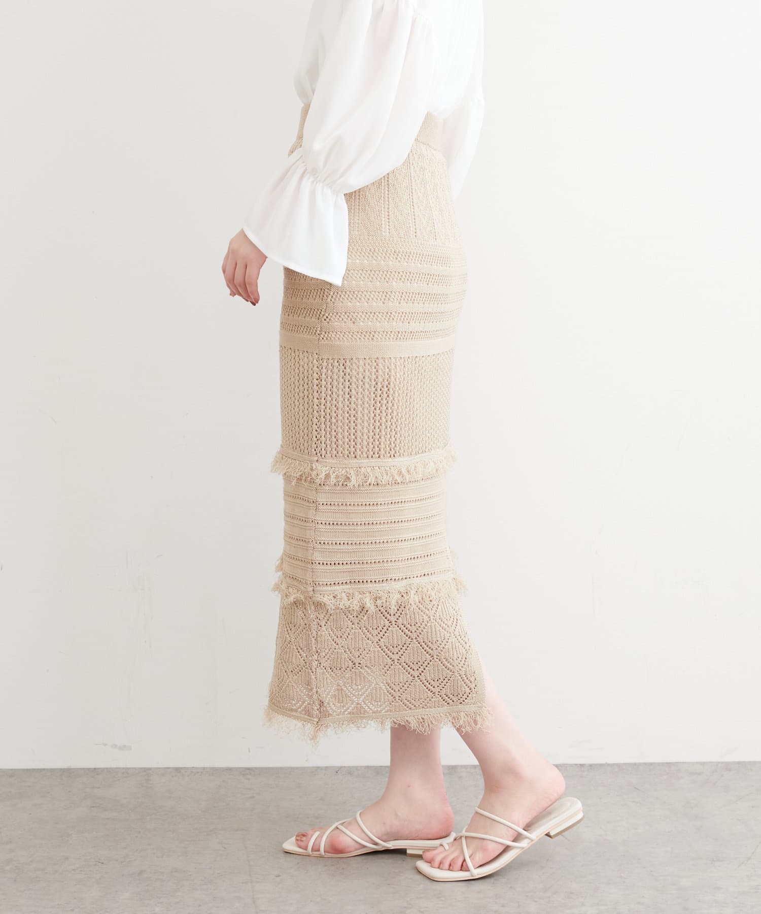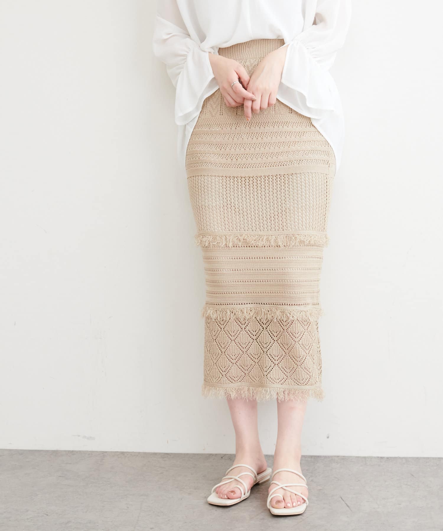 • natural couture(ナチュラルクチュール) 透かし編みフリンジスカート