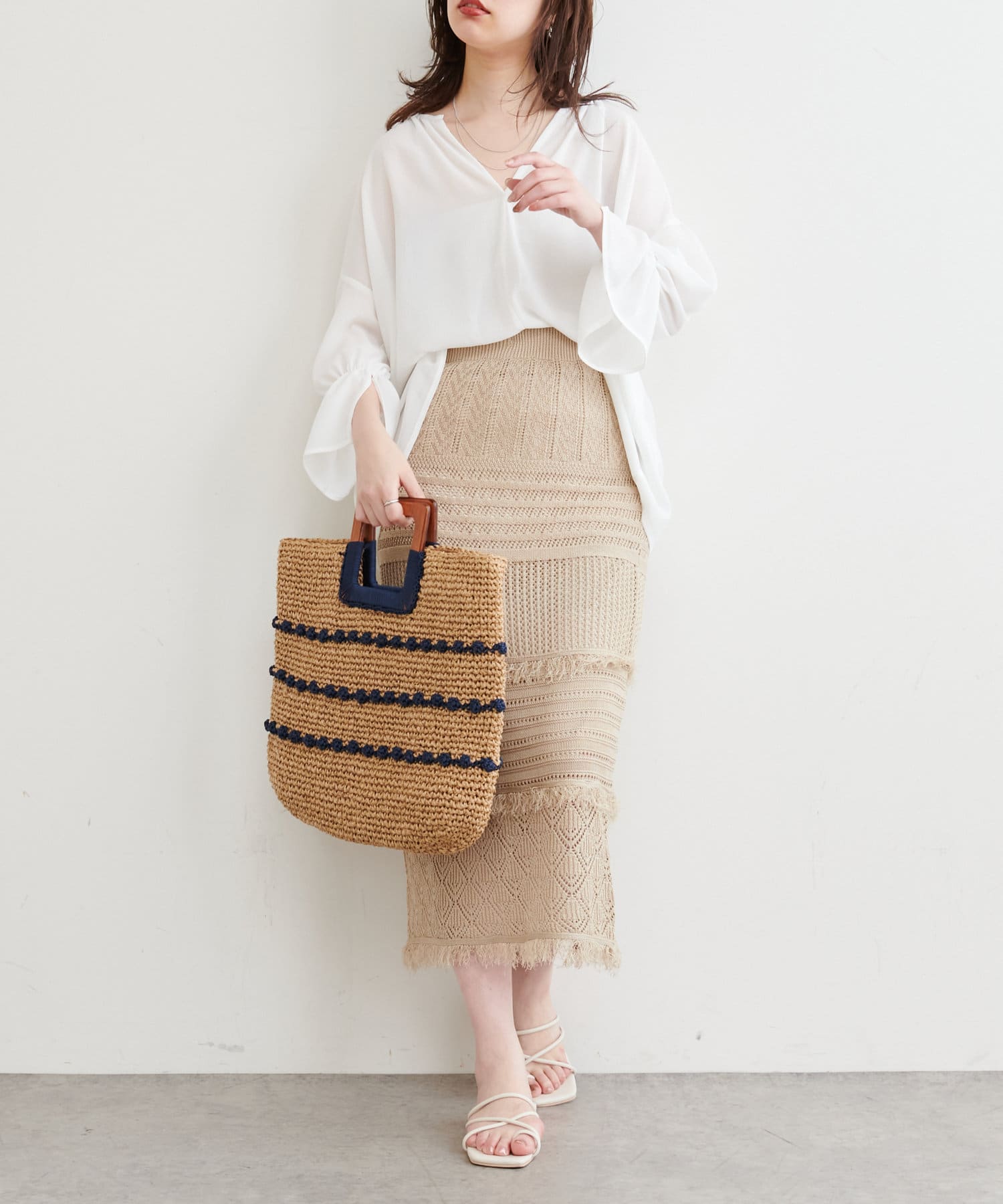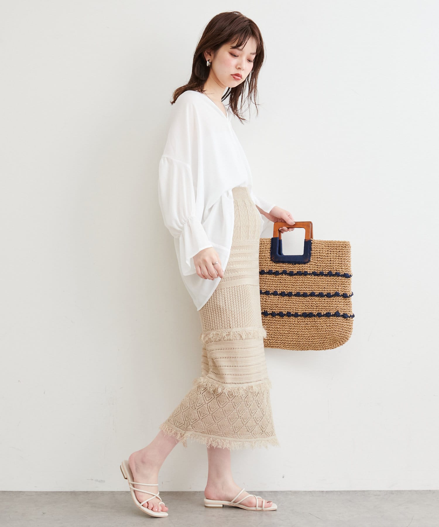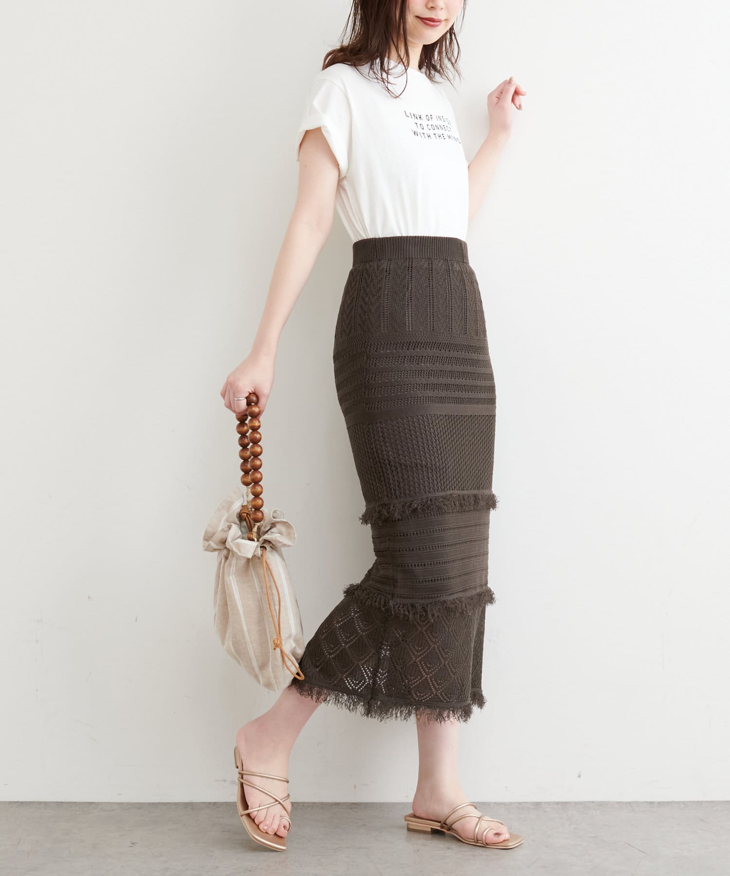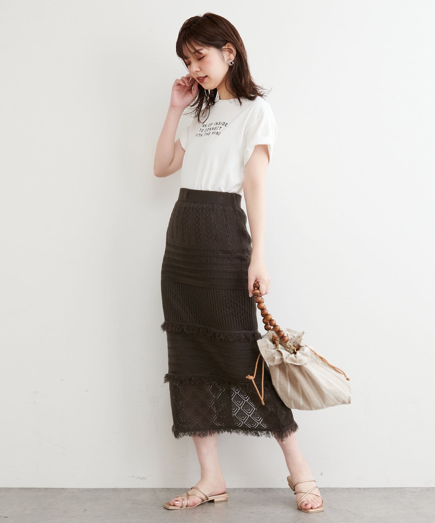 natural couture(ナチュラルクチュール) 透かし編みフリンジスカート