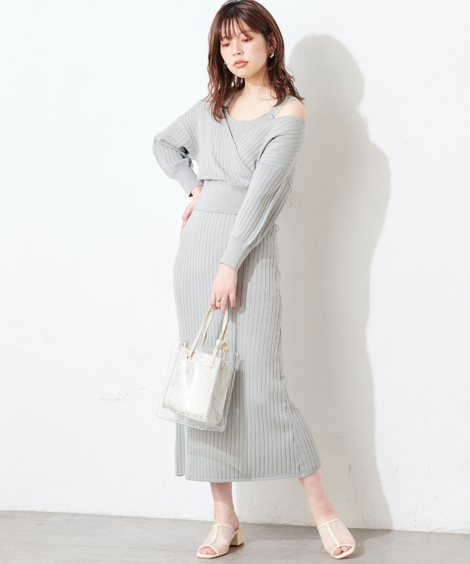 今季トレンドのキャミワンピースをリブニット仕立てでデザインしました。