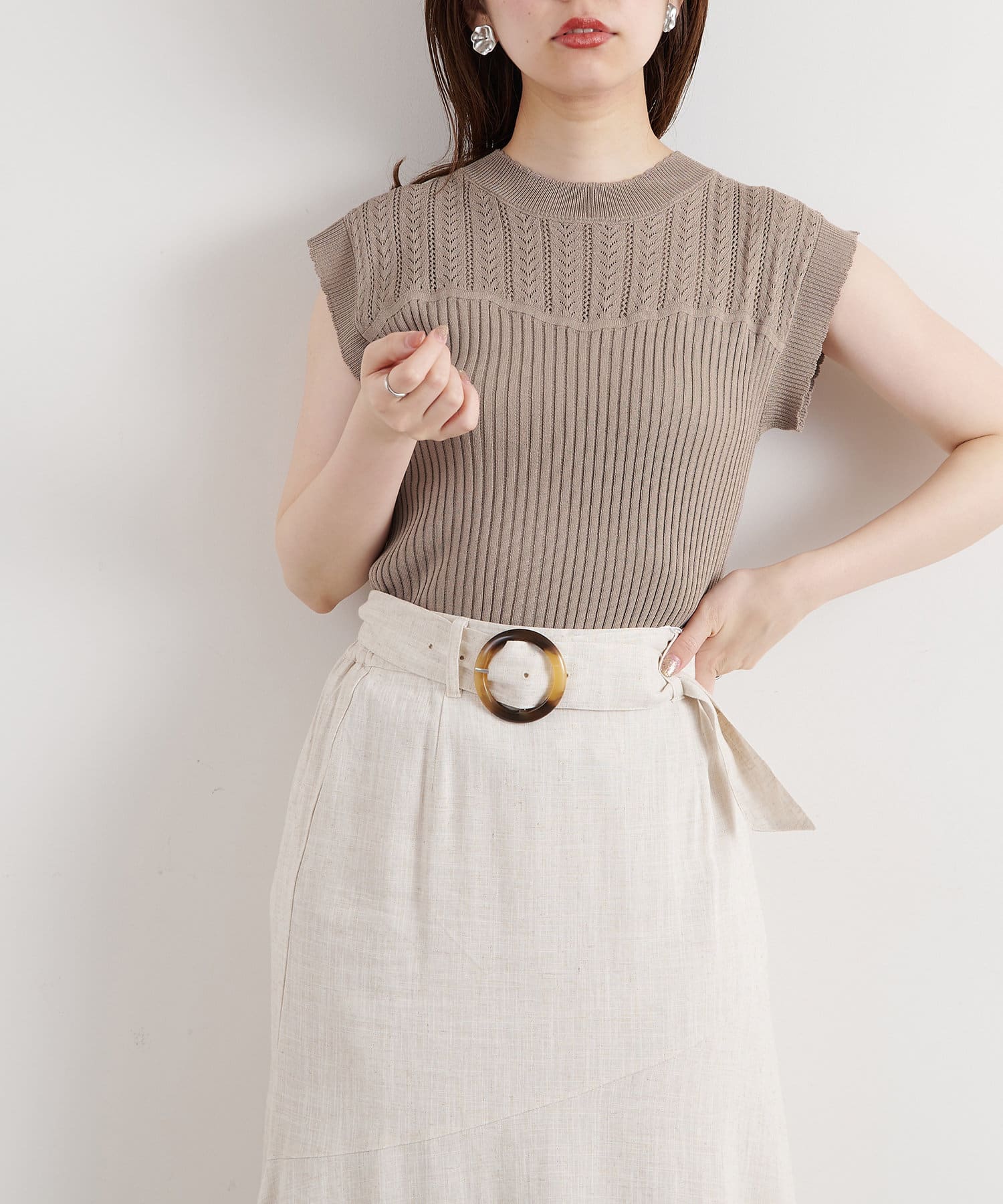 ヘルシーな素肌見せが叶うレディなサマーニット