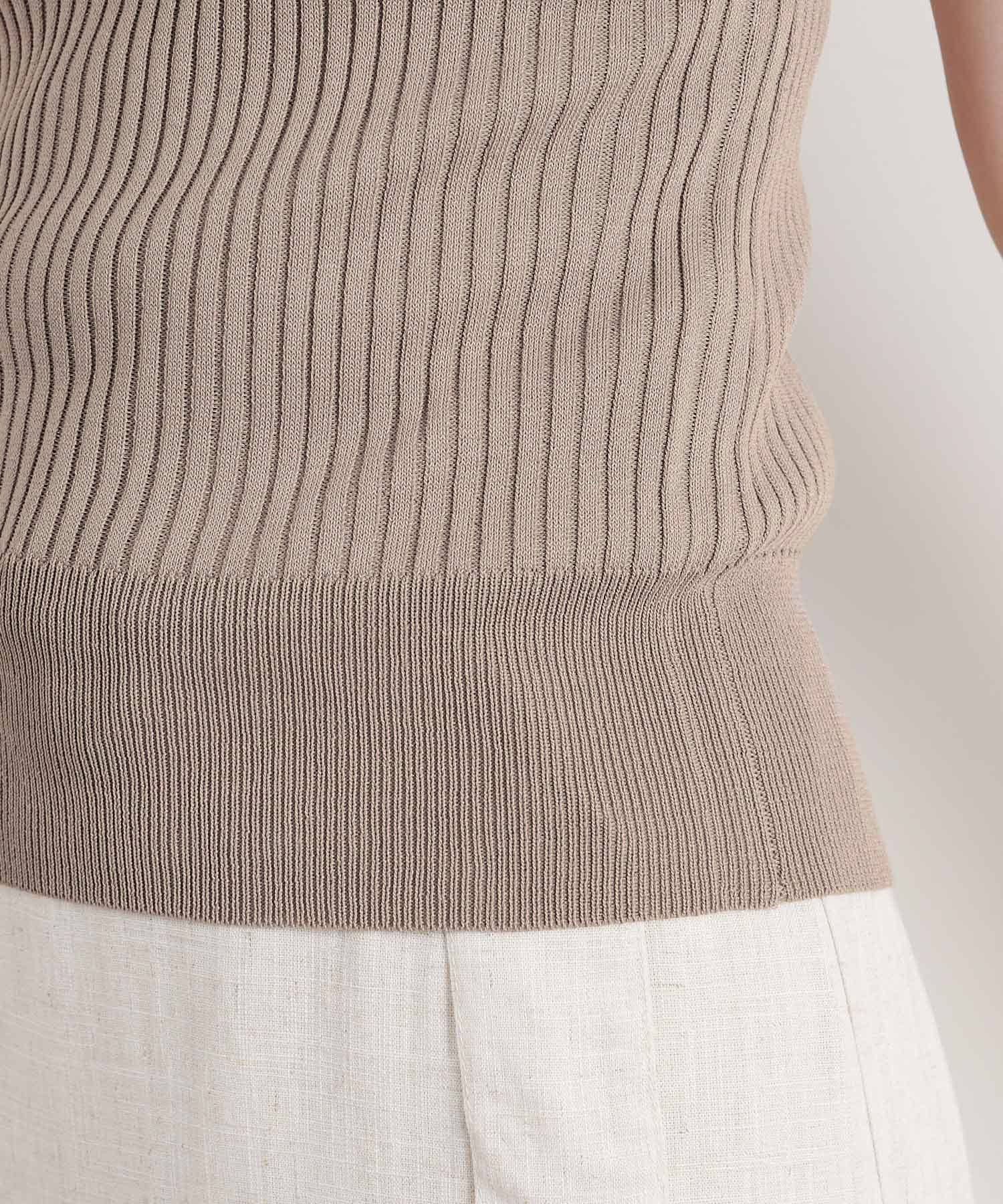 ベースのリブニットでシルエットをすっきりと見せ、伸縮性があるので着心地も快適に◎