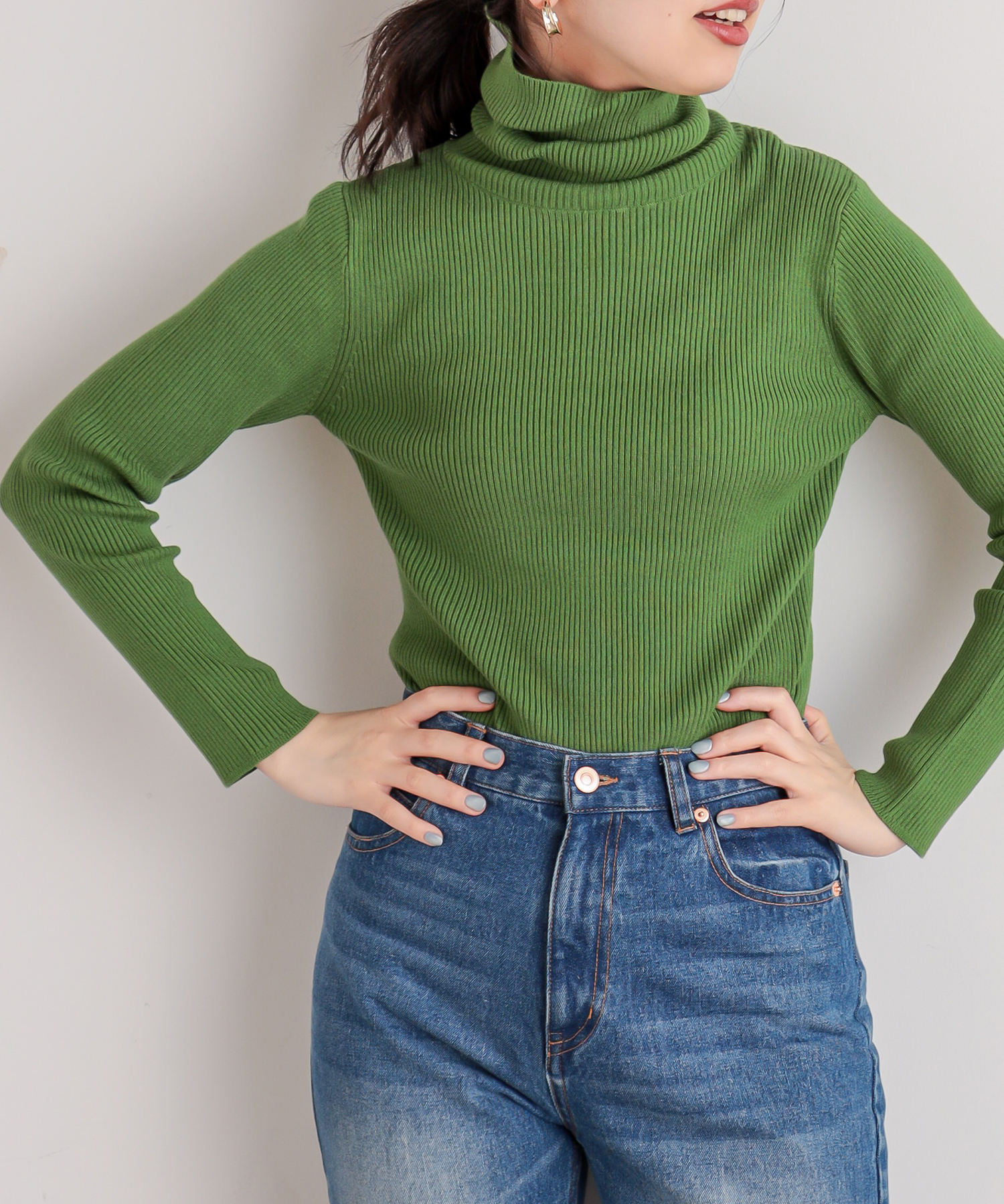 この時期のワードローブに欠かせない、すっきりシンプルなデザインで着回しのきくリブタートルネック。